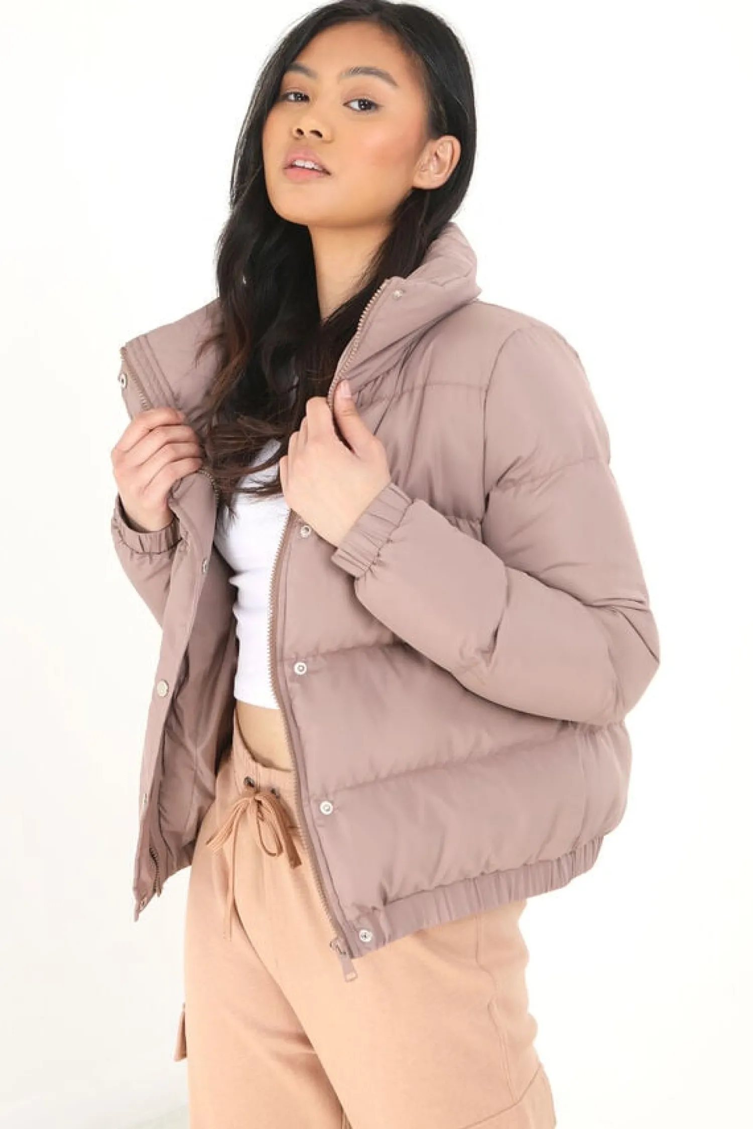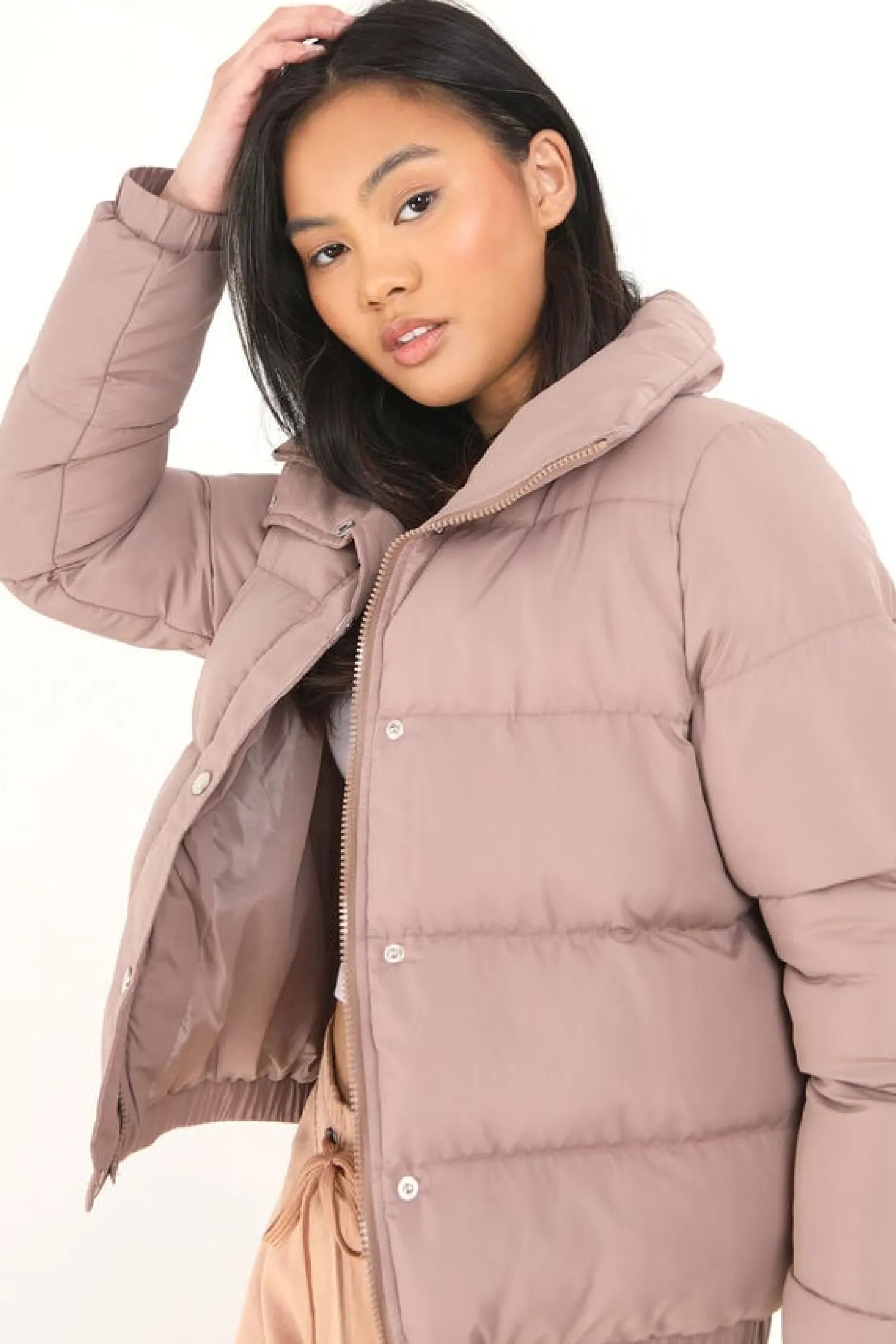 Casaco De Penas De Mulher, Acolchoado E Com Gola Larga. Punhos E Bainha Elasticos. Fecho Mediante Fecho-Eclair E Botoes De Pressao. Dois Bolsos