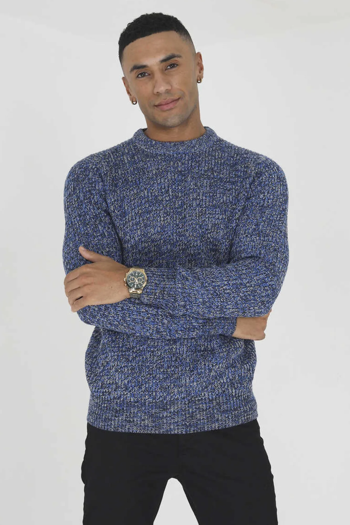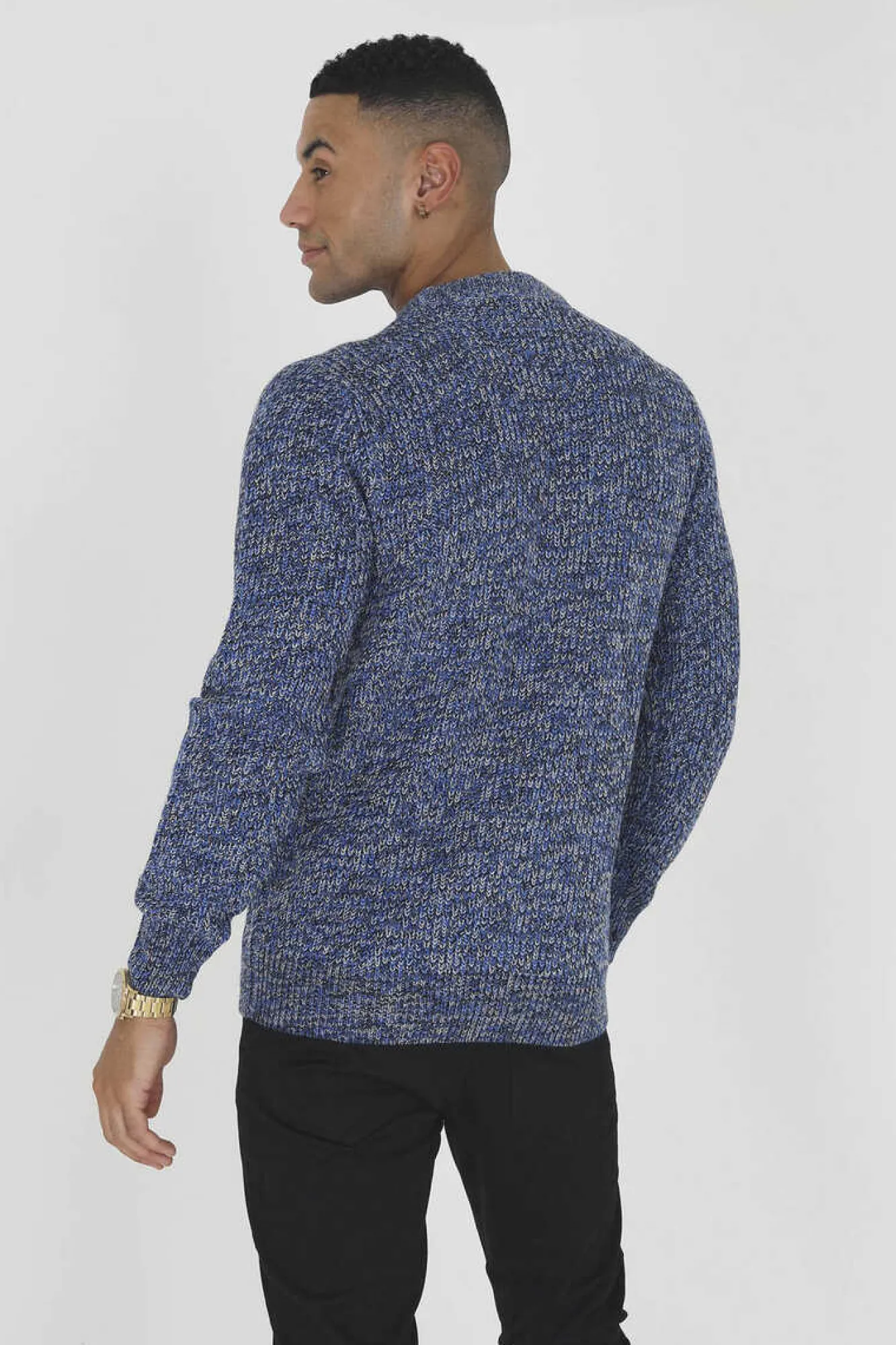 Camisola De Homem De Malha Jaspeada. Com Gola Redonda E Detalhe Canelado Na Gola, Bainha E Punhos