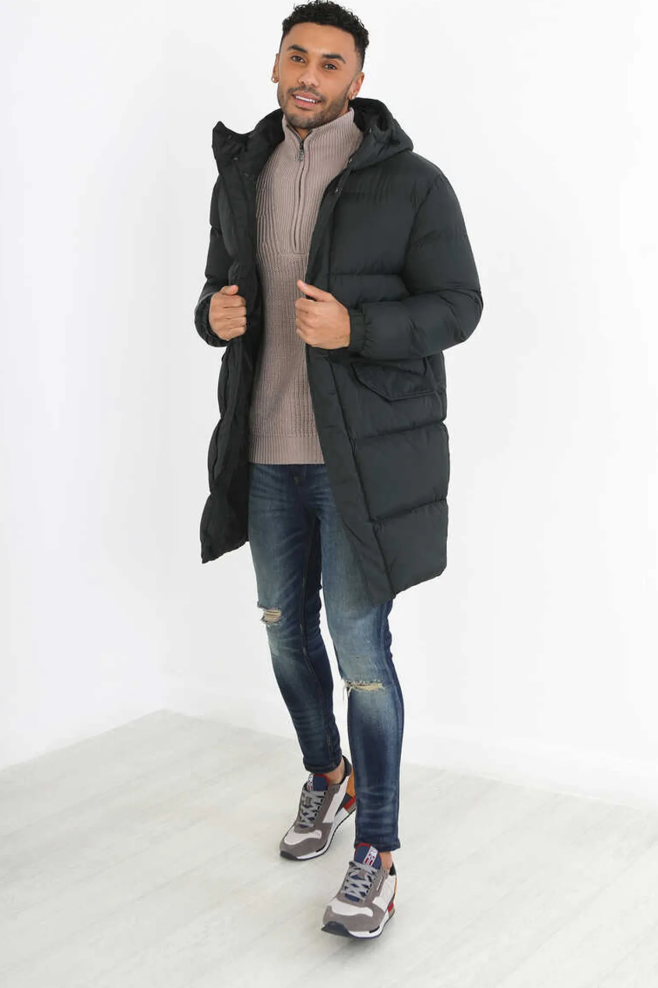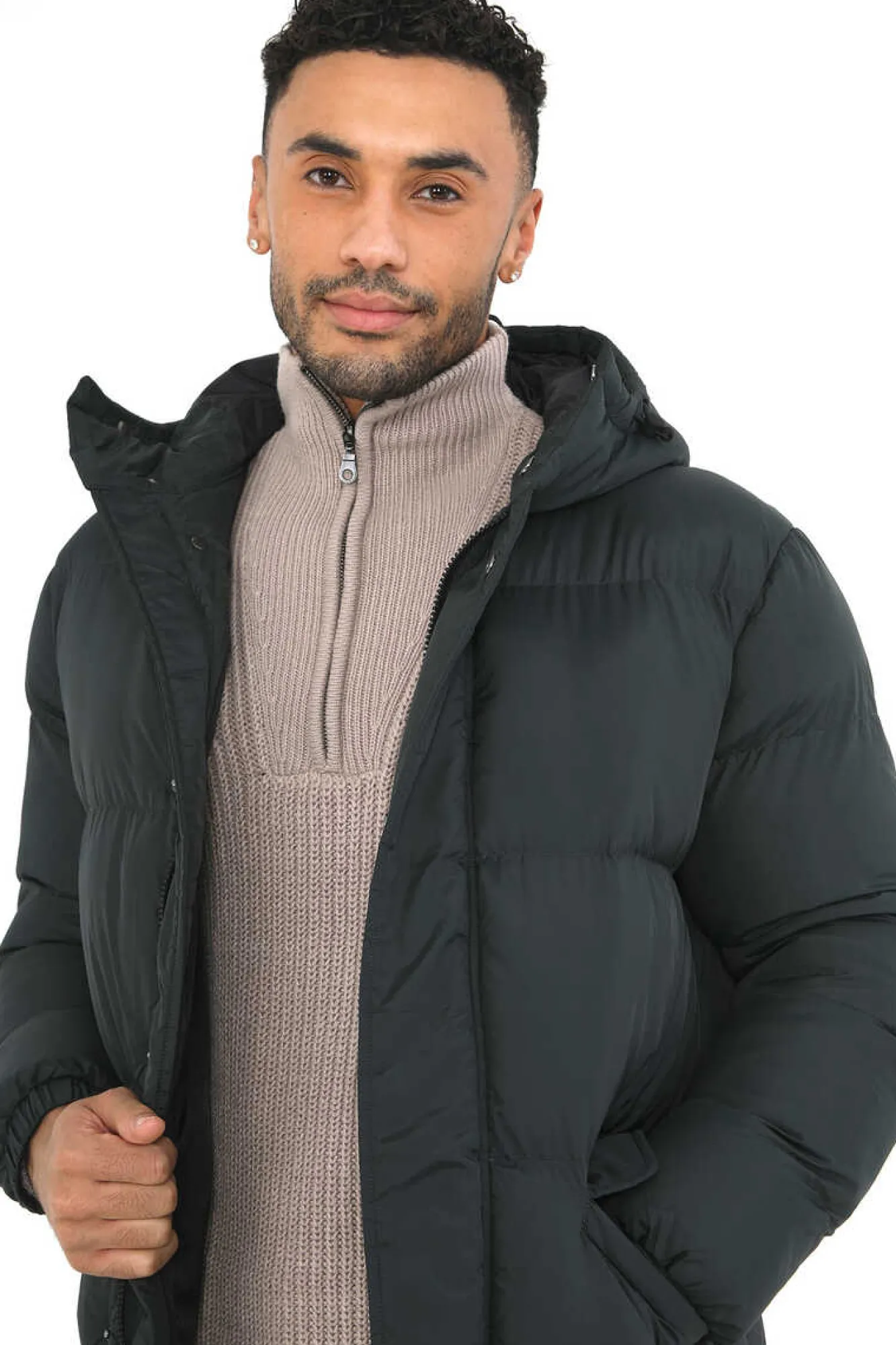 Casaco De Penas De Homem, Comprido E Acolchoado Com Capuz. Com Fecho-Eclair Oculto. Com Punhos Elasticos E Dois Bolsos Inferiores Com Lapela