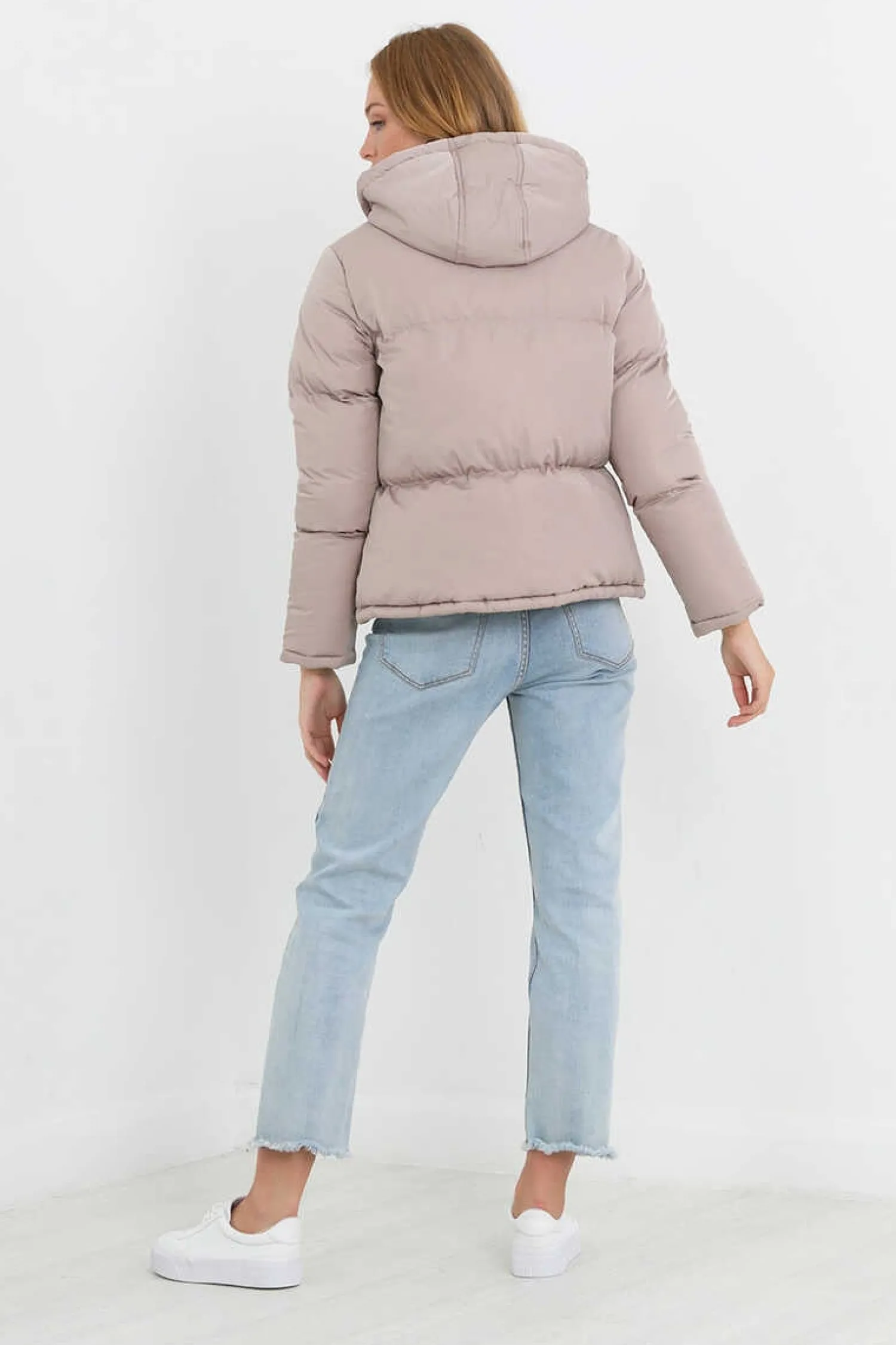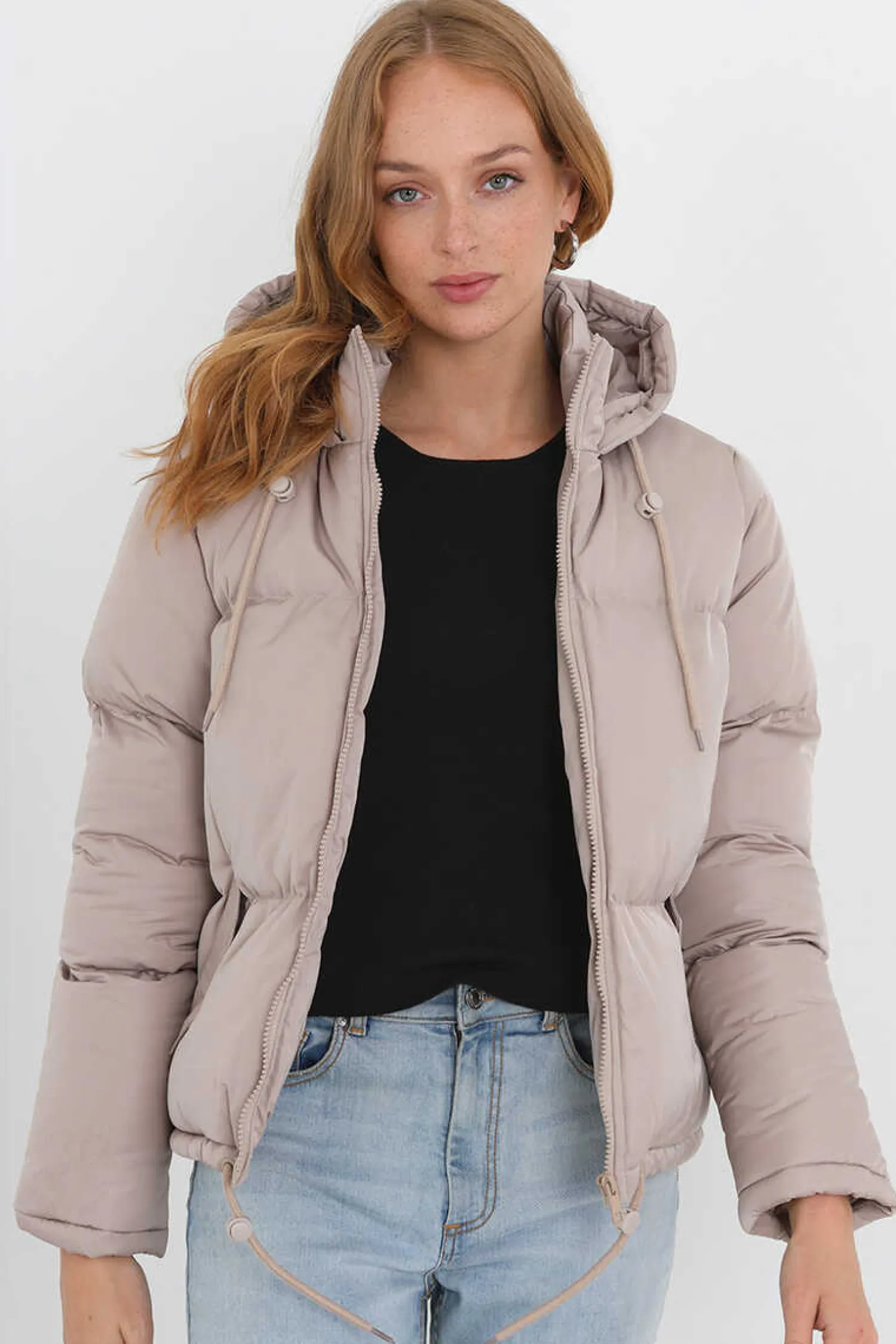 Casaco De Penas De Mulher Acolchoado, Com Capuz E Cordao Ajustavel No Capuz E Na Parte De Baixo. Fecho-Eclair