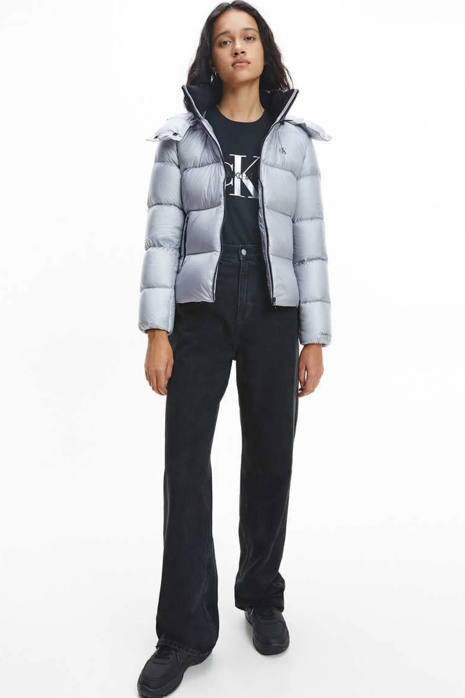 Casaco De Plumas Com Capuz E Fecho-Eclair, Com Logo A Frente Calvin Klein, Confecionado Com Poliester.