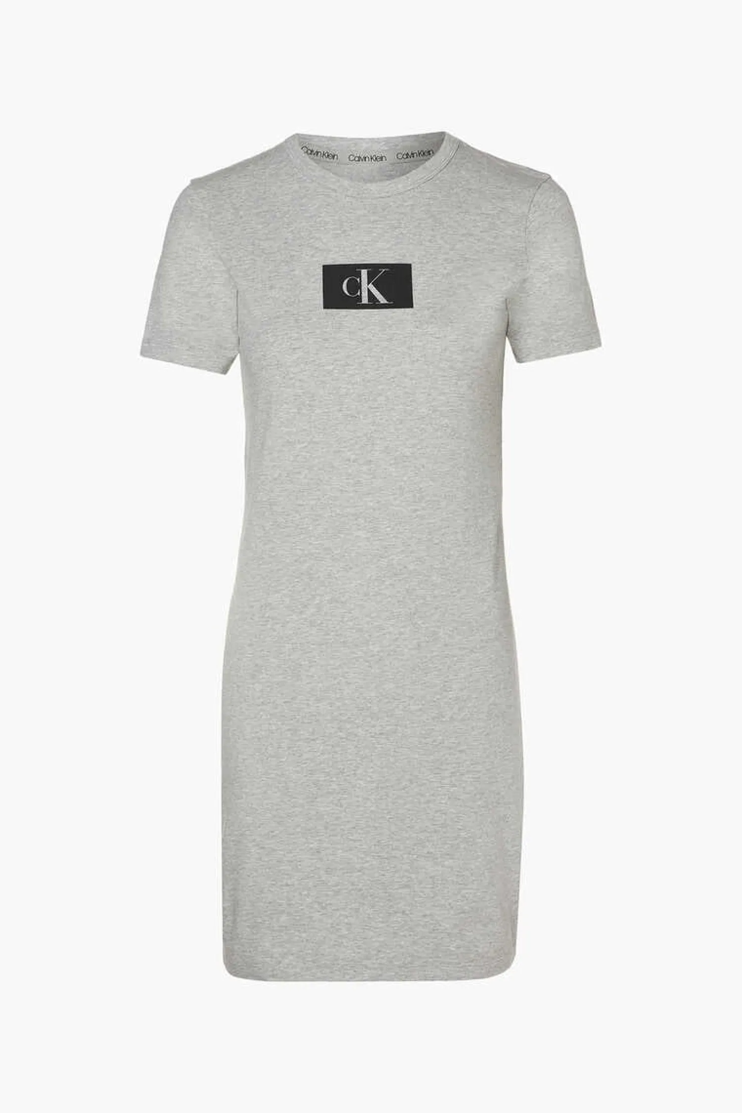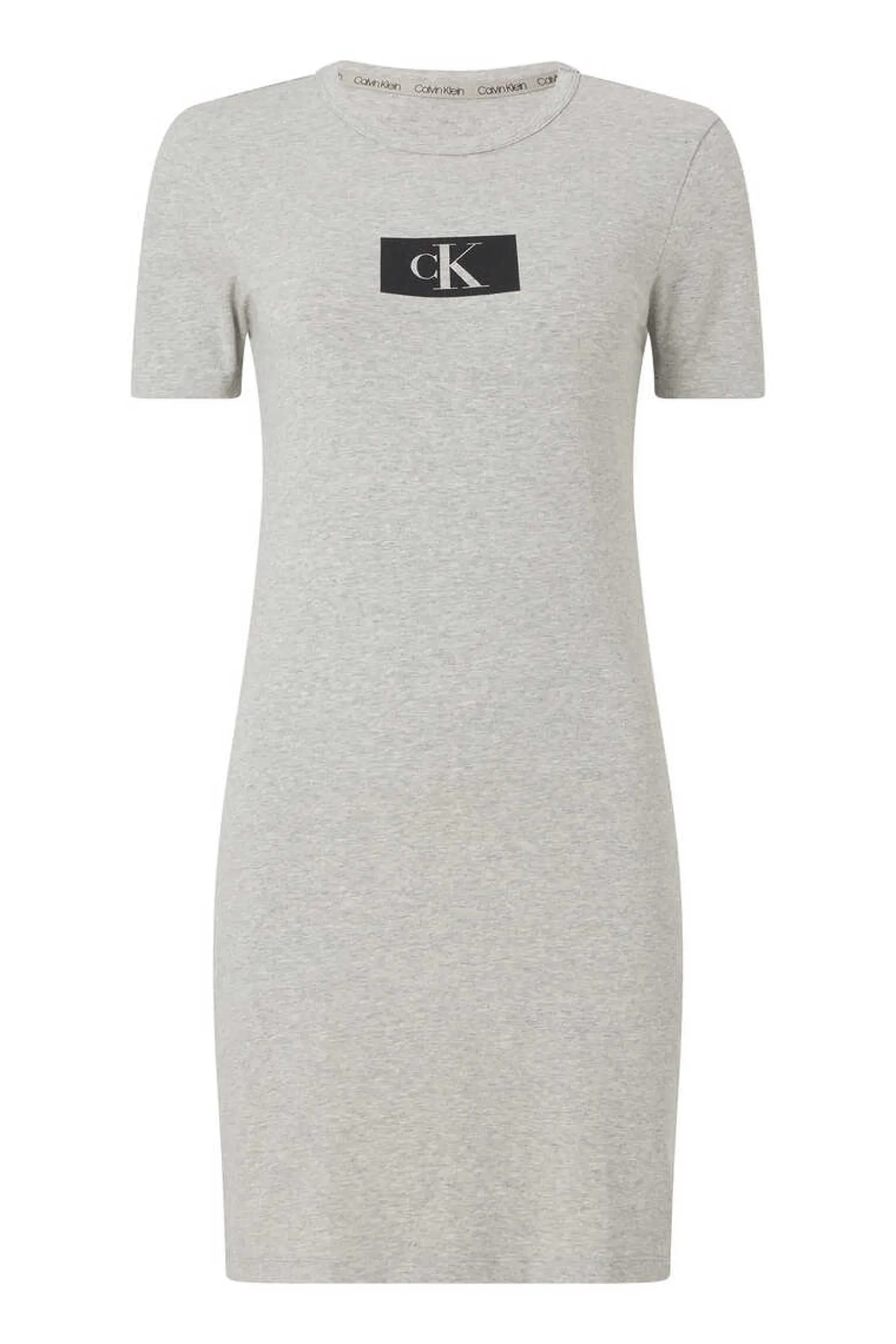 Camisa De Dormir Em Malha De Algodao Elastica, Gola Redonda, Manga Curta E Logo Da Calvin Klein Estampado No Peito.