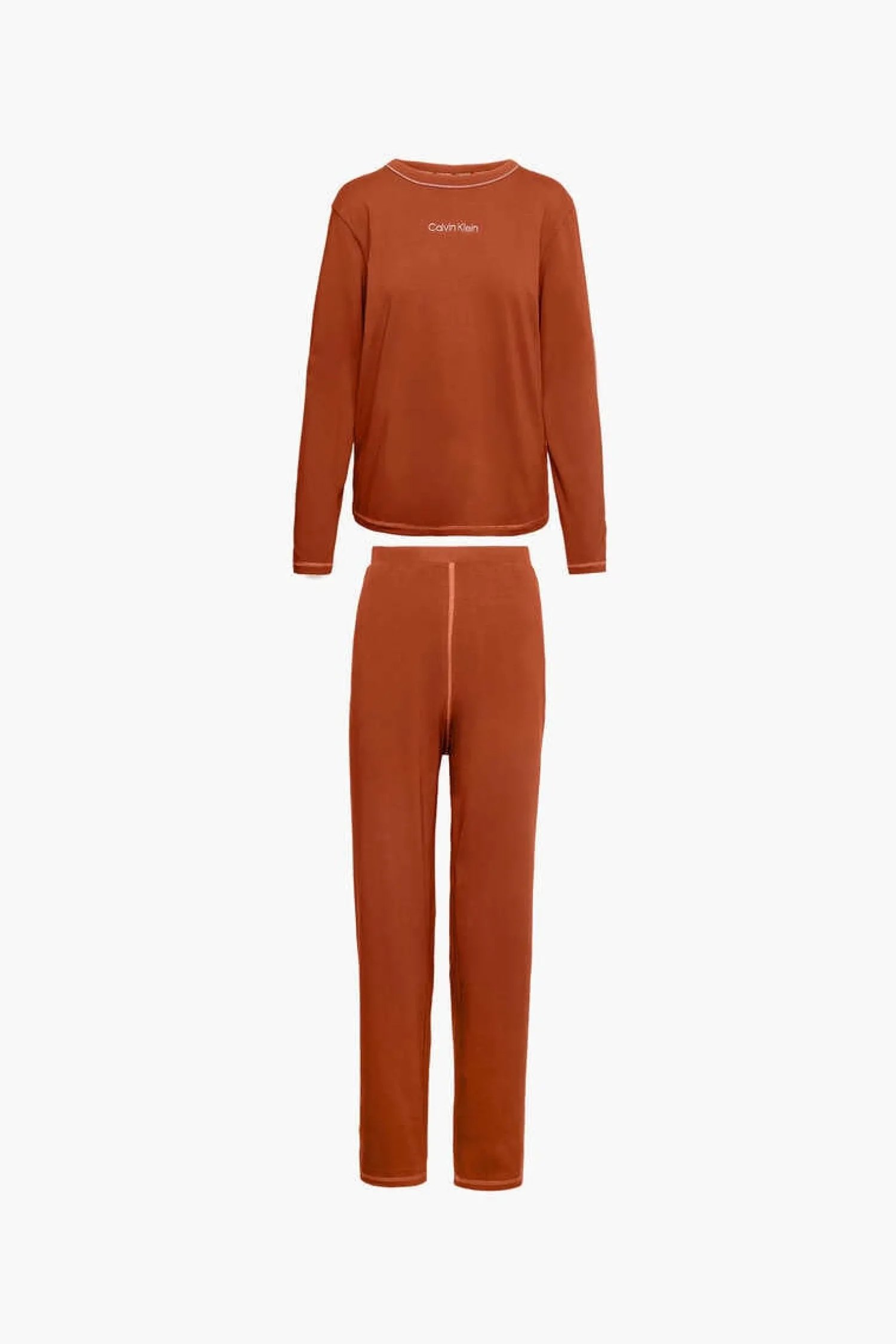 Conjunto De Pijama Comprido Em Malha De Algodao Com Logo De Calvin Klein No Peito Frontal