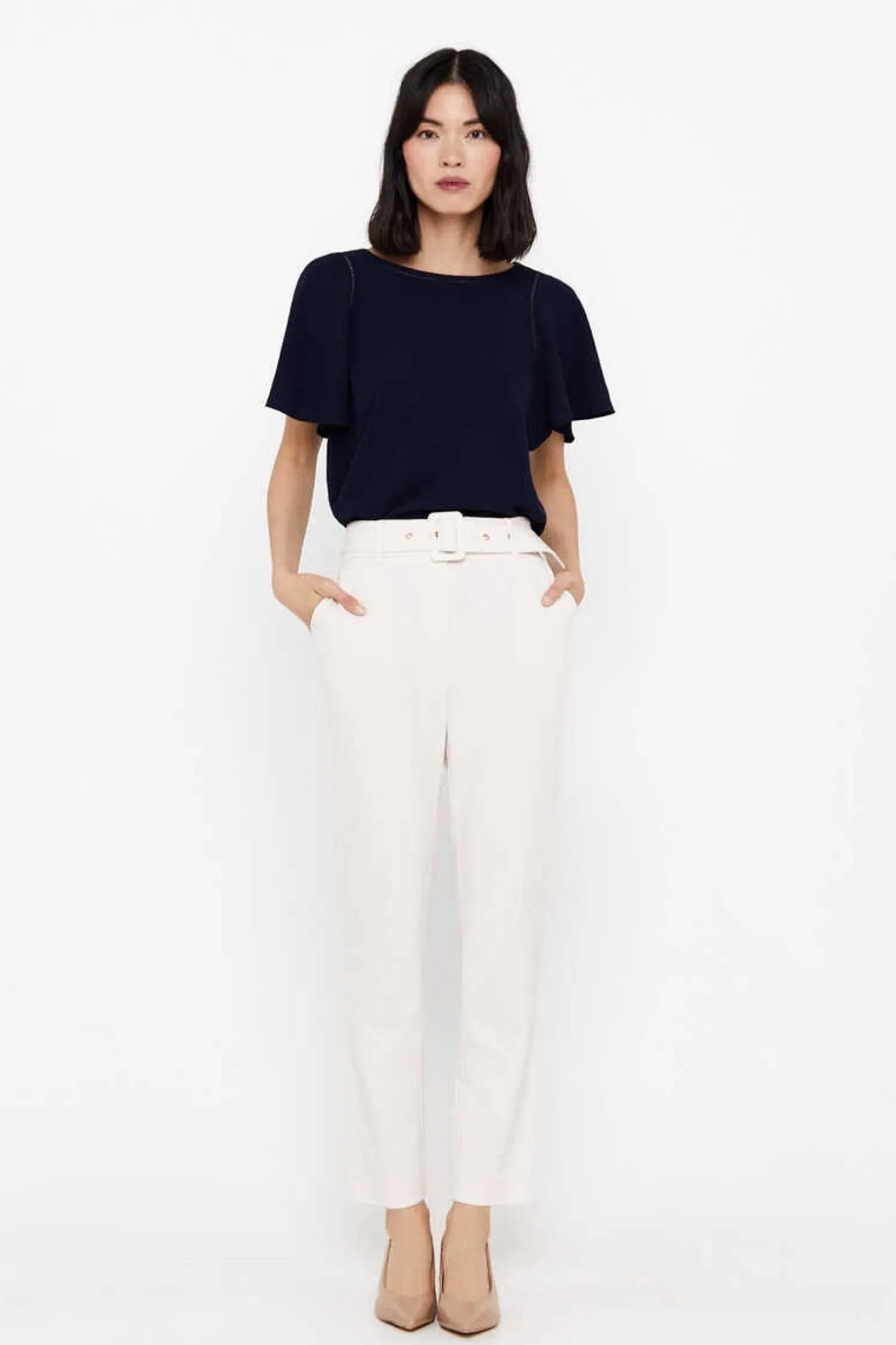 – Blusa Tecido Textura Conforto – Detalhe Rendilhado – Manga Curta Com Roda – Decote Caixa
