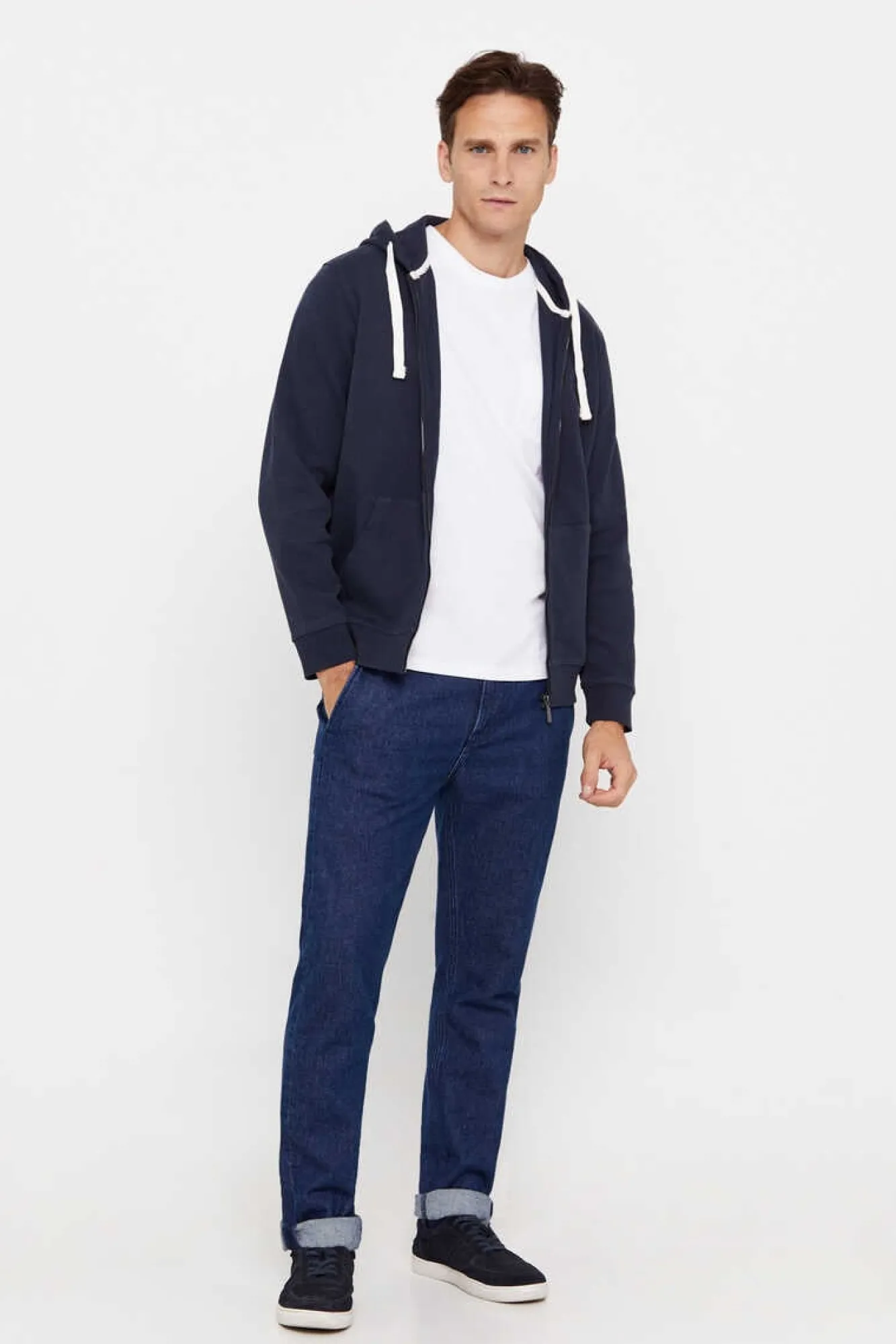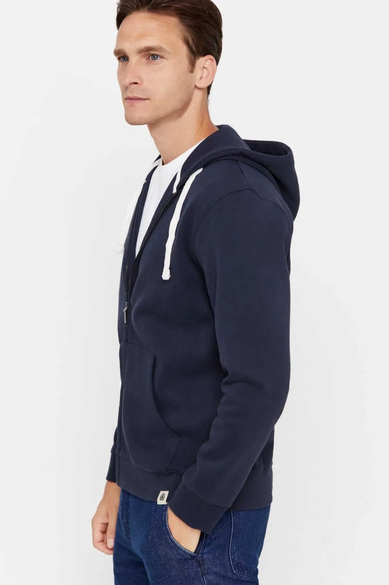 Regular Fit Felpa Peso Medio Fecho-Eclair Frontal E Capuz Com Bolso Canguru.
