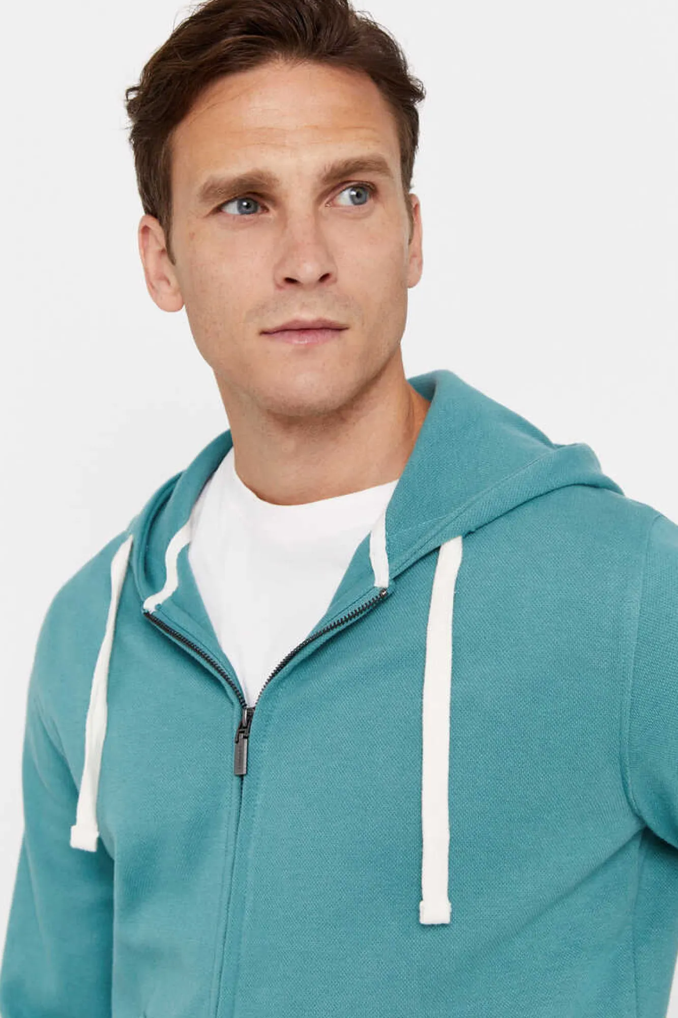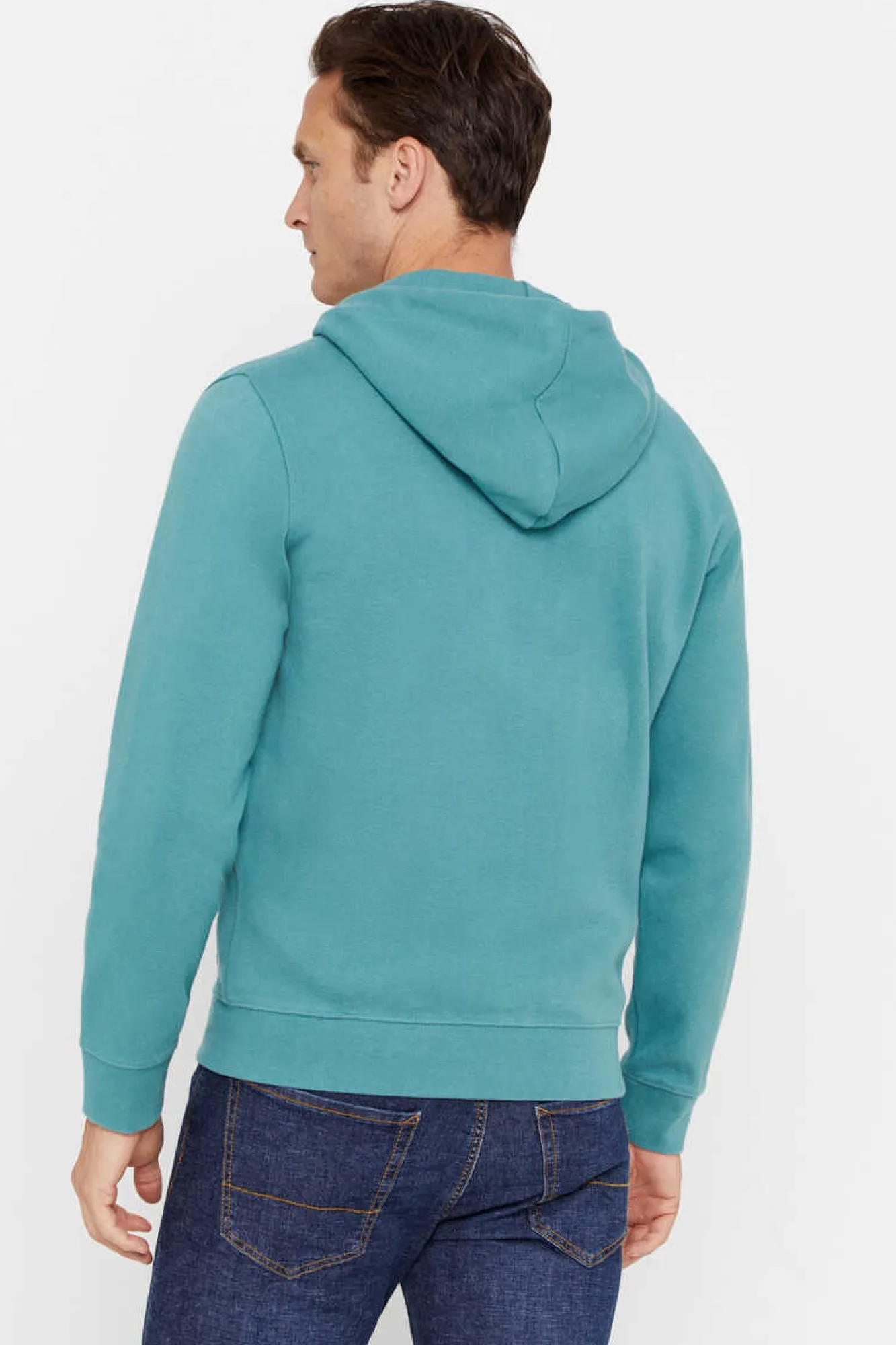 Regular Fit Felpa Peso Medio Fecho-Eclair Frontal E Capuz Com Bolso Canguru.