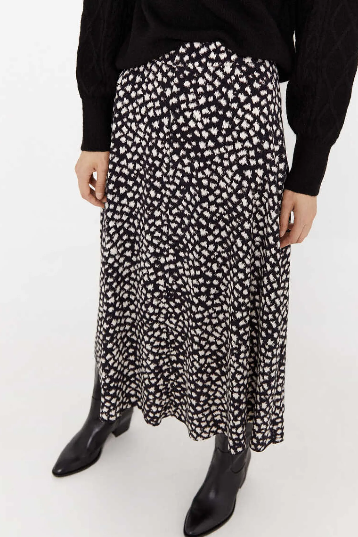 Saia Midi Estampada Corte Evase Fecho-Eclair Invisivel Lateral