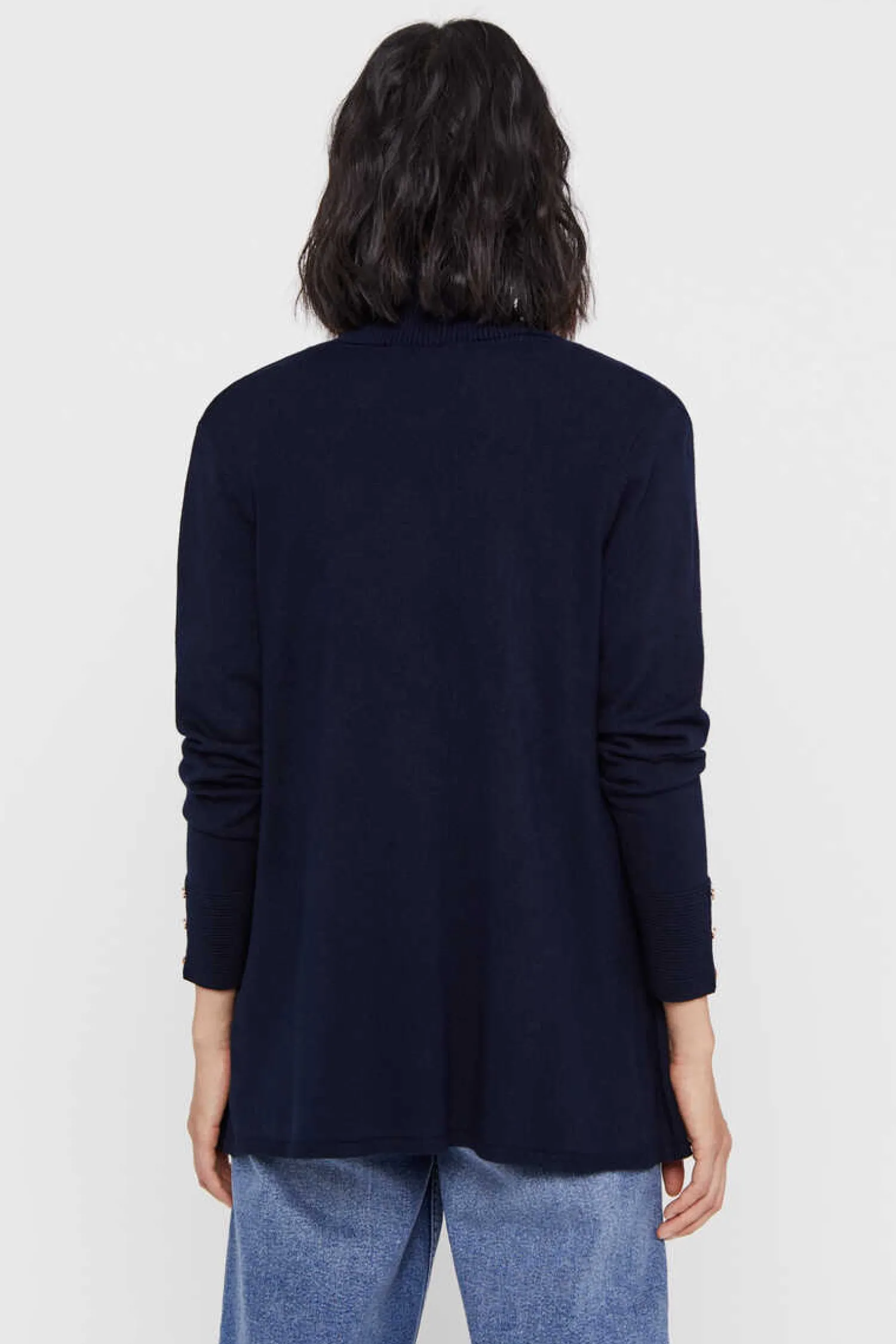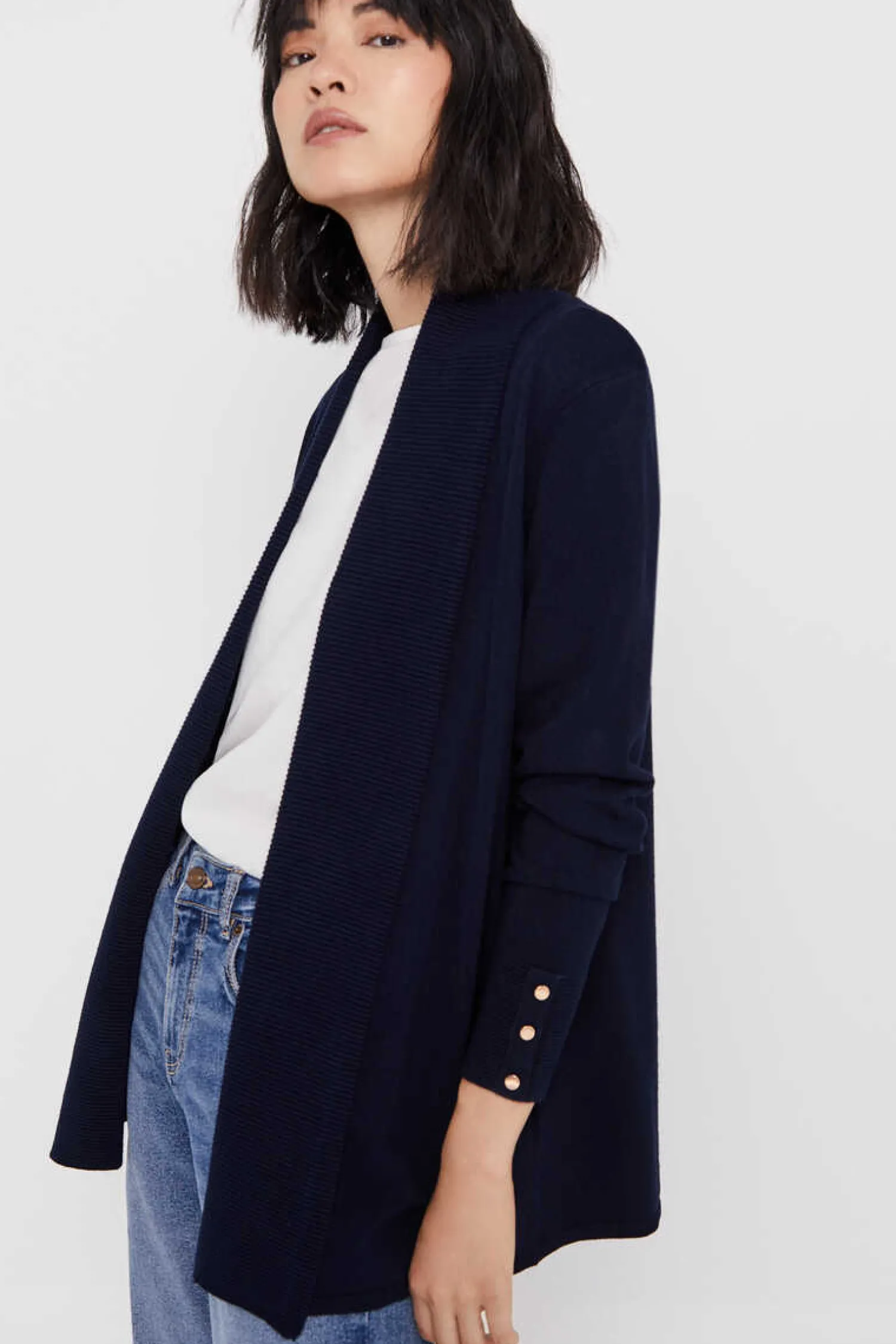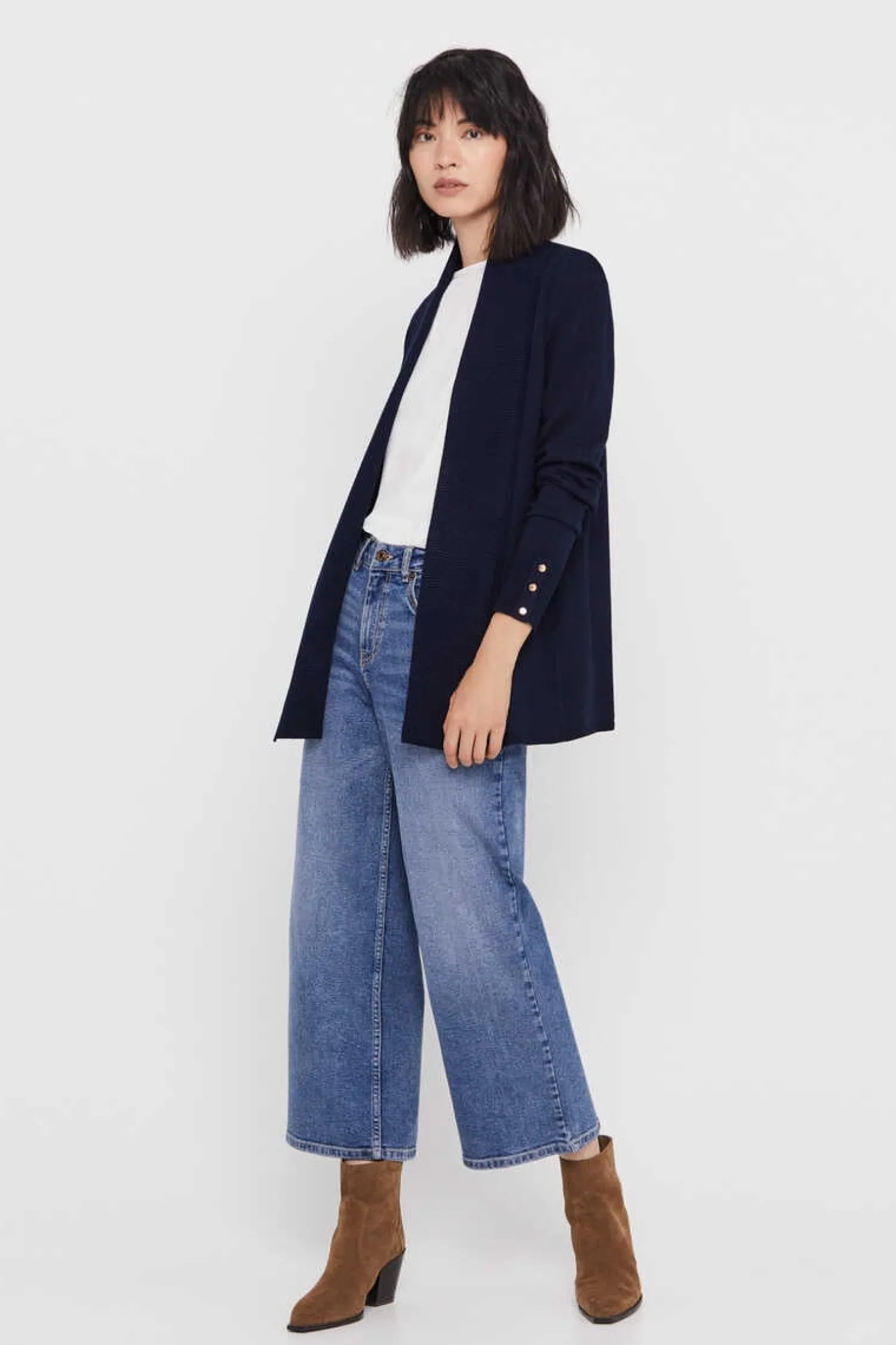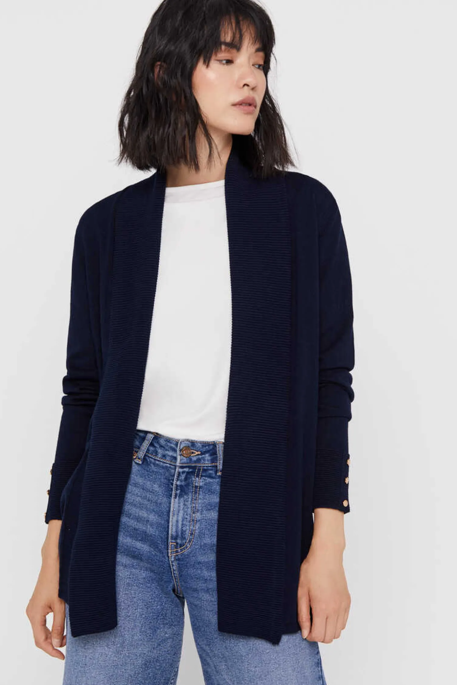 Casaco De Malha Aberta De Gola Xale. Manga Comprida. Corte Reto. Comprimento Anca.