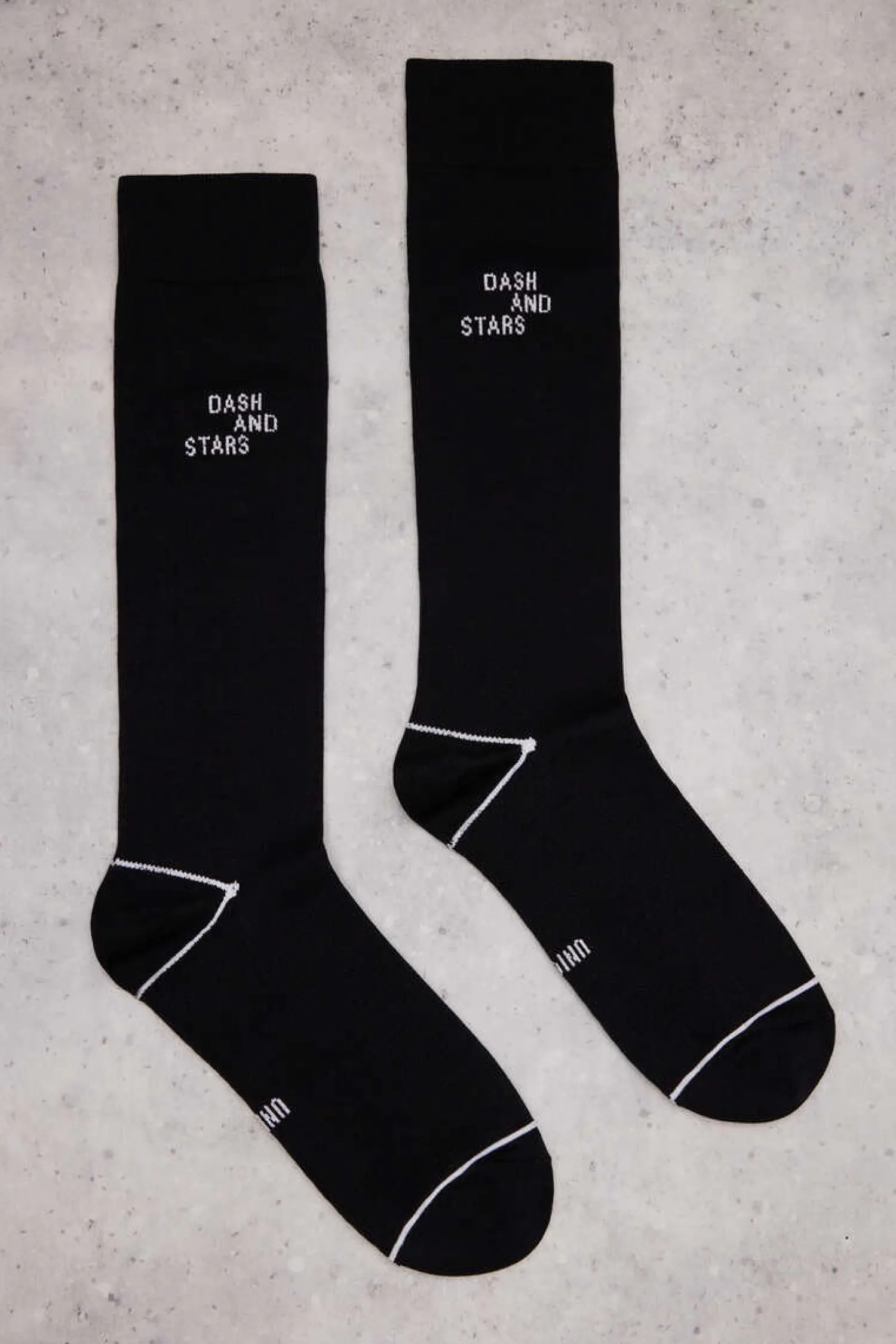 – Meia Tecnica Extra Comprida E Compresiva, De Cor Preta Com Pormenor De Logo Em Contraste. Confecionadas Com Nylon Reciclado.