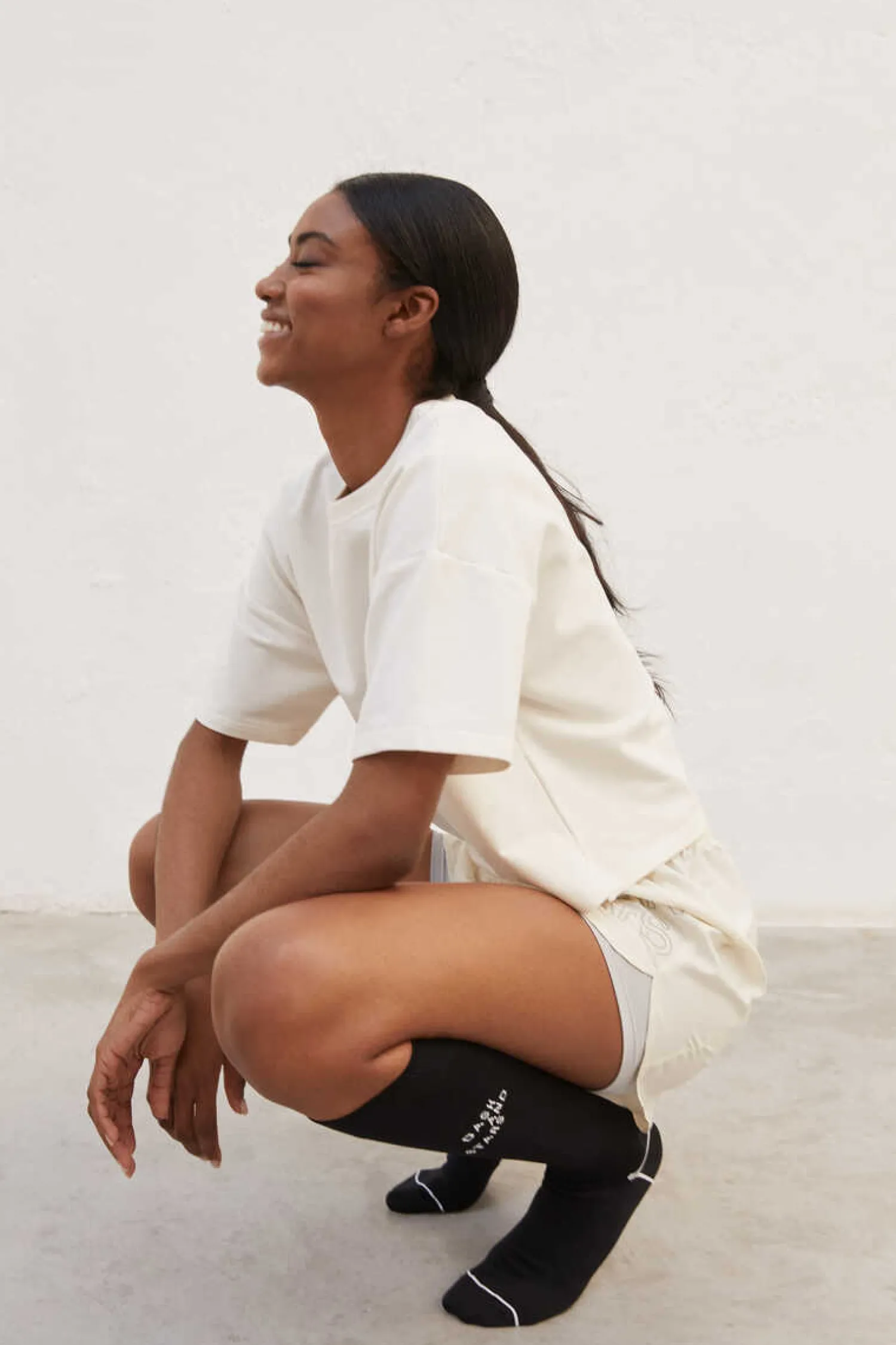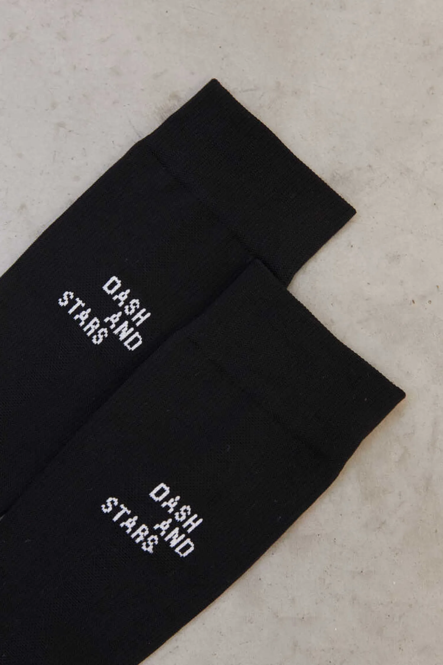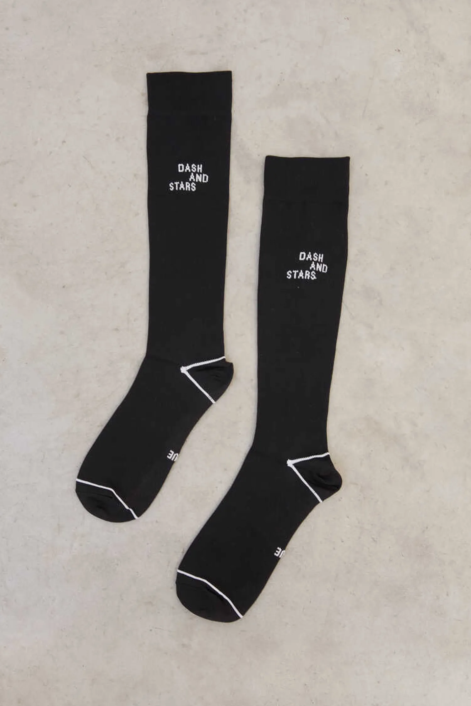 -Meia Soquete Tecnica Extra Comprido E Compresivo, De Cor Preta Com Detalhe De Logo A Contraste. Confecionadas Com Nylon Reciclado.