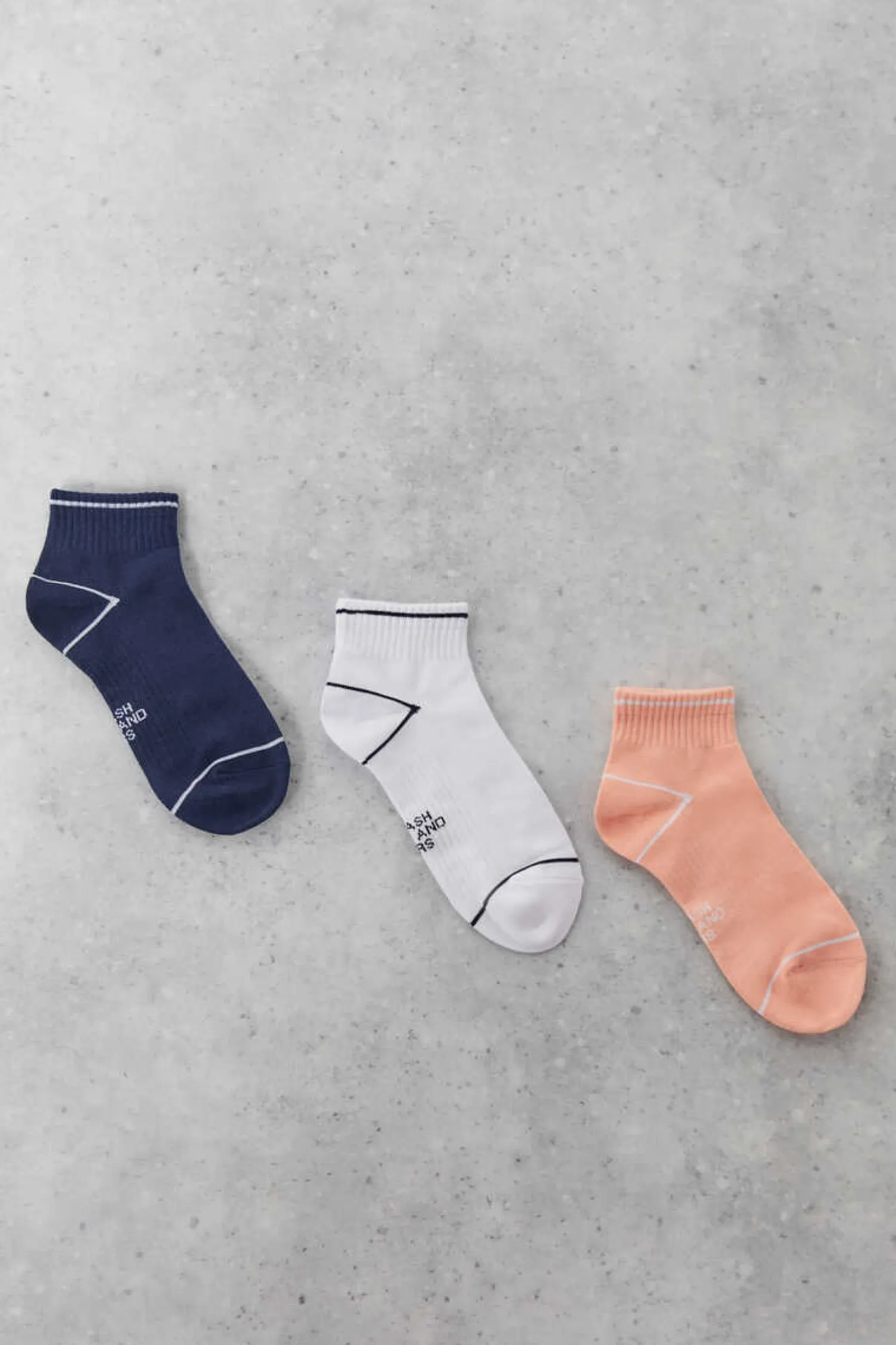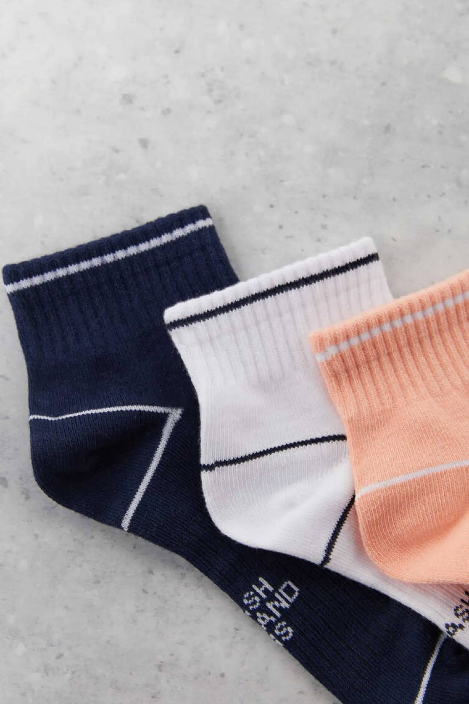 – Pack De Tres Meias Curtas Confecionadas Com Algodao Organico. De Diferentes Cores Em Tons Pessego, Azul-Marinho E Branco.