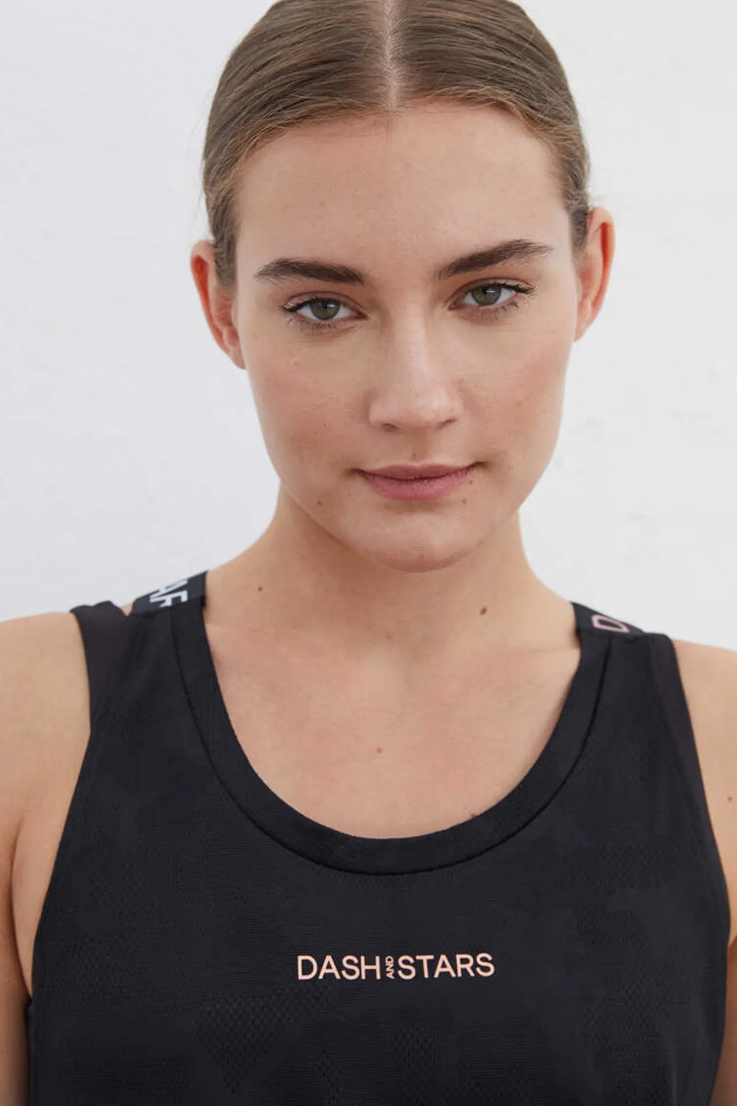 – T-Shirt De Alcas Tecnicas De Tipo Halter Em Cor Preta. Com Tecido Perfurado, Cava Baixa E Elastica Com Logo “Dash And Stars” Nas Costas, Esta T-Shirt E Mu … Ito Comoda Para Poder Realizar Qualquer Tipo De Exercicio, Seja Running Ou Training.