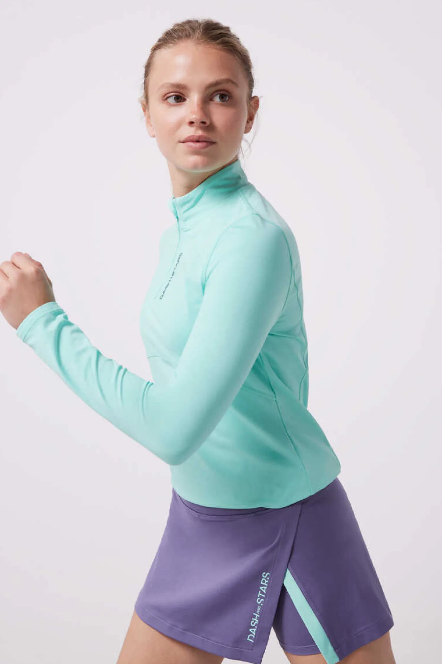 – Saia De Microfibra Com Comoda Malha Curta Interior Em Lilas. Com Abertura Lateral E Detalhes De Cor Em Contraste.