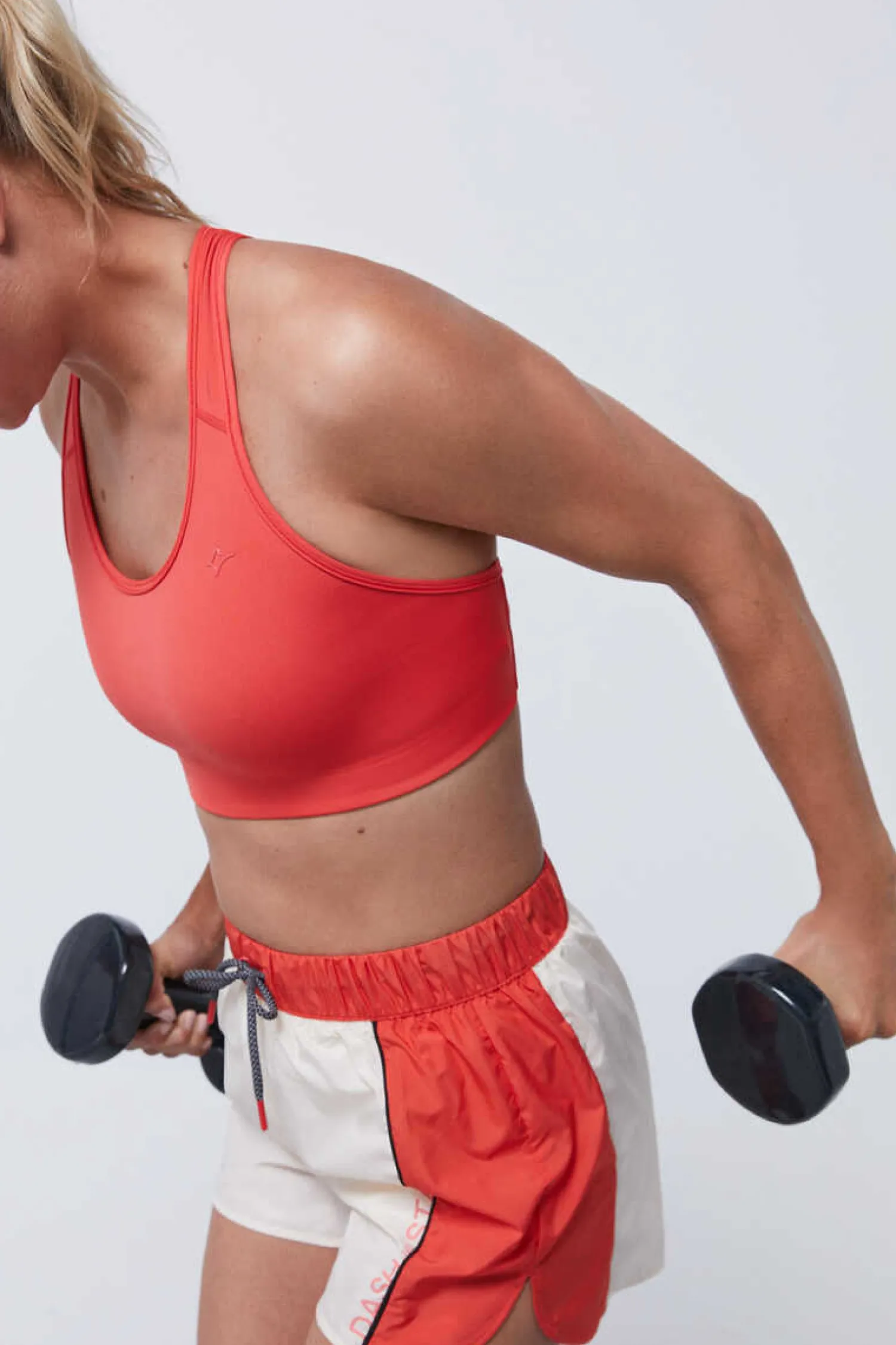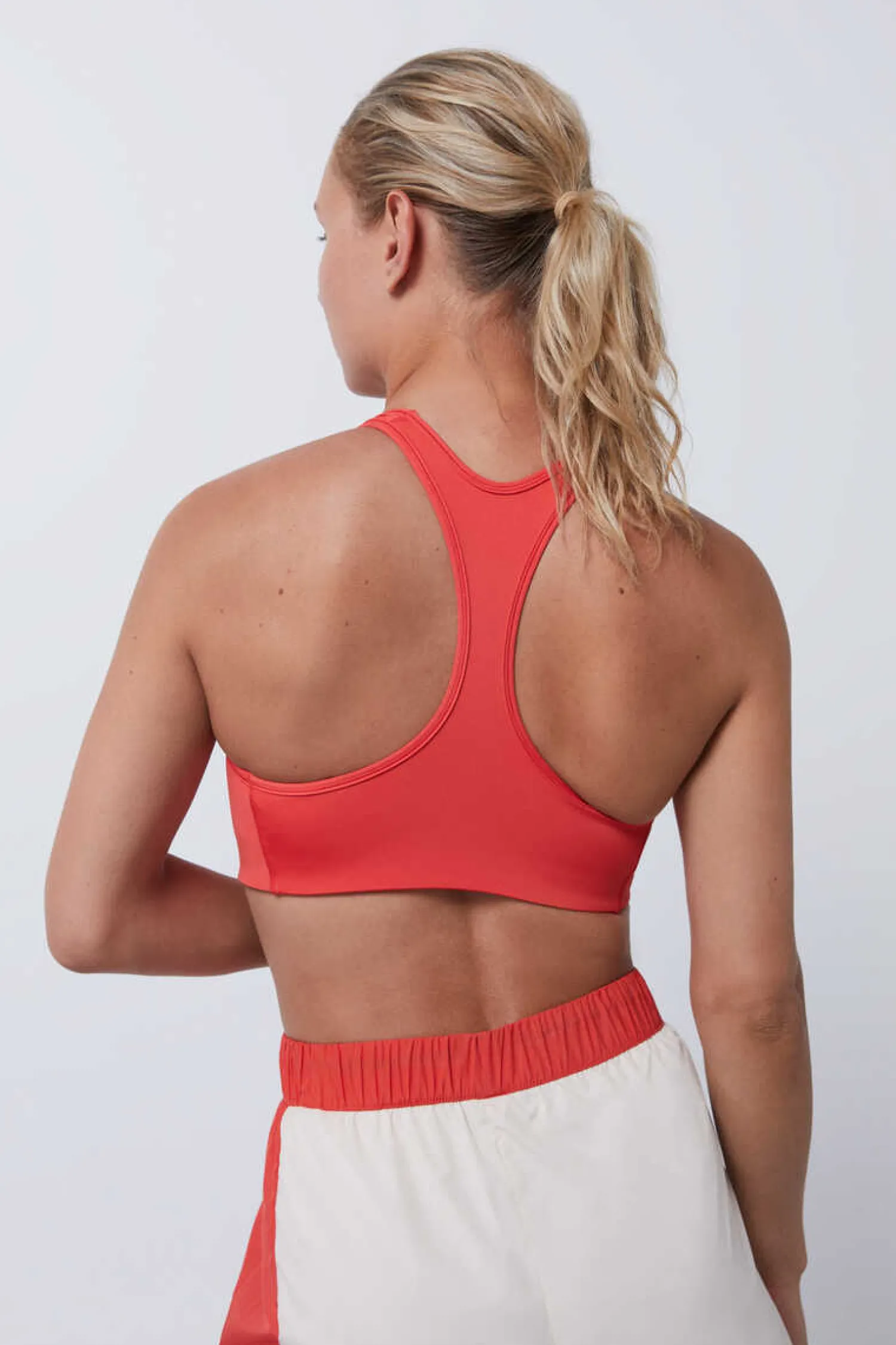 – Soutien Desportivo 4D Stretch Com Decote Redondo E Costas Olimpicas De Cor Vermelho. Sem Copas.