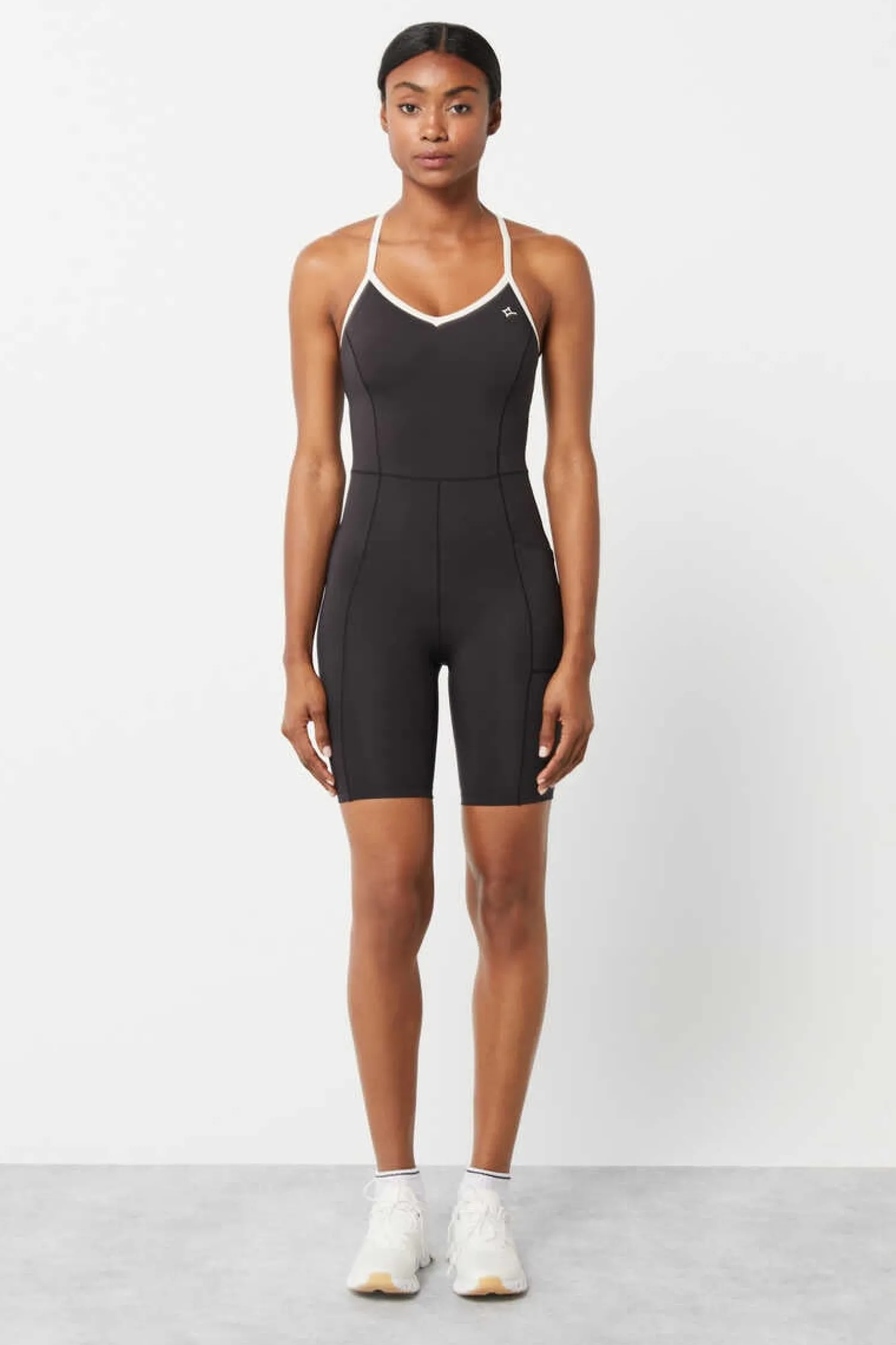 – Macacao Curto 4D Stretch De Comprimento Ciclista Com Decote Em Bico, Alcas Cruzadas (E Regulaveis) Nas Costas, Bolso Lateral E Top Interior Com Copas Remo … Viveis. Alem Disso, Possui Costuras Rasas Anti-Esfoladelas Para Uma Sensacao De Conforto Extra.