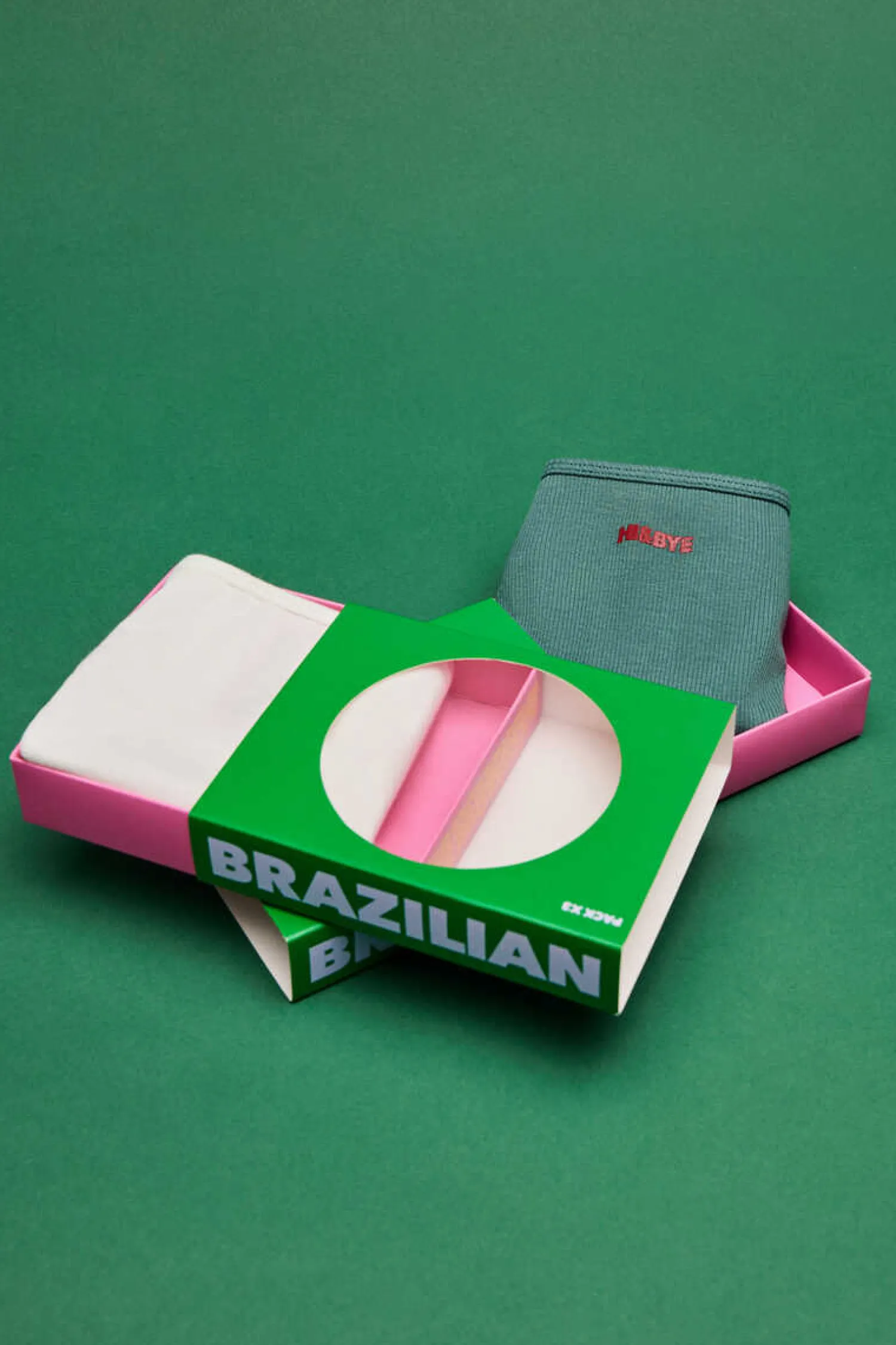 Pack De 3 Cuequinhas Brasileiras De Algodao. Cada Uma E De Uma Cor (Branco, Verde, Bordo), As Cuecas Do Meio Sao Confecionadas Em Tecido Canelado E As Outras Du … As Sao Lisas.