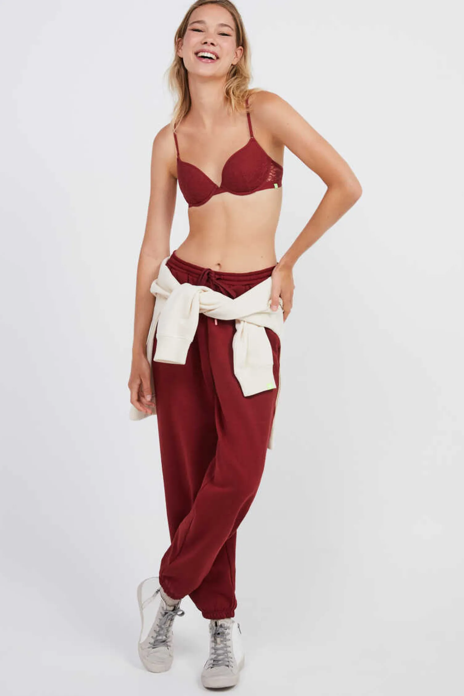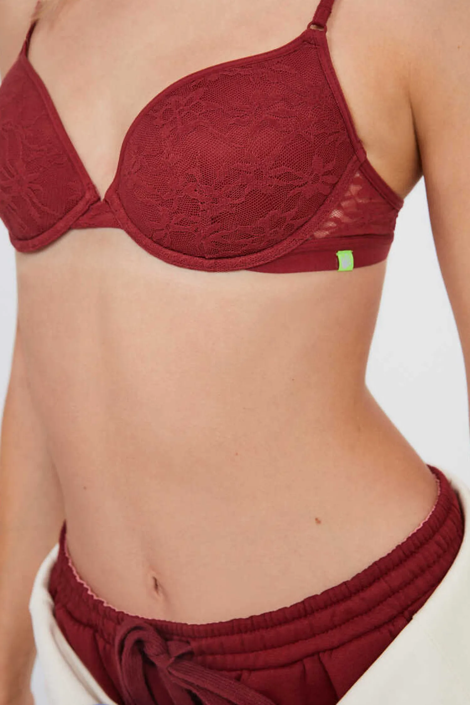 Soutien Com Enchimento E Aro, Confecionado Com Uma Delicada Renda De Cor Vermelho-Escuro. Ideal Para Usar Com Os Teus Looks Mais Arranjados.