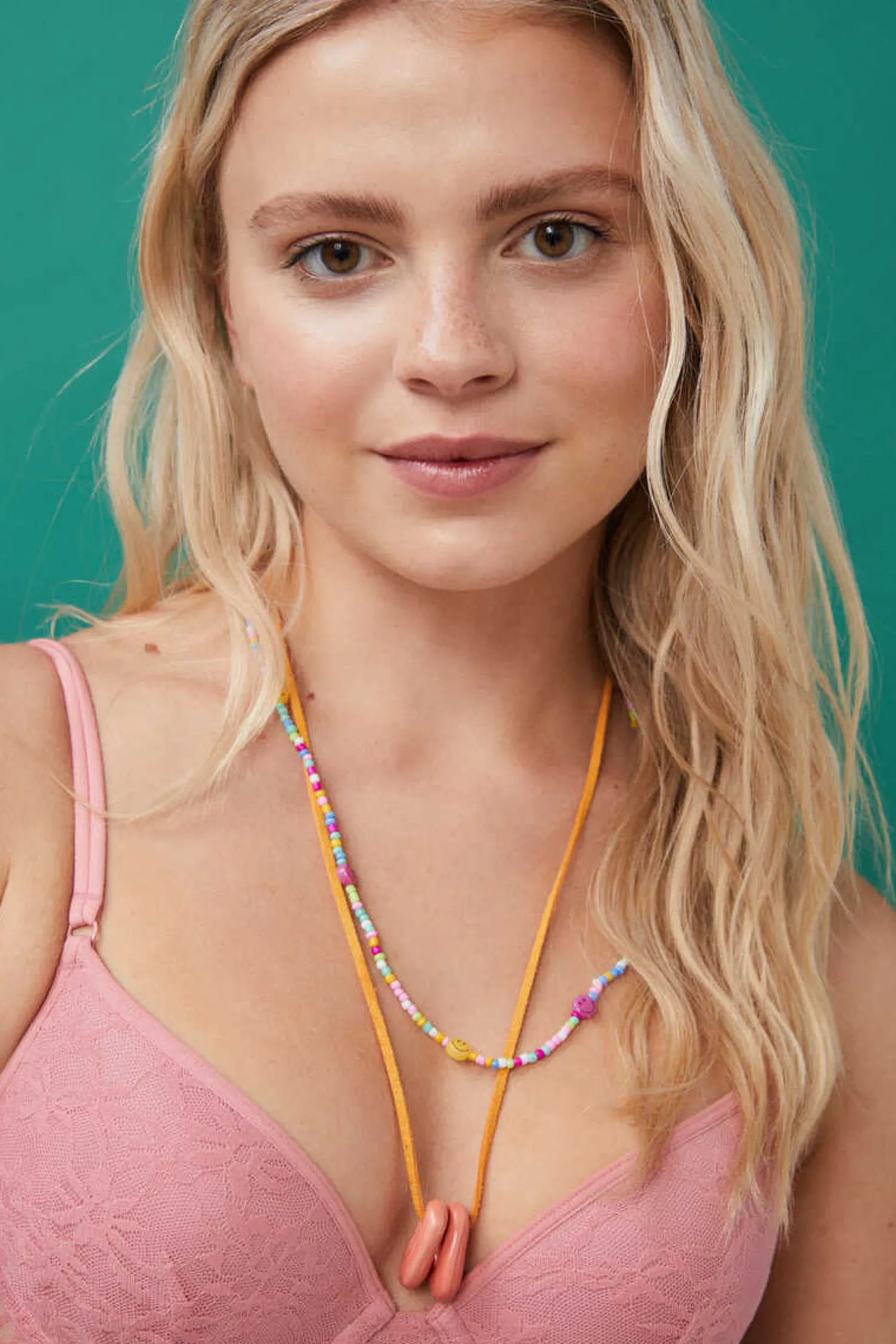 Soutien Push-Up Confecionado Com Delicada Renda De Cor Rosa. Com Efeito Aumento De Ate Um Tamanho, Da Um Toque Especial Aos Teus Looks Mais Arranjados.