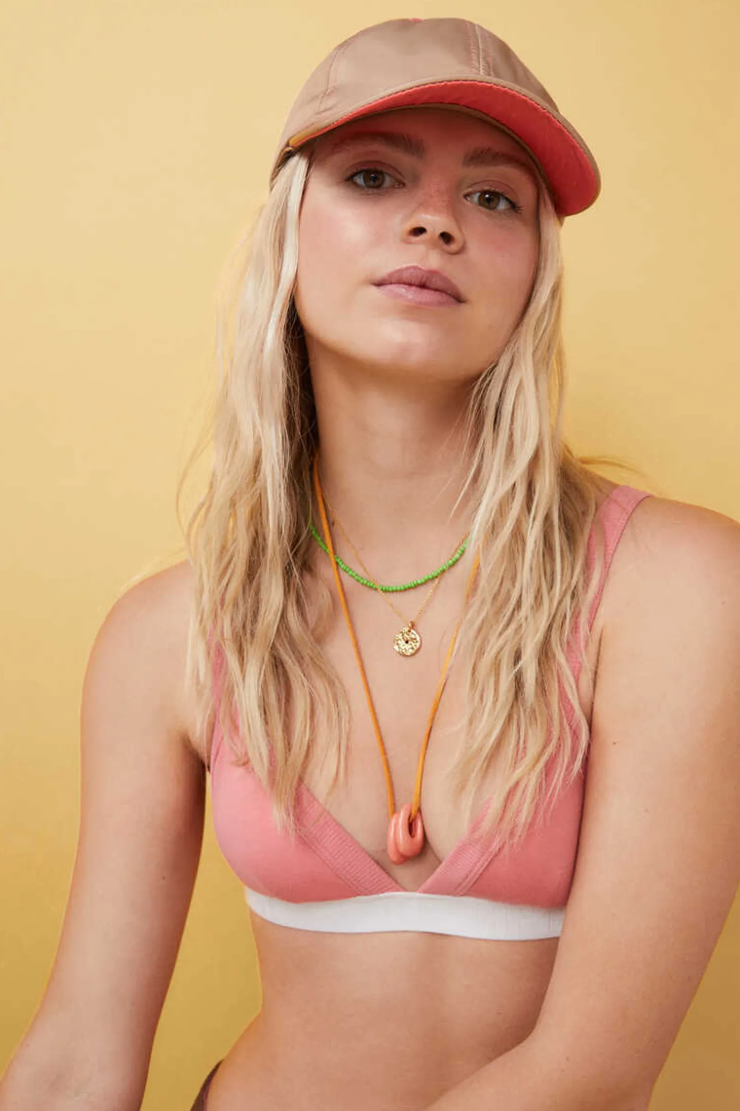 Soutien De Algodao Tipo Top Triangular, Com Comodas Copas De Por E Tirar. De Cor Rosa, Com Detalhe De Elastico Sob O Peito, E Alcas Em Tecido Rib (De Canelado). …