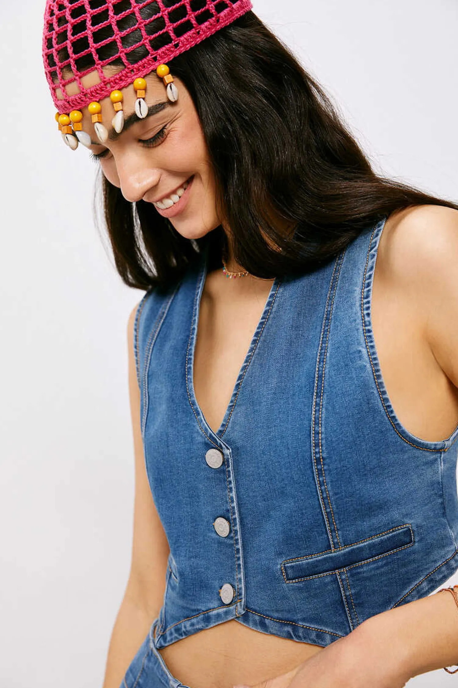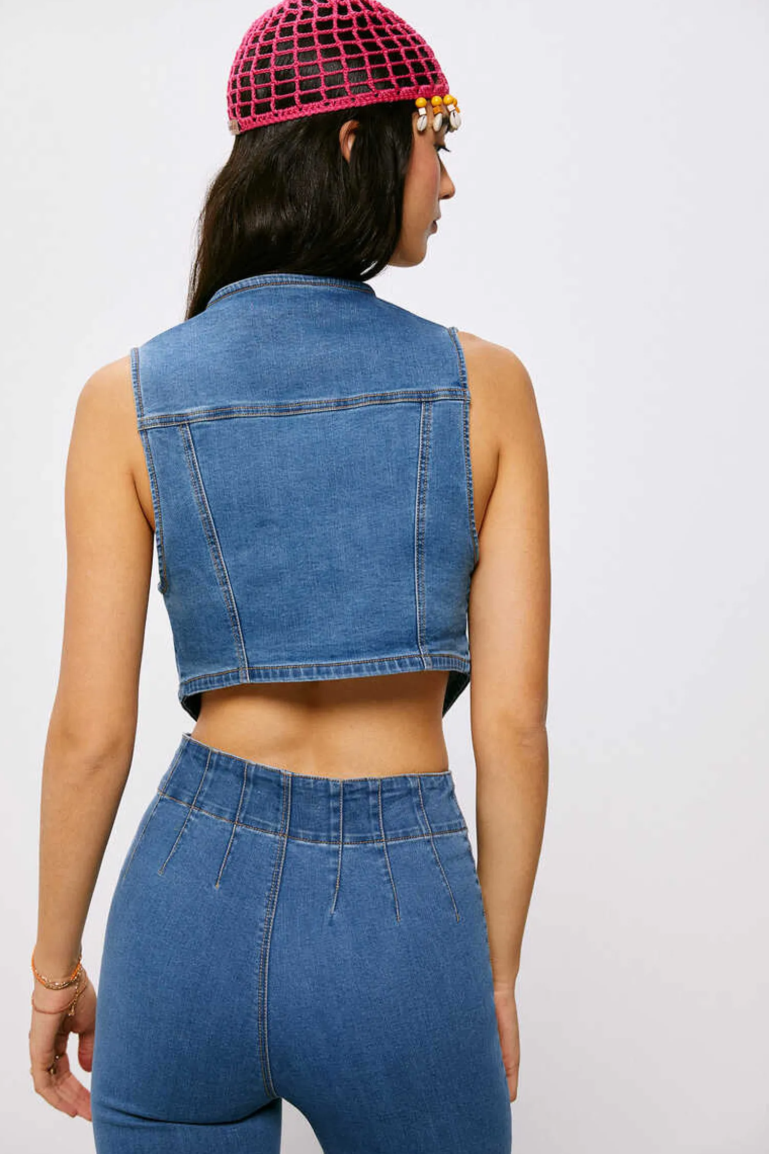 Colete De Ganga Gravado Com Decote Em Bico,Com Dois Bolsos De Vivos Na Atacante, Com Botoes E Com Acabamento De Bicos Nas Laterais.