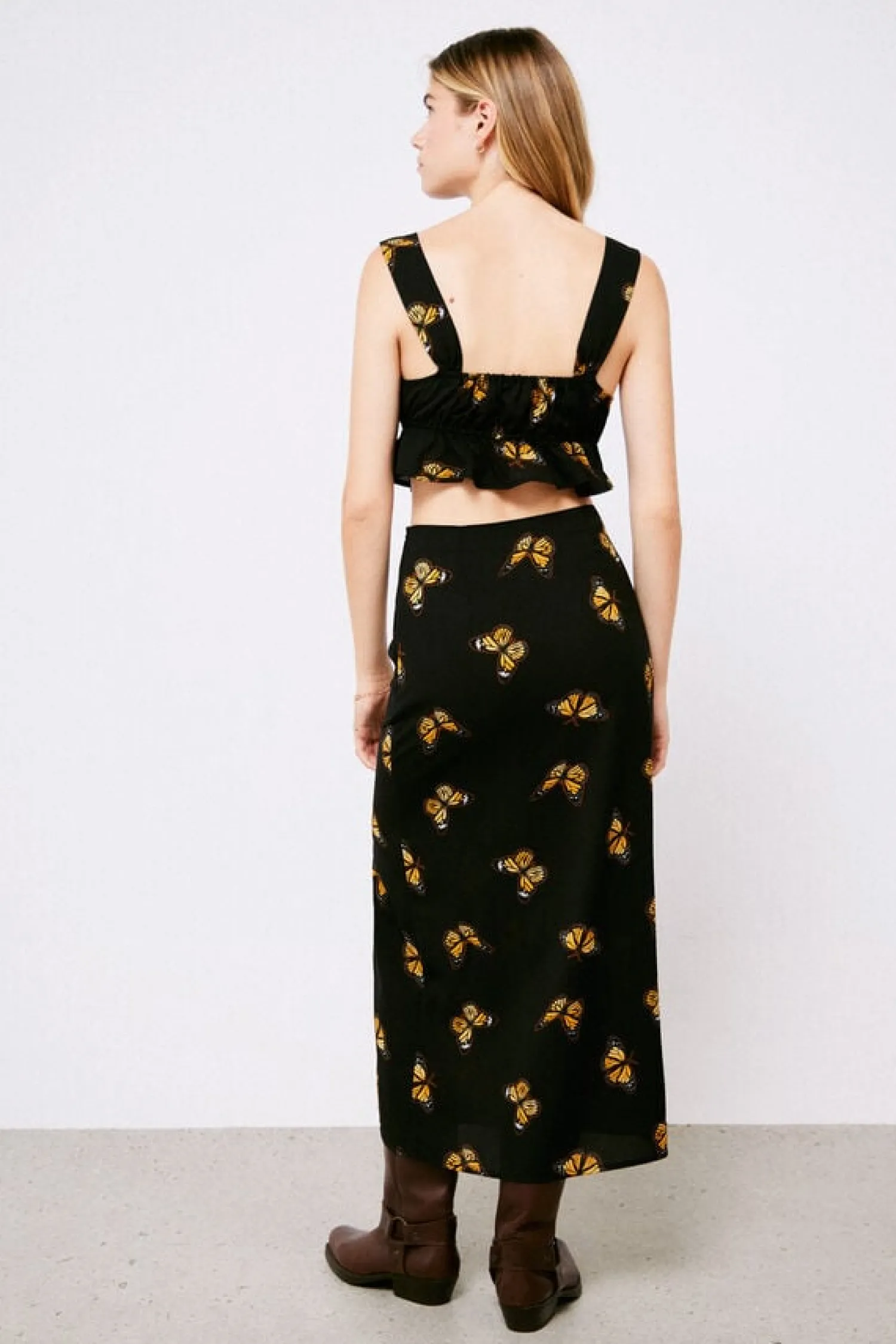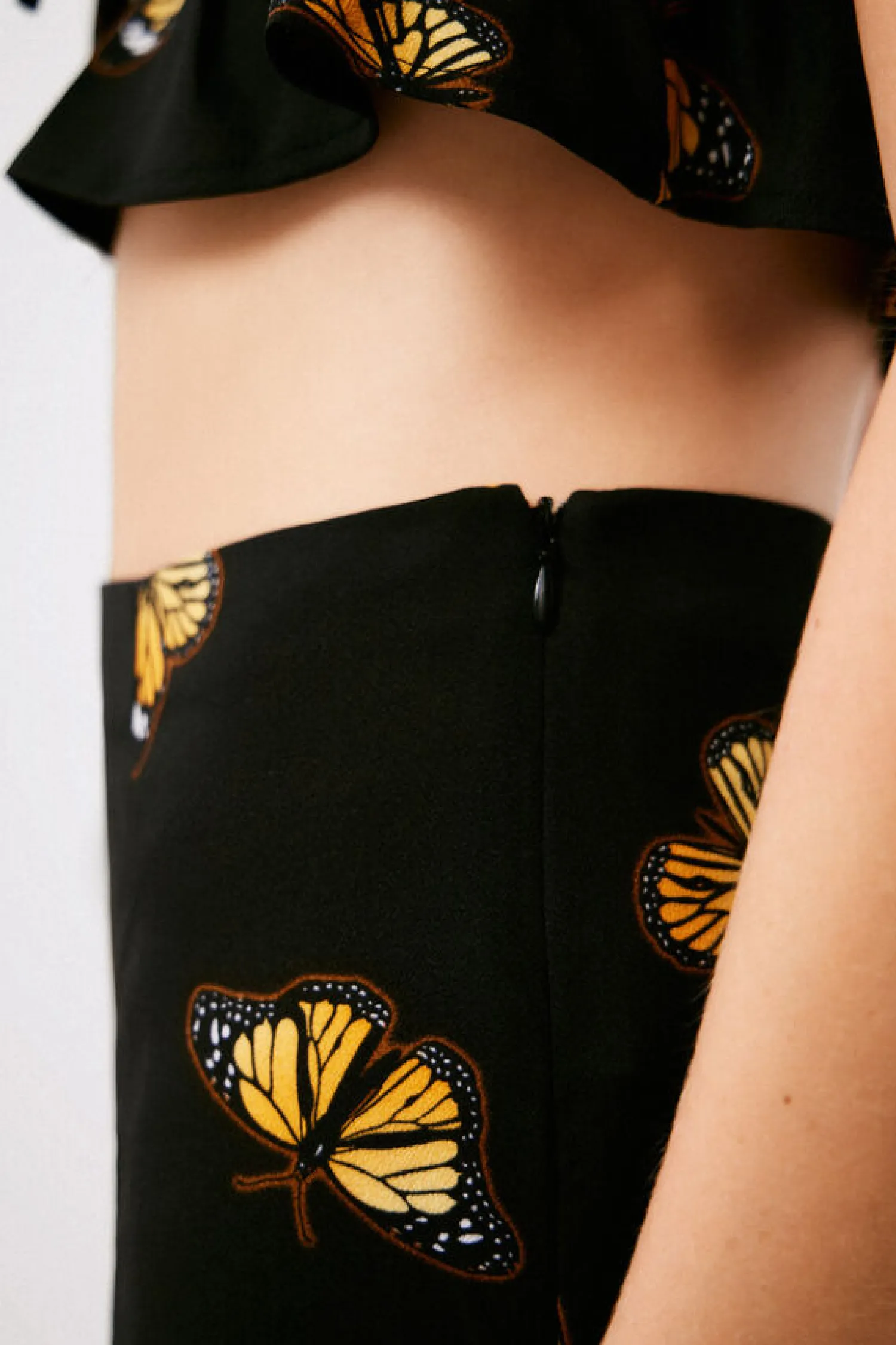 Saia Midi De Cintura Subida, Com Fecho-Eclair Invisivel, Com Estampado E Com Abertura Lateral.