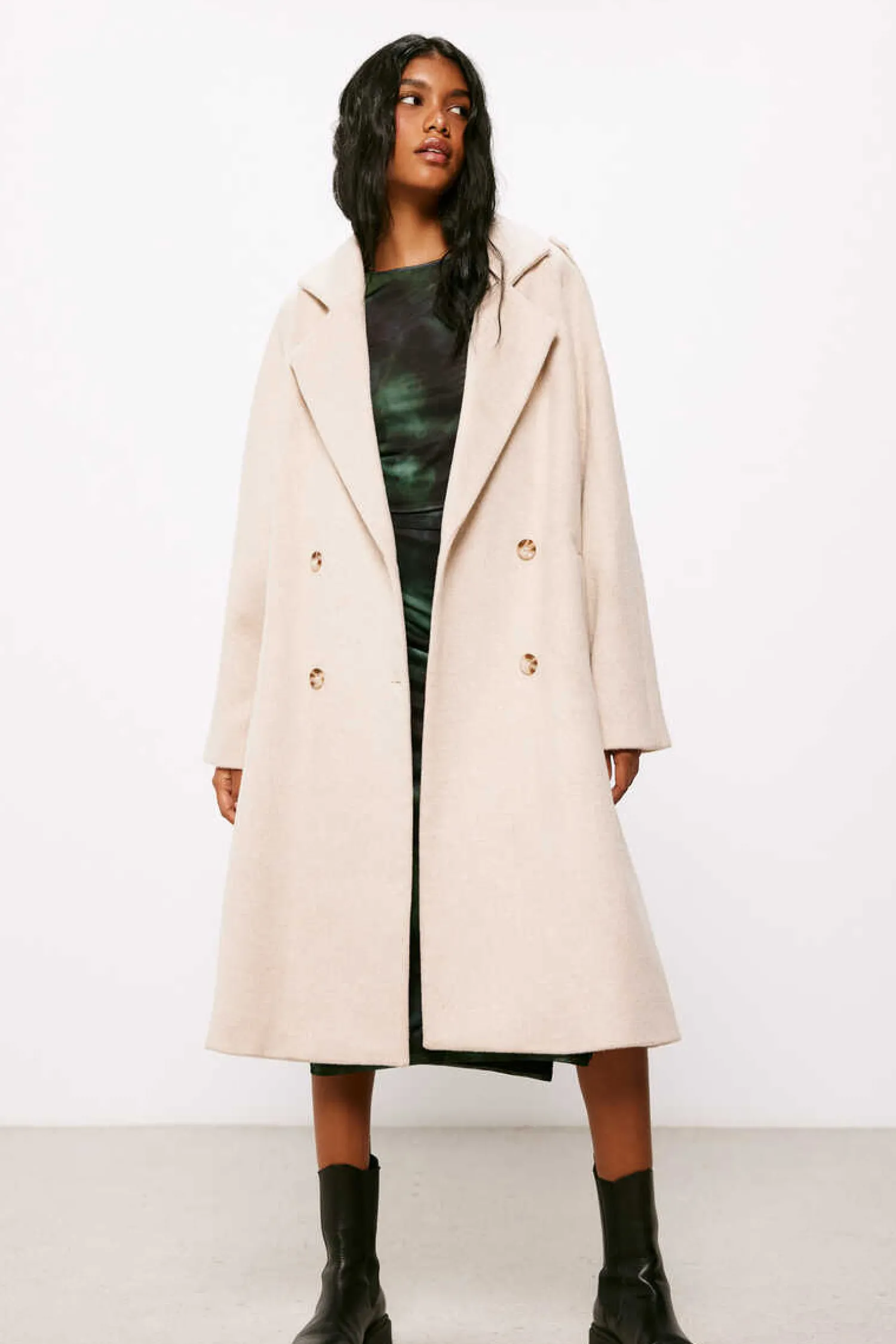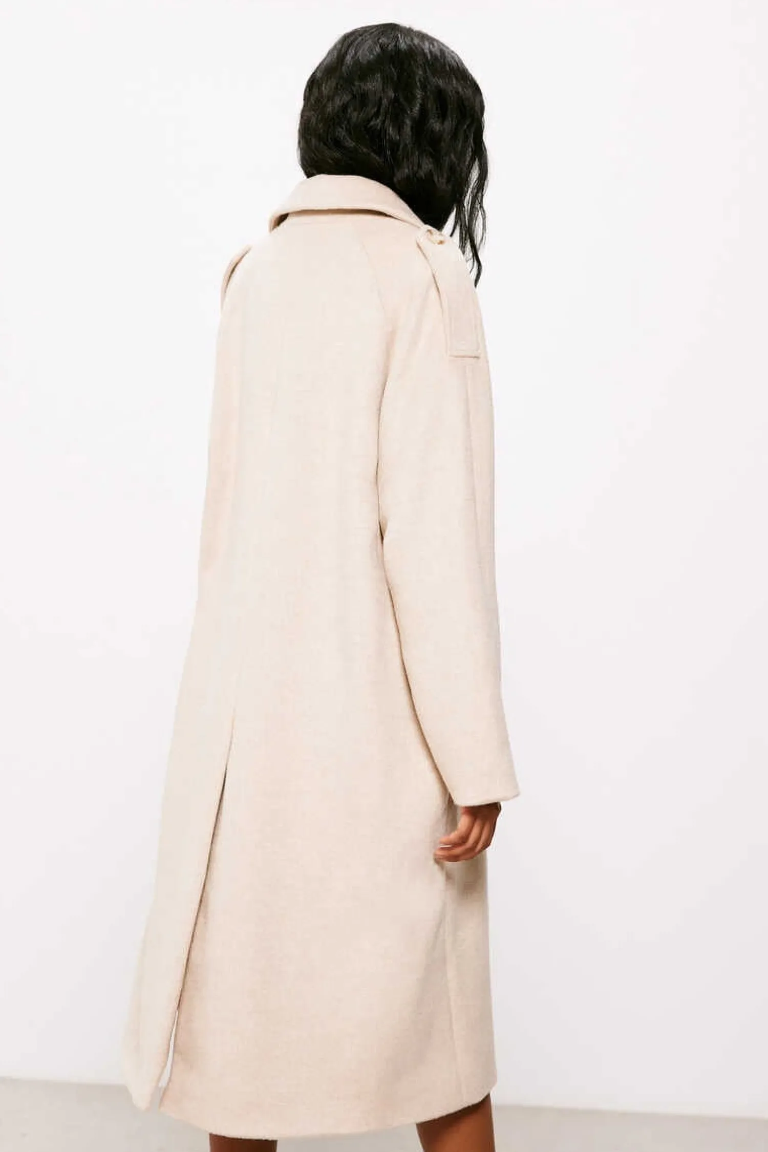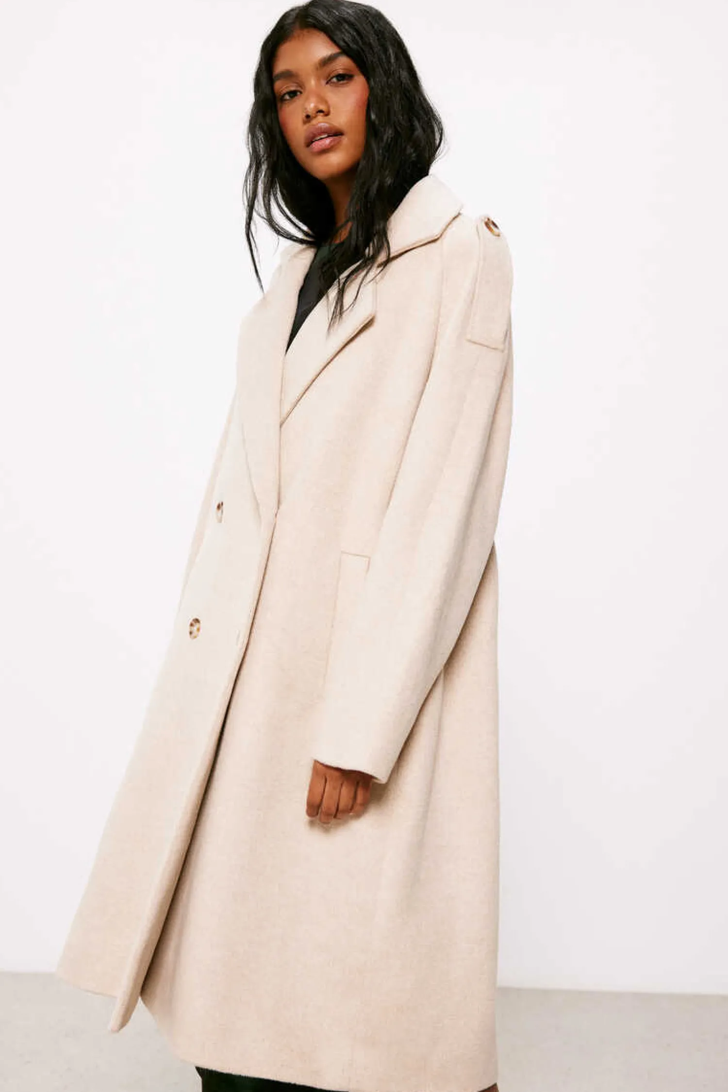Sobretudo Oversize Estilo Trench, Com Gola Com Lapela, Bolsos Laterais, Com Dupla Abotoadura Na Frente E Com Detalhe De Presilhas Nos Ombros.