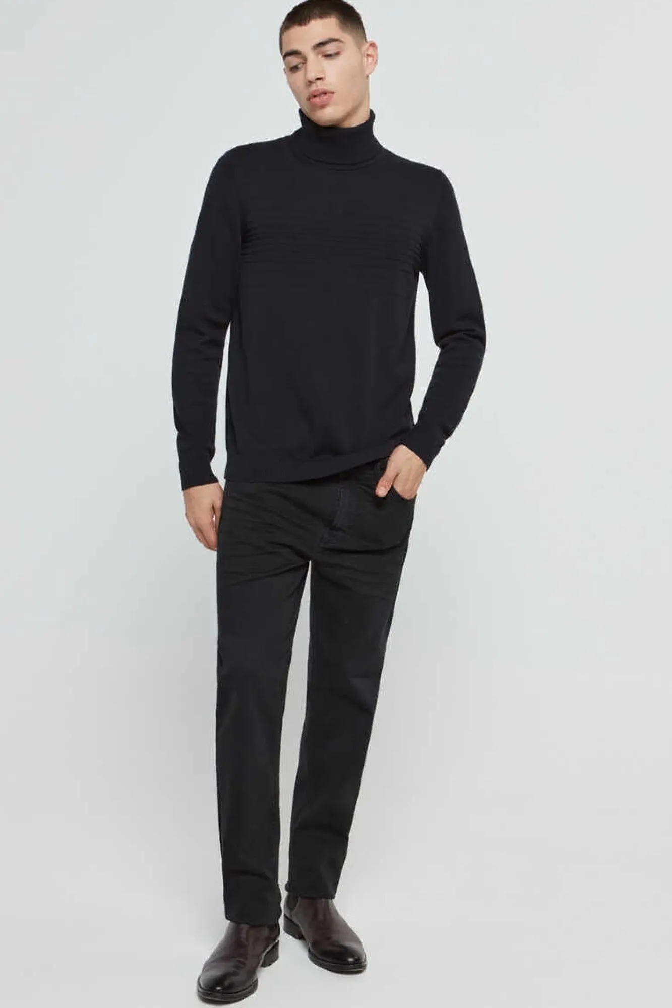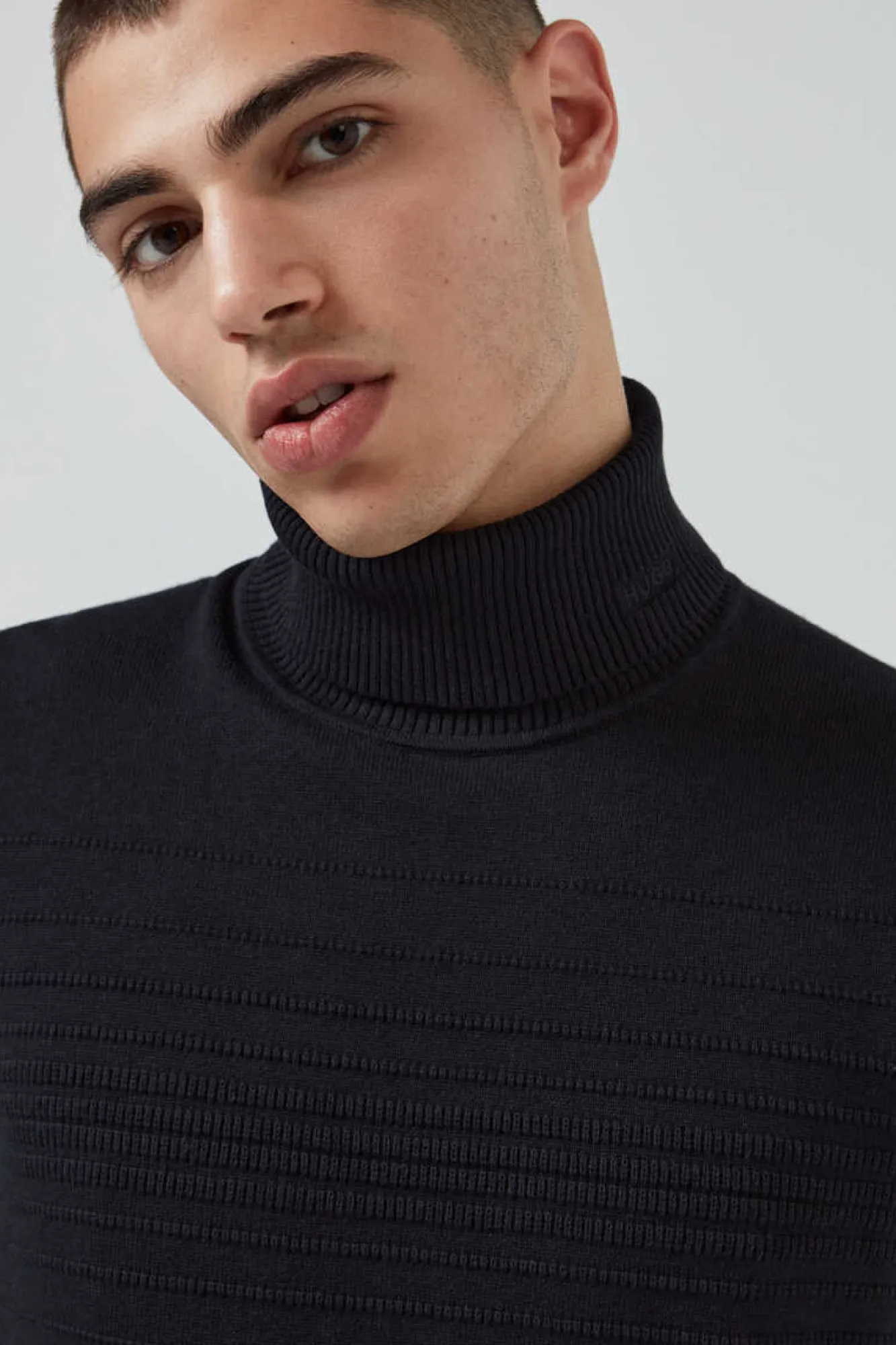 Camisola De Manga Comprida, Com Gola Dobrada, Logotipo Do Hugo Bordado, Ombro Frances, Mistura De Algodao E La Heritage