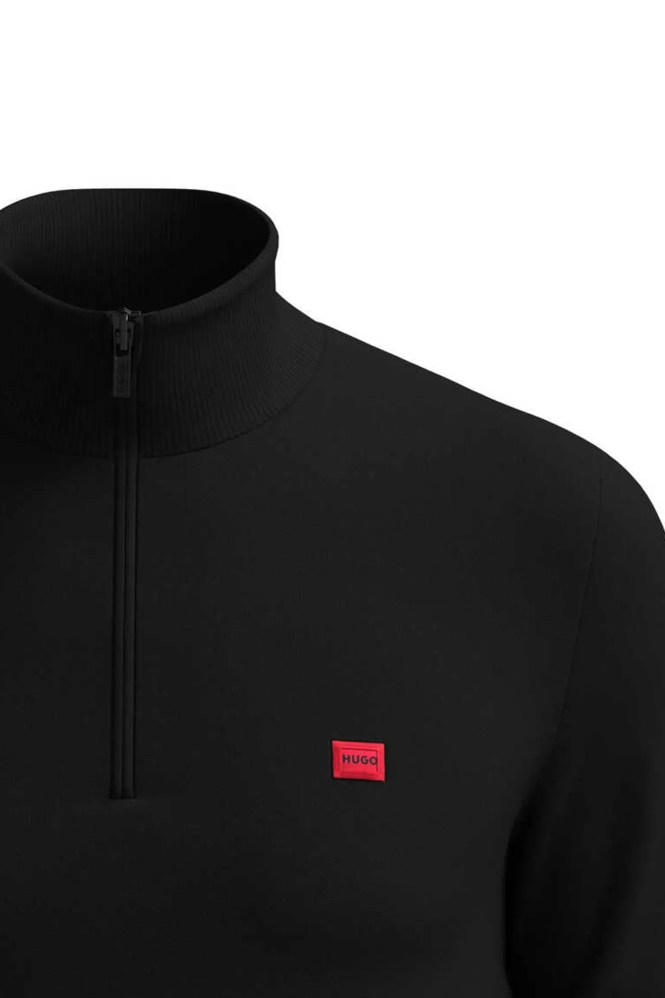 Camisola De Manga Comprida Com Fecho-Eclair E Logo Tecido Vermelho Hugo. Gola E Punhos Canelados. Ombro Frances E Material De Algodao Organico.