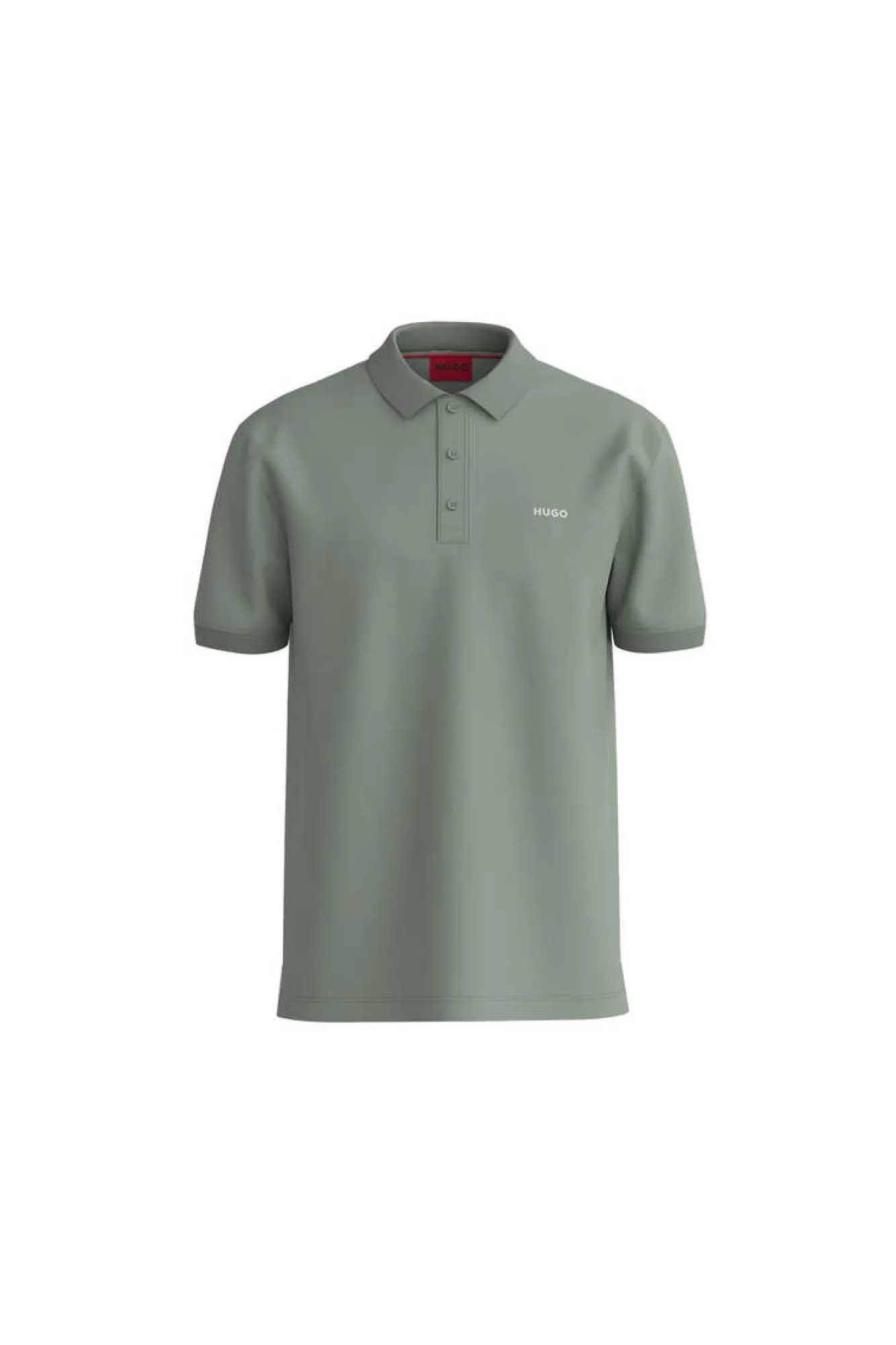 Polo De Manga Curta Com Fecho De Tres Botoes, Gola E Punhos De Malha Rasa. Logo Hugo Estampado No Peito. Algodao Feito Em Africa