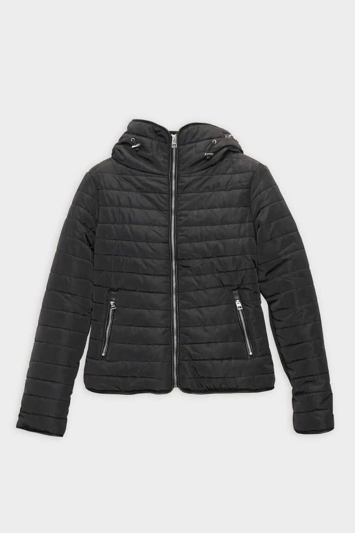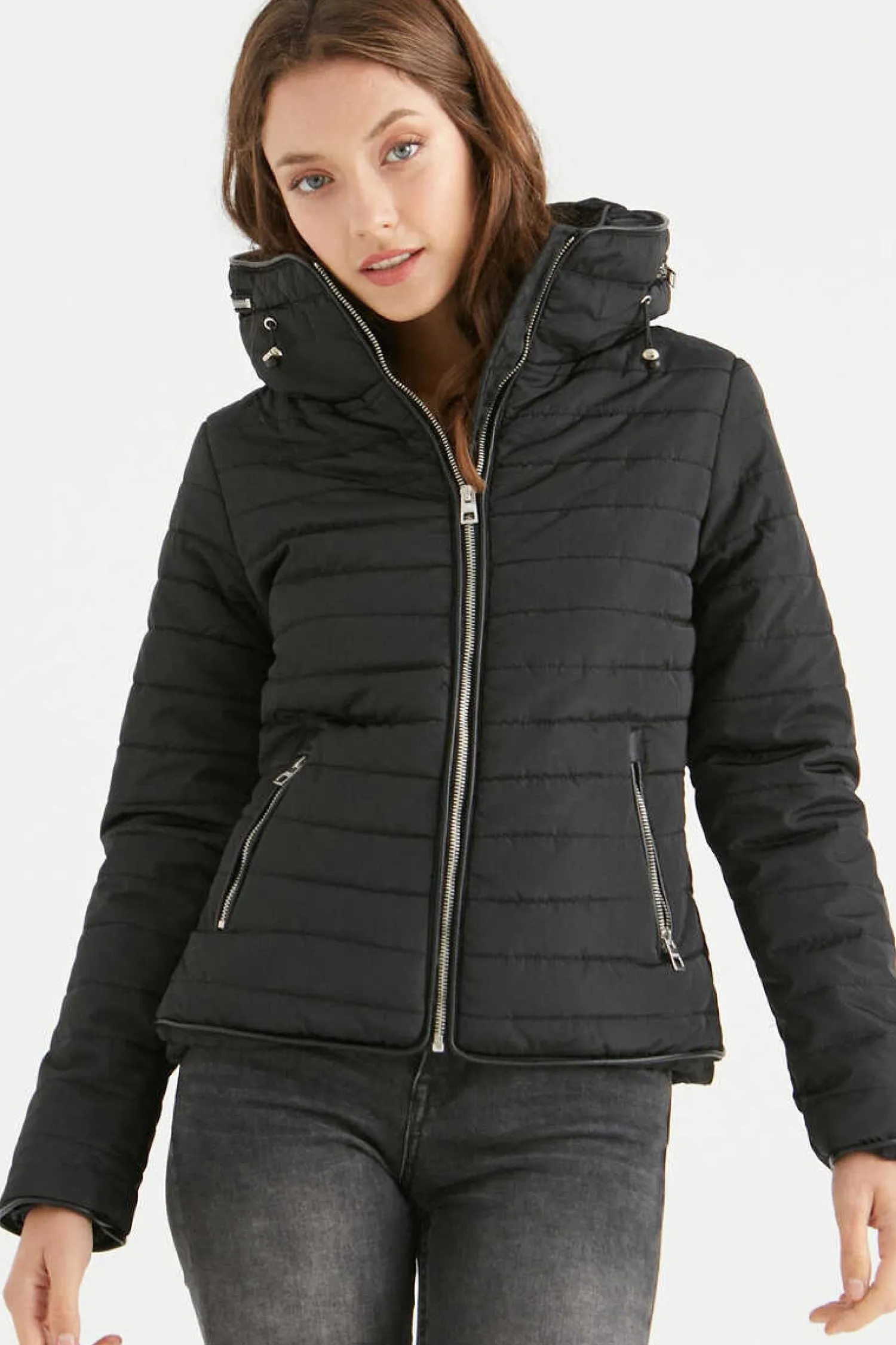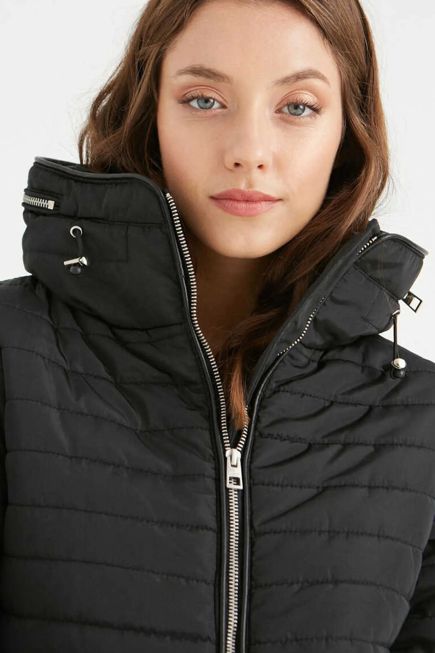 Sobretudo Slim Acolchoado, De Manga Comprida E Gola Alta, Com Capuz Com Bolso E Fecho-Eclair.