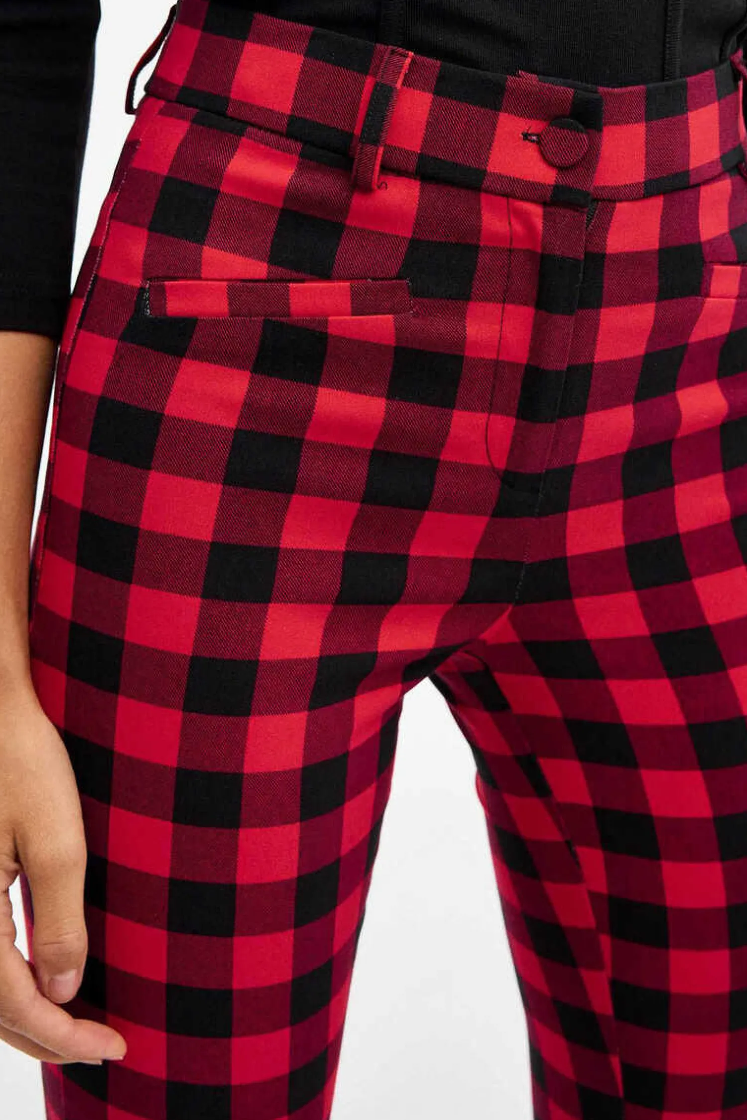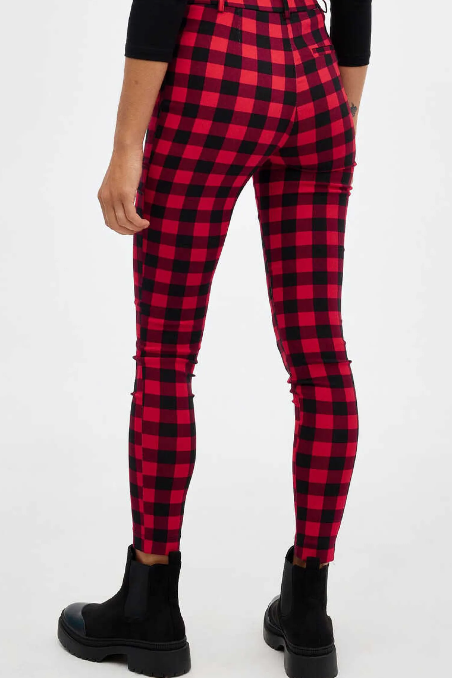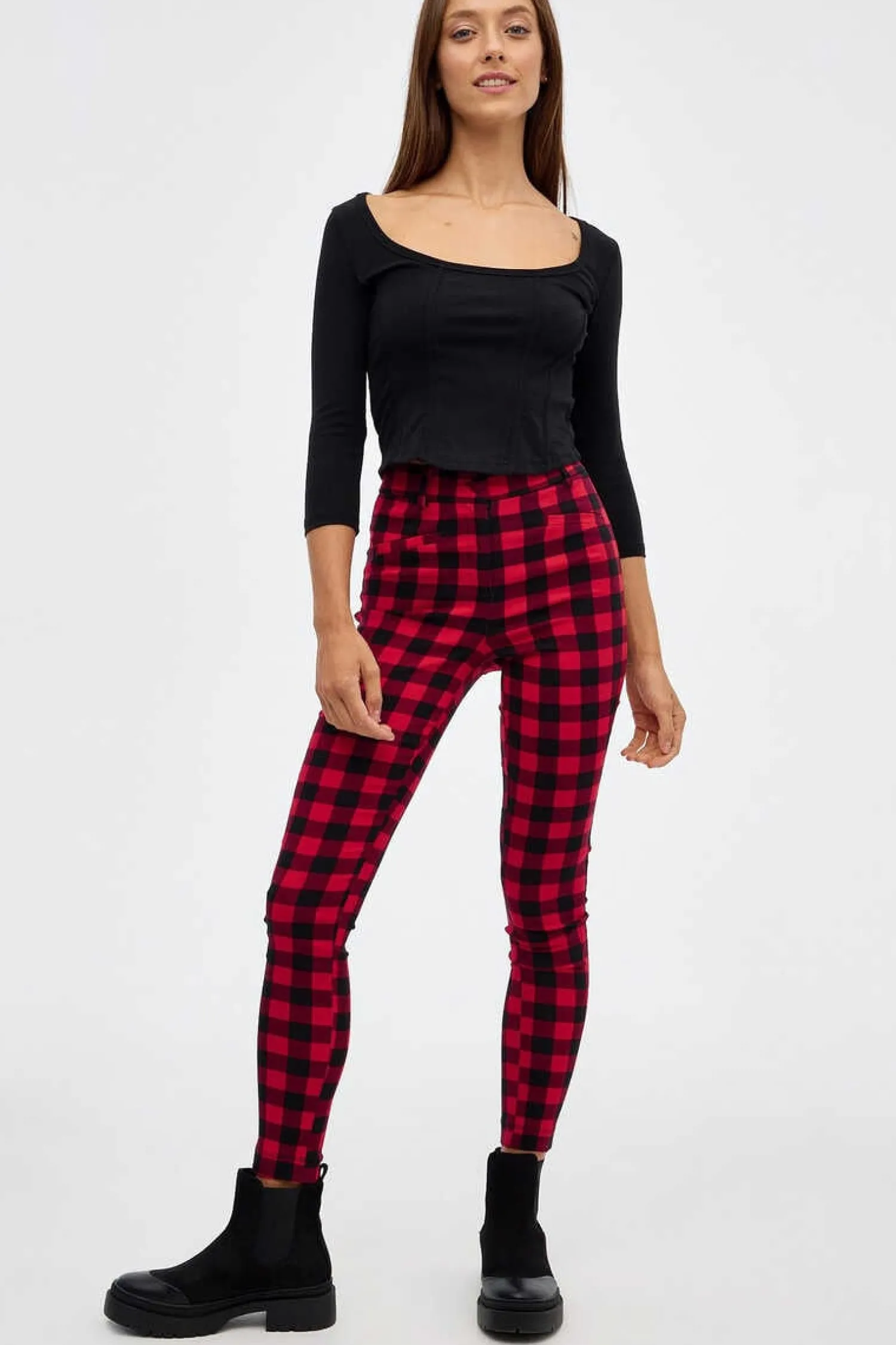 Leggings Superskinny De Cintura Subida Com Estampado Aos Quadrados E Fecho-Eclair Com Botao.