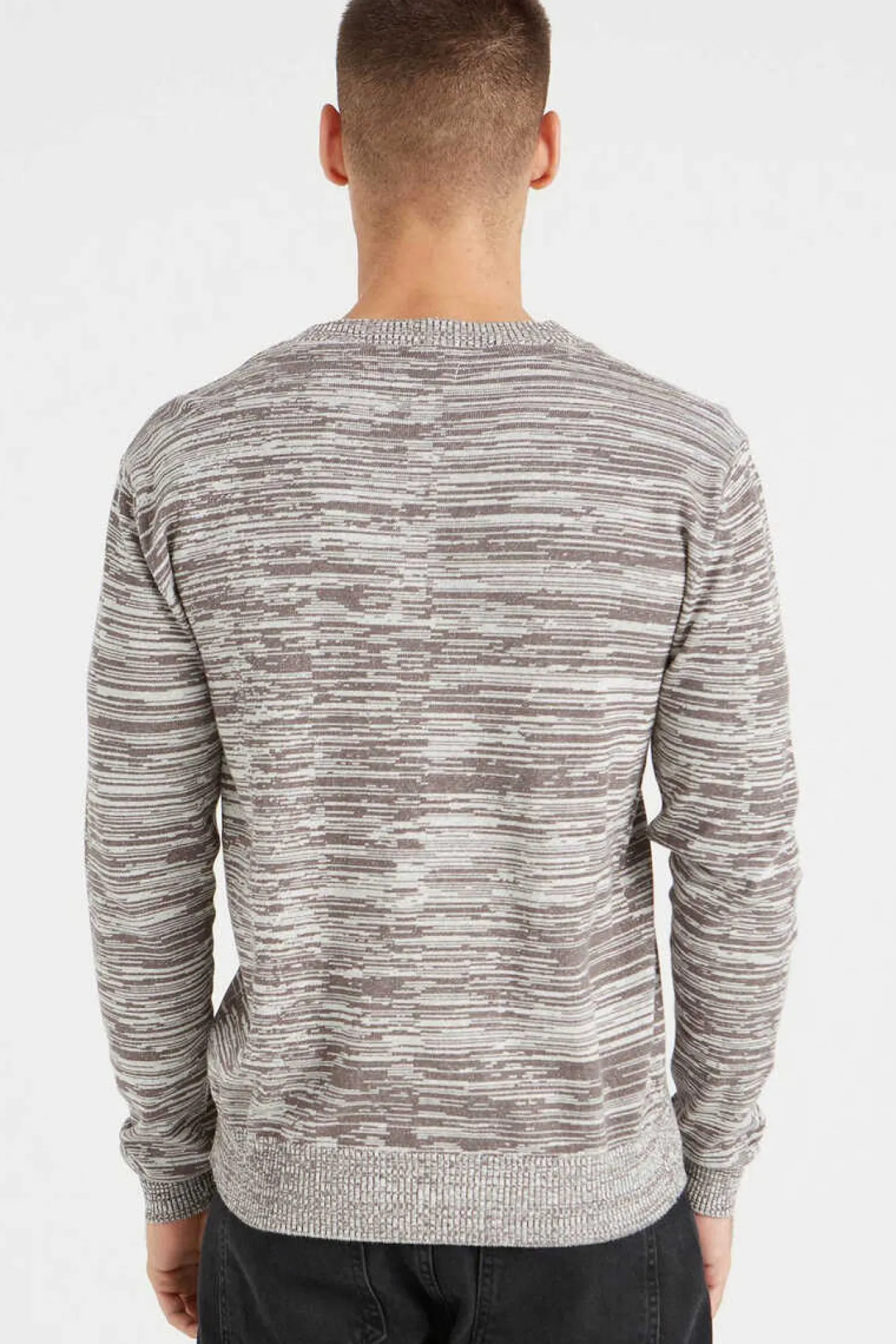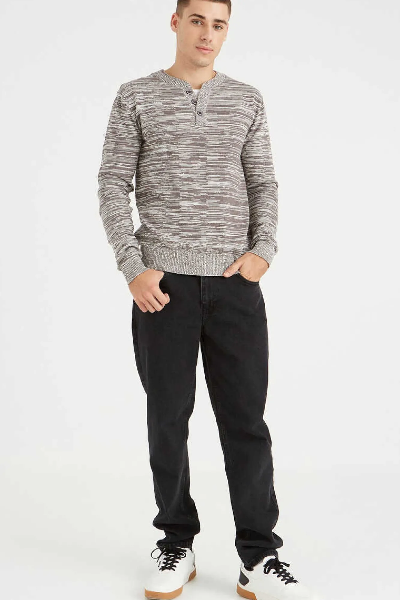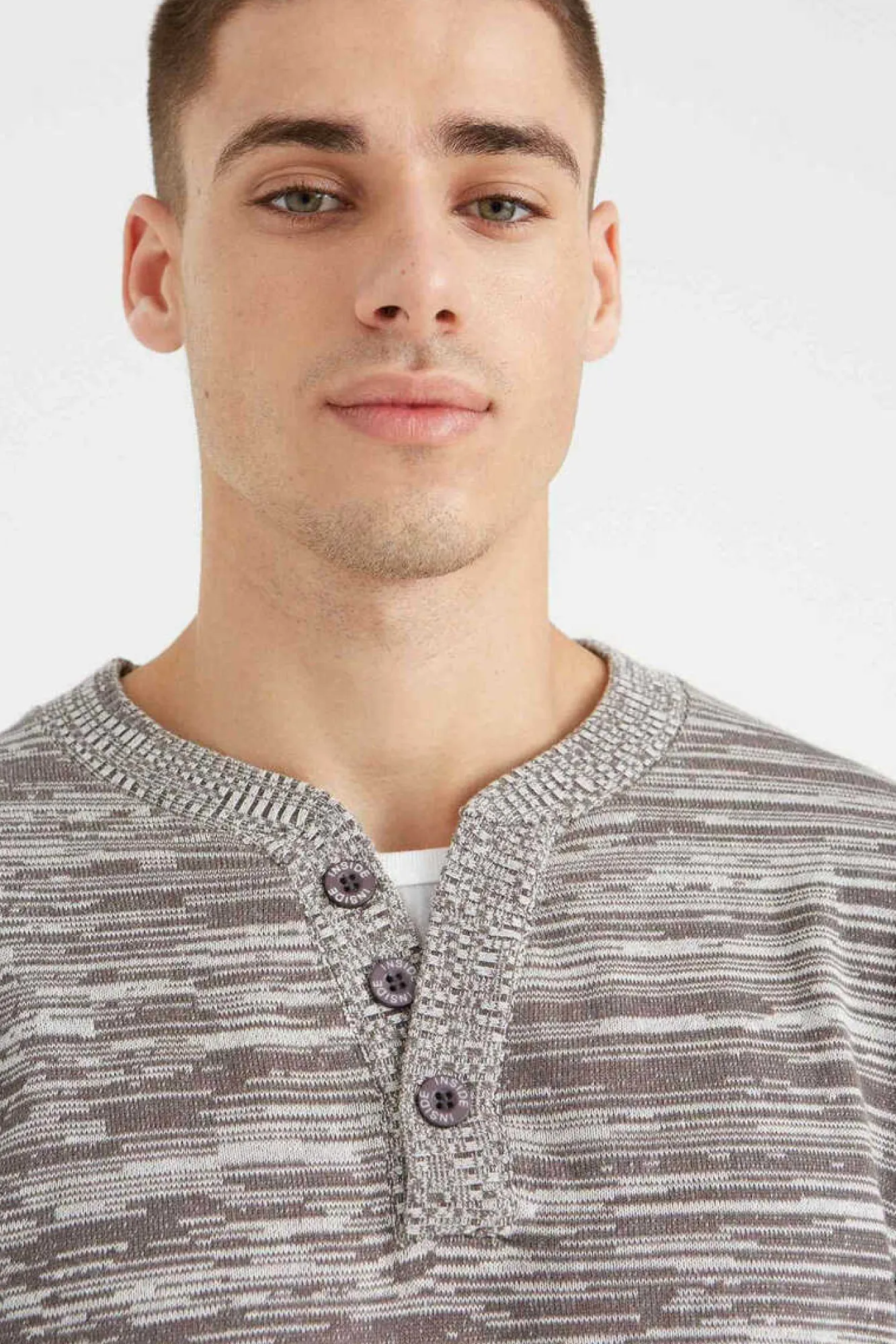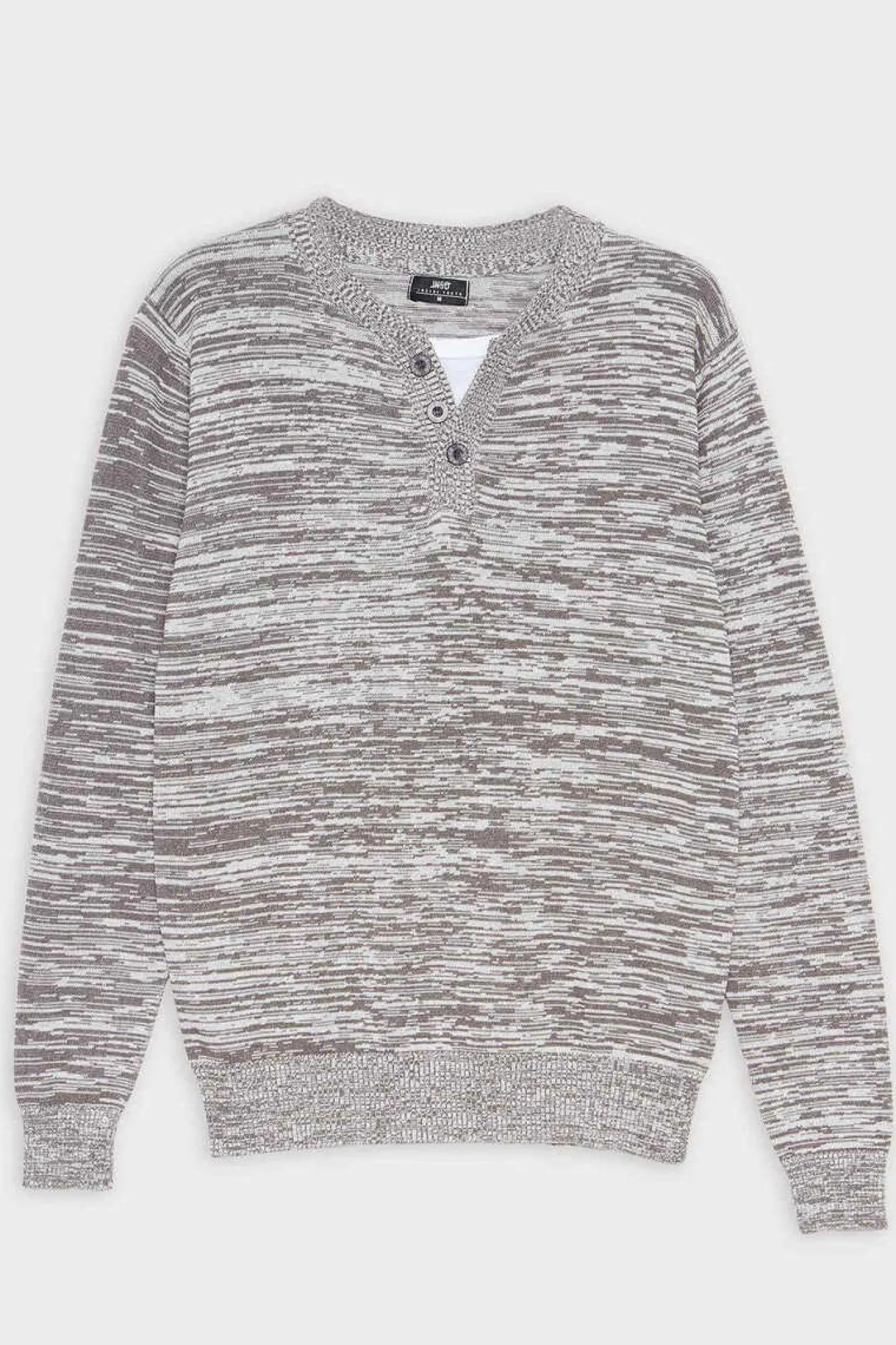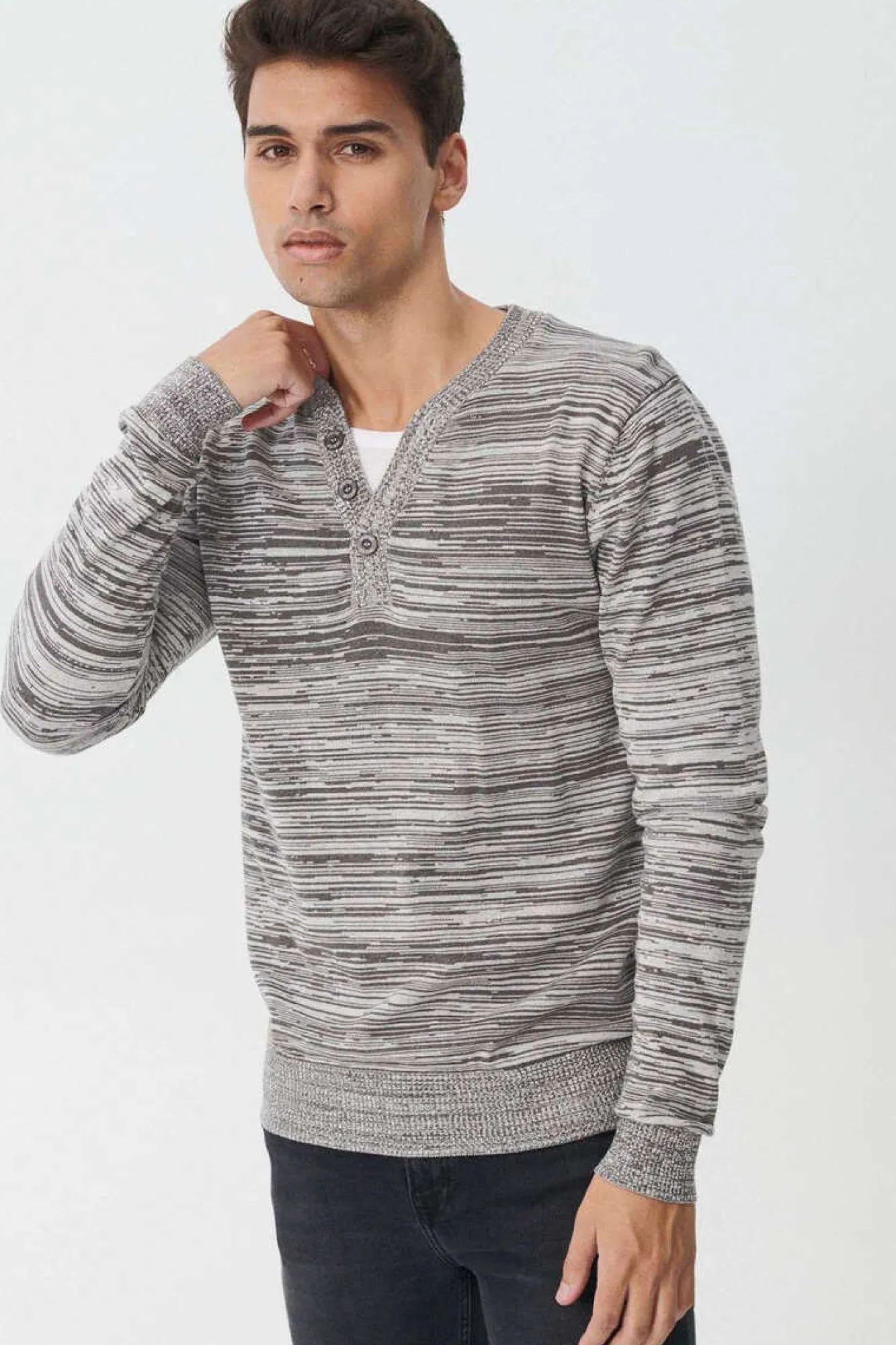 Camisola Regular De Manga Comprida E Gola Em Bico Com Botoes E Tecido Jaspeado.