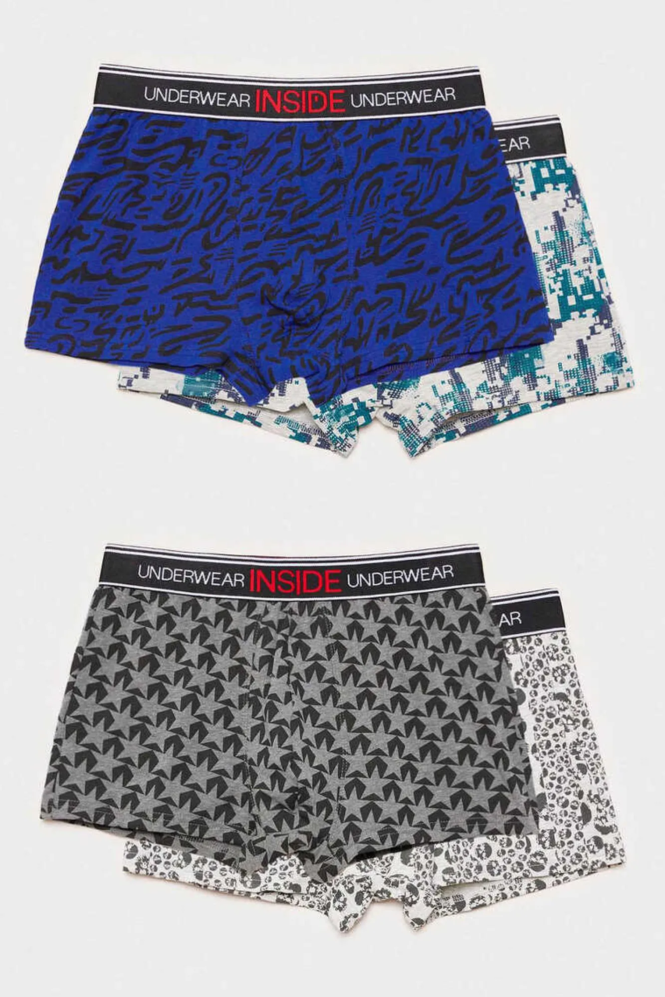 Pack De 4 Boxers Em Varios Estampados E Cintura Elastica.