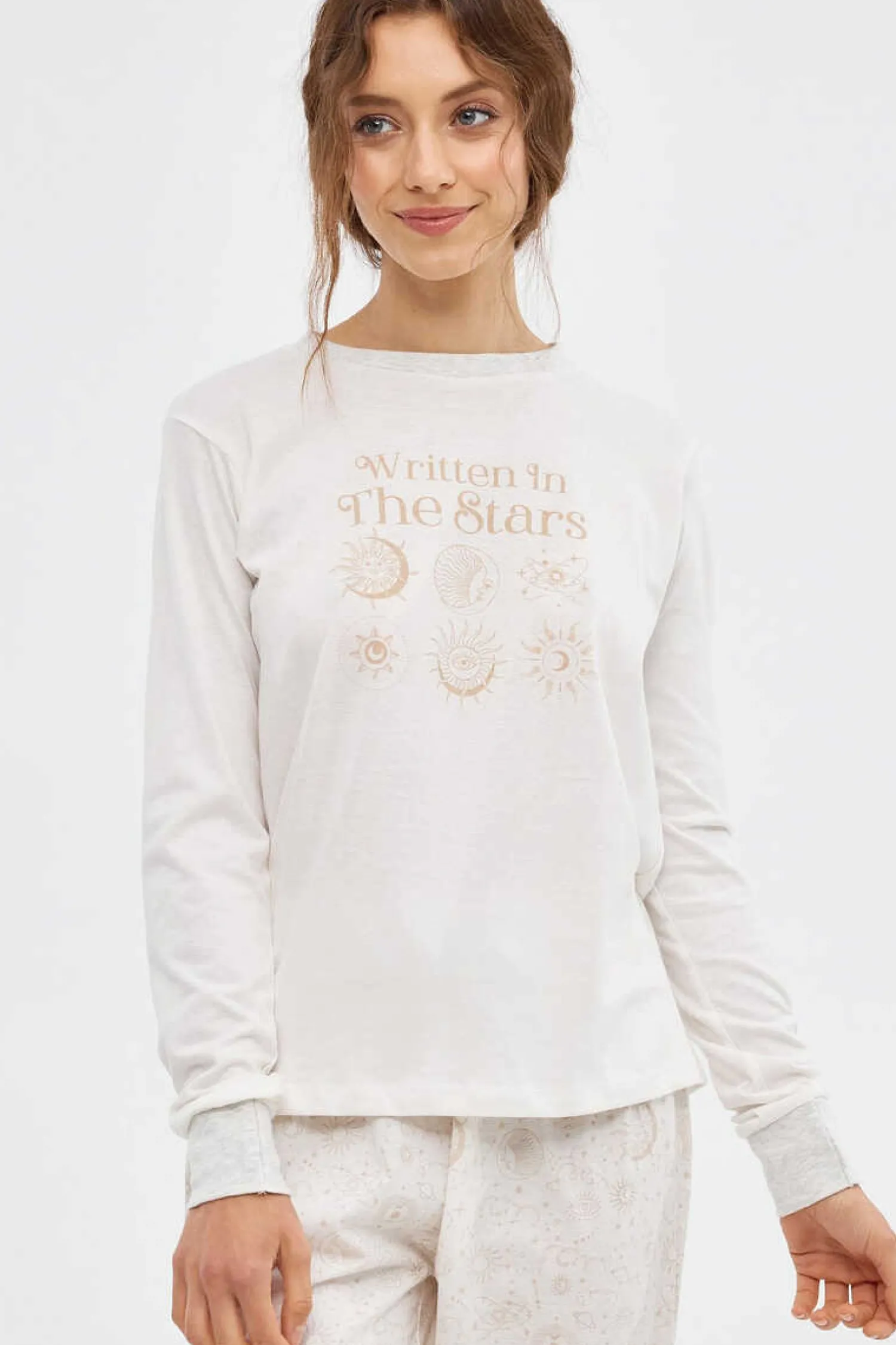 Conjunto De Pijama De T-Shirt E Calcas Com Cintura Elastica E Estampado Grafico.