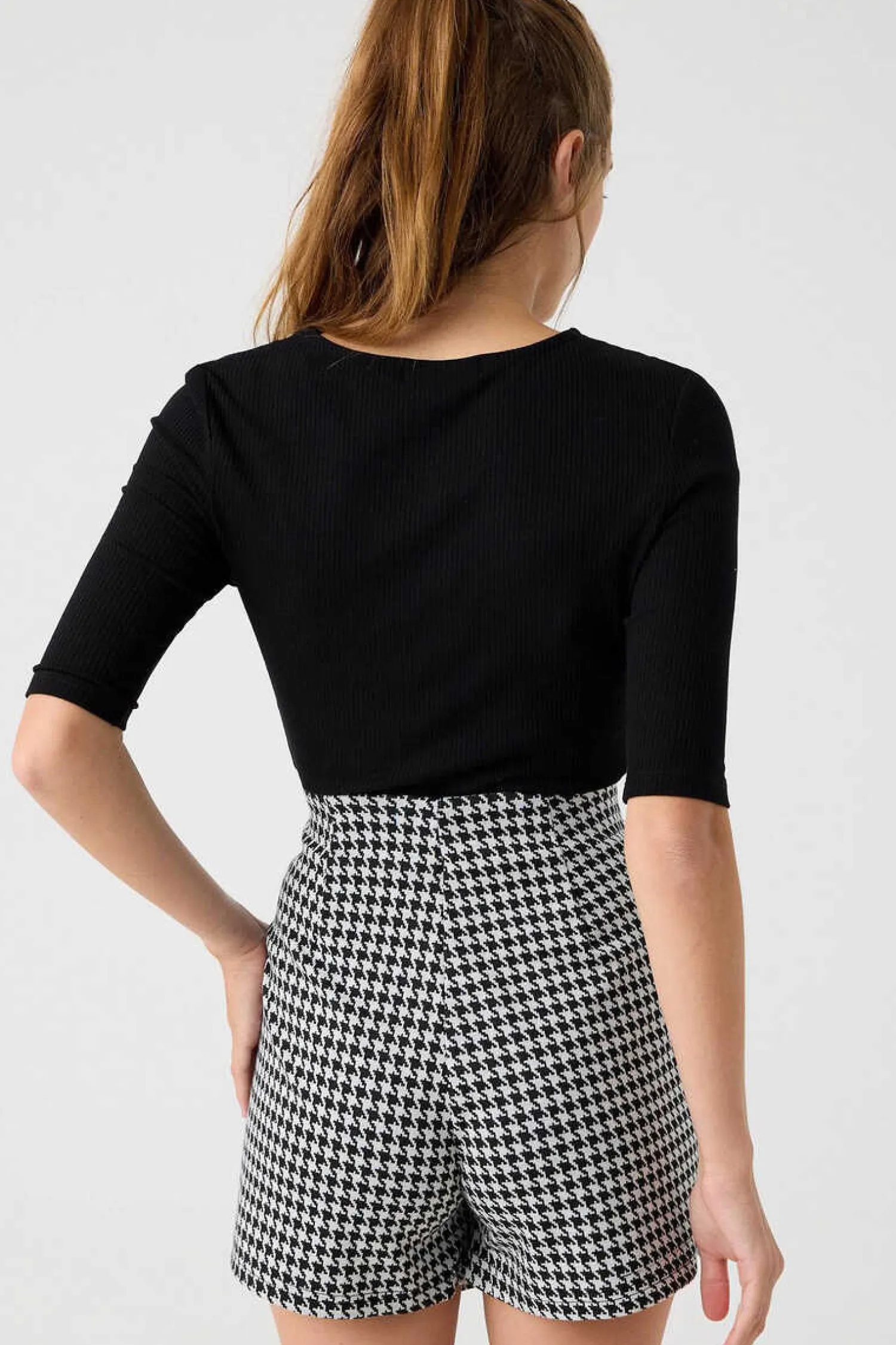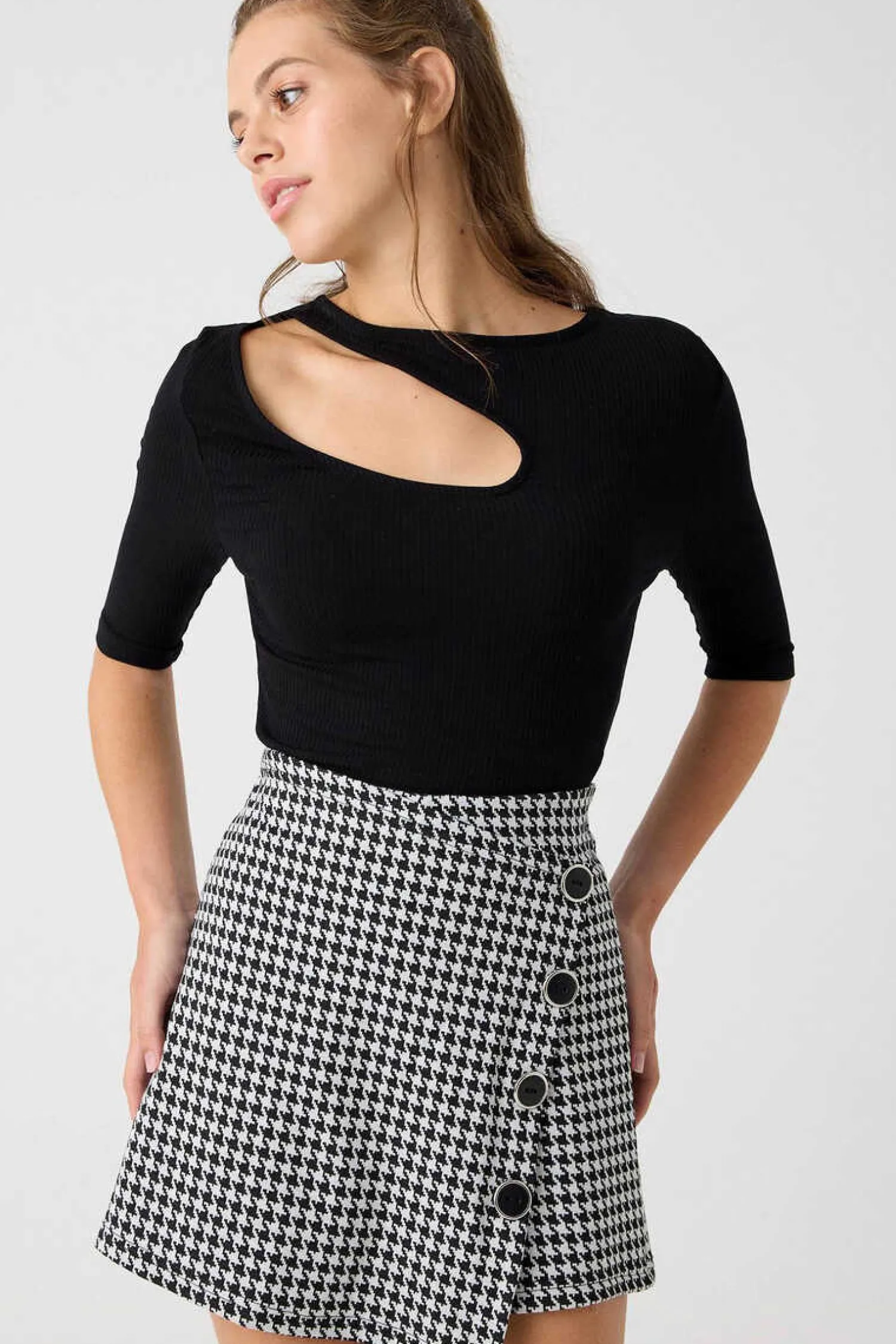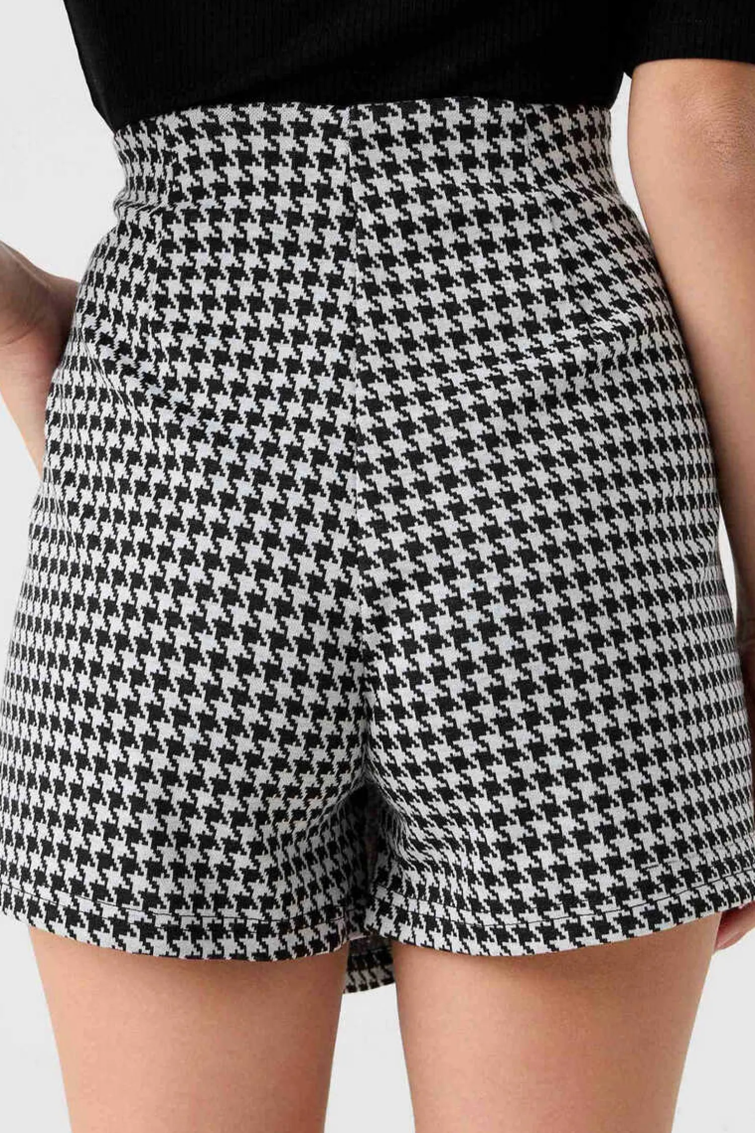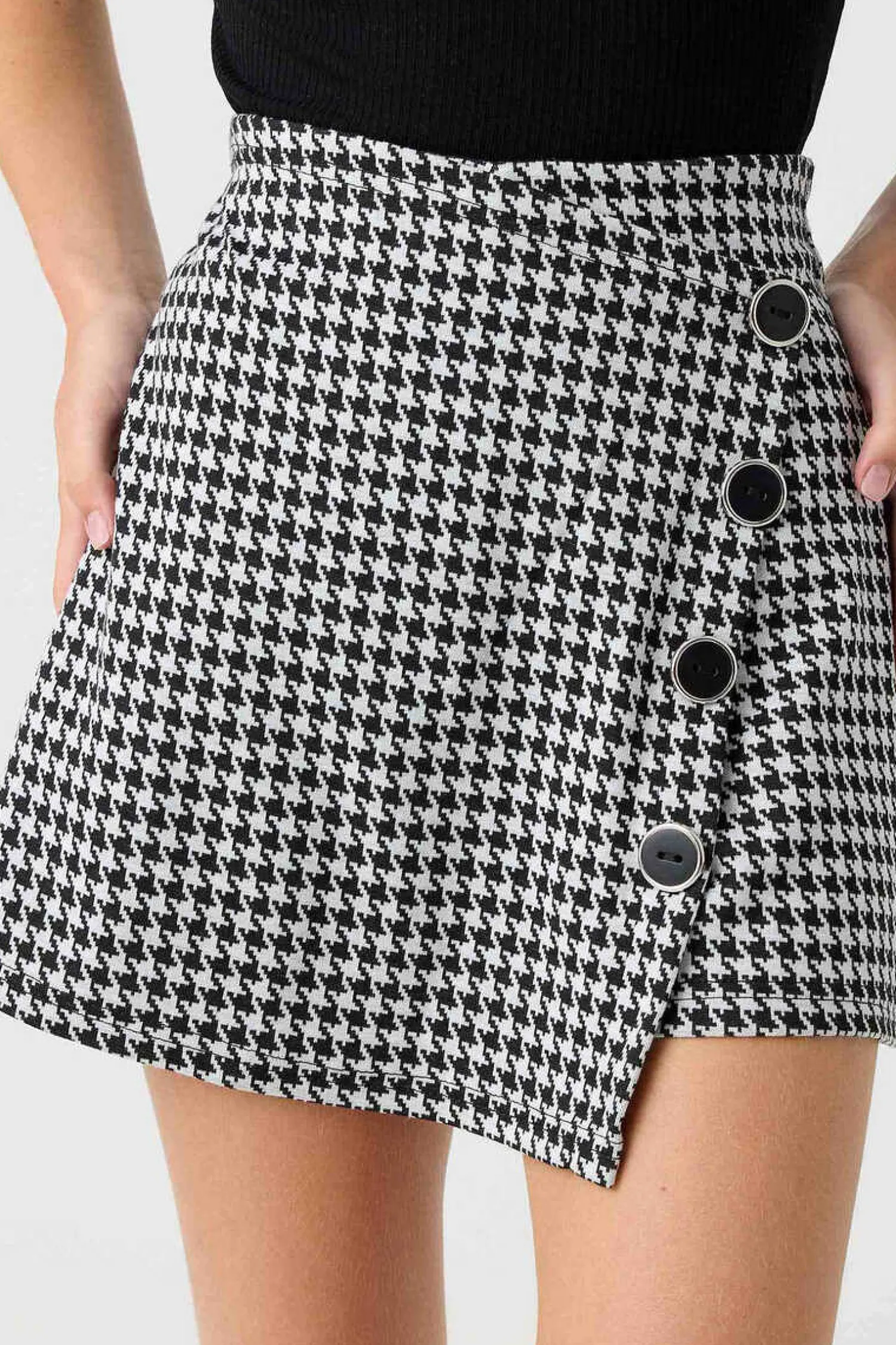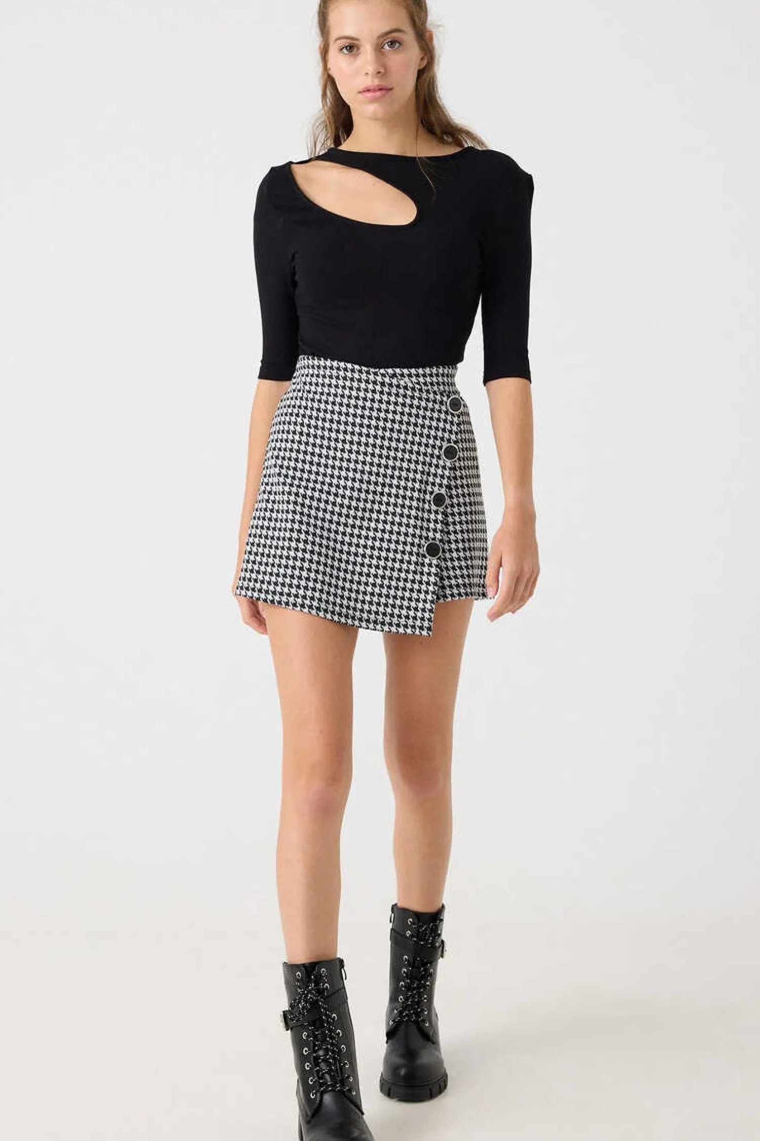 Saia-Calca De Cintura Subida Com Fecho De Botoes De Tecido Jaquard De Estampado Vichy.