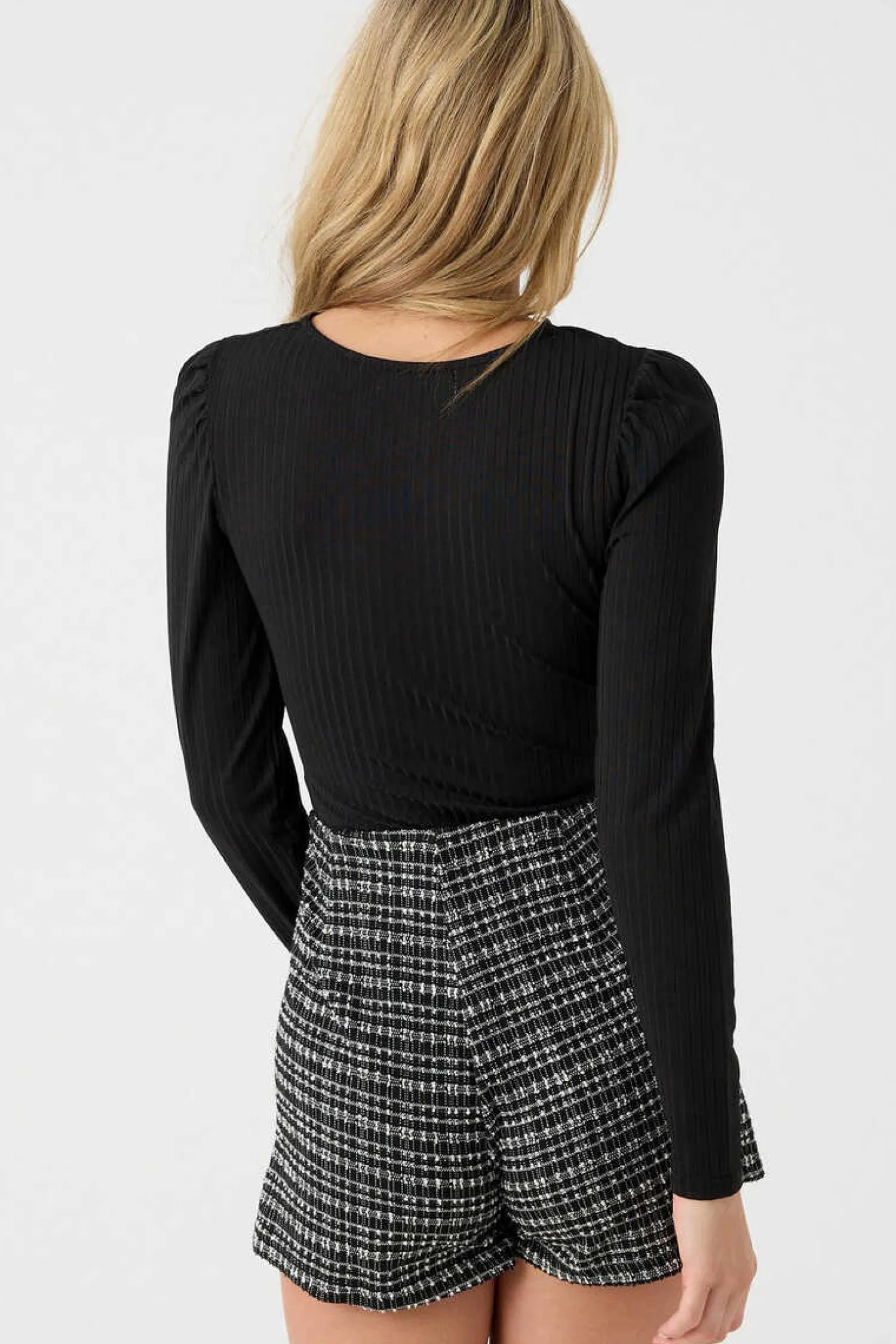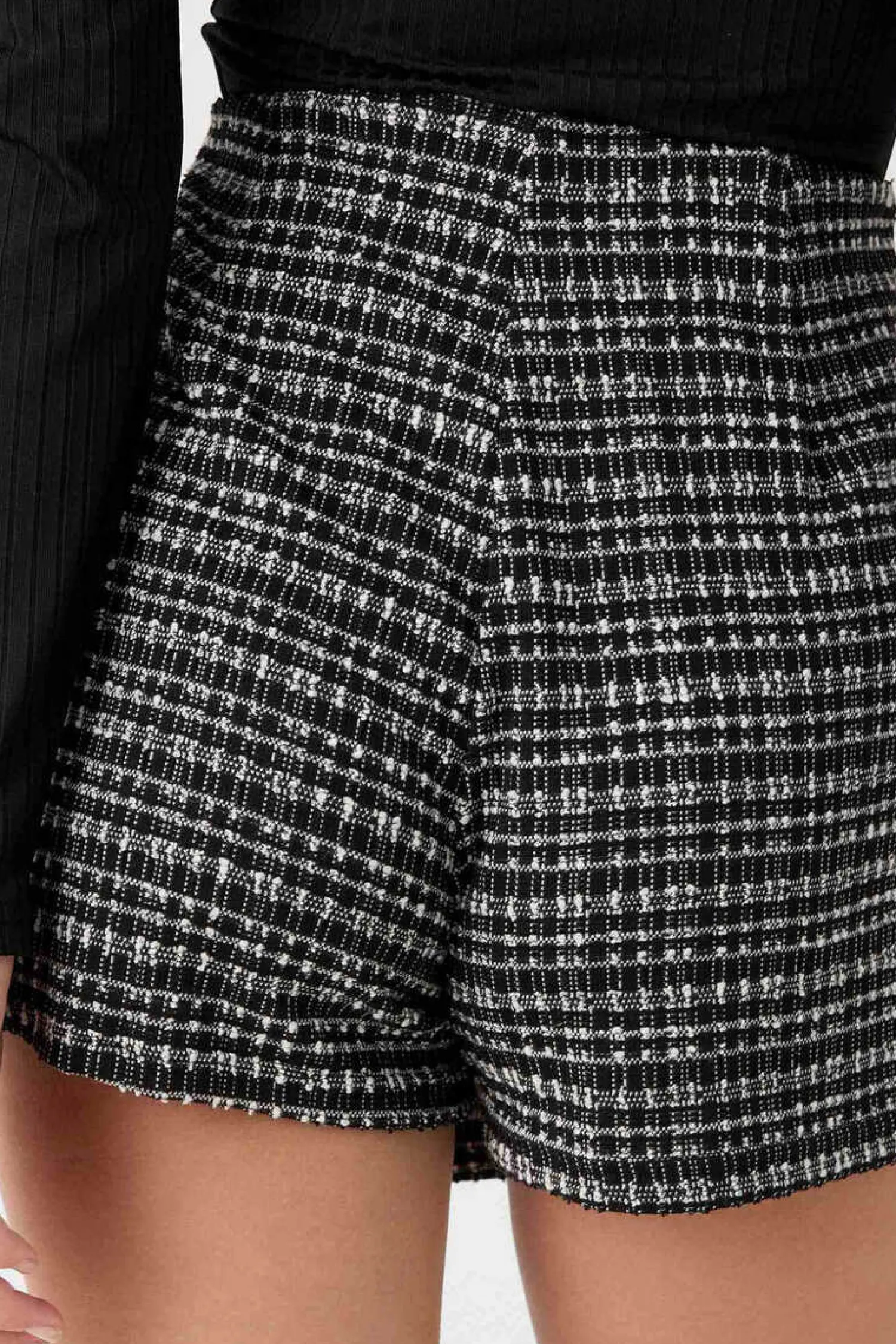 Saia-Calca De Cintura Subida Com Fecho De Botoes De Tecido Jaquard De Estampado De Quadrados.