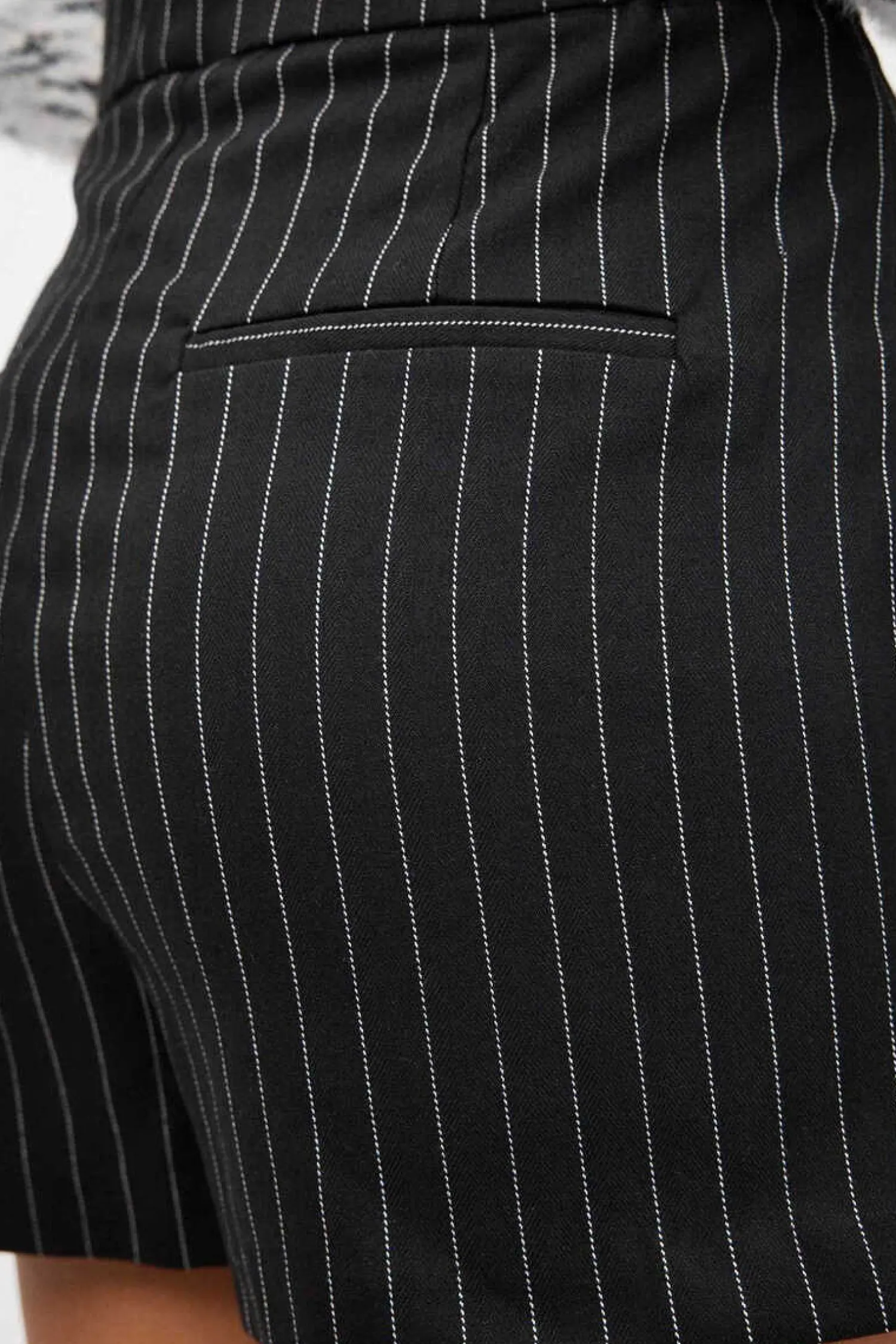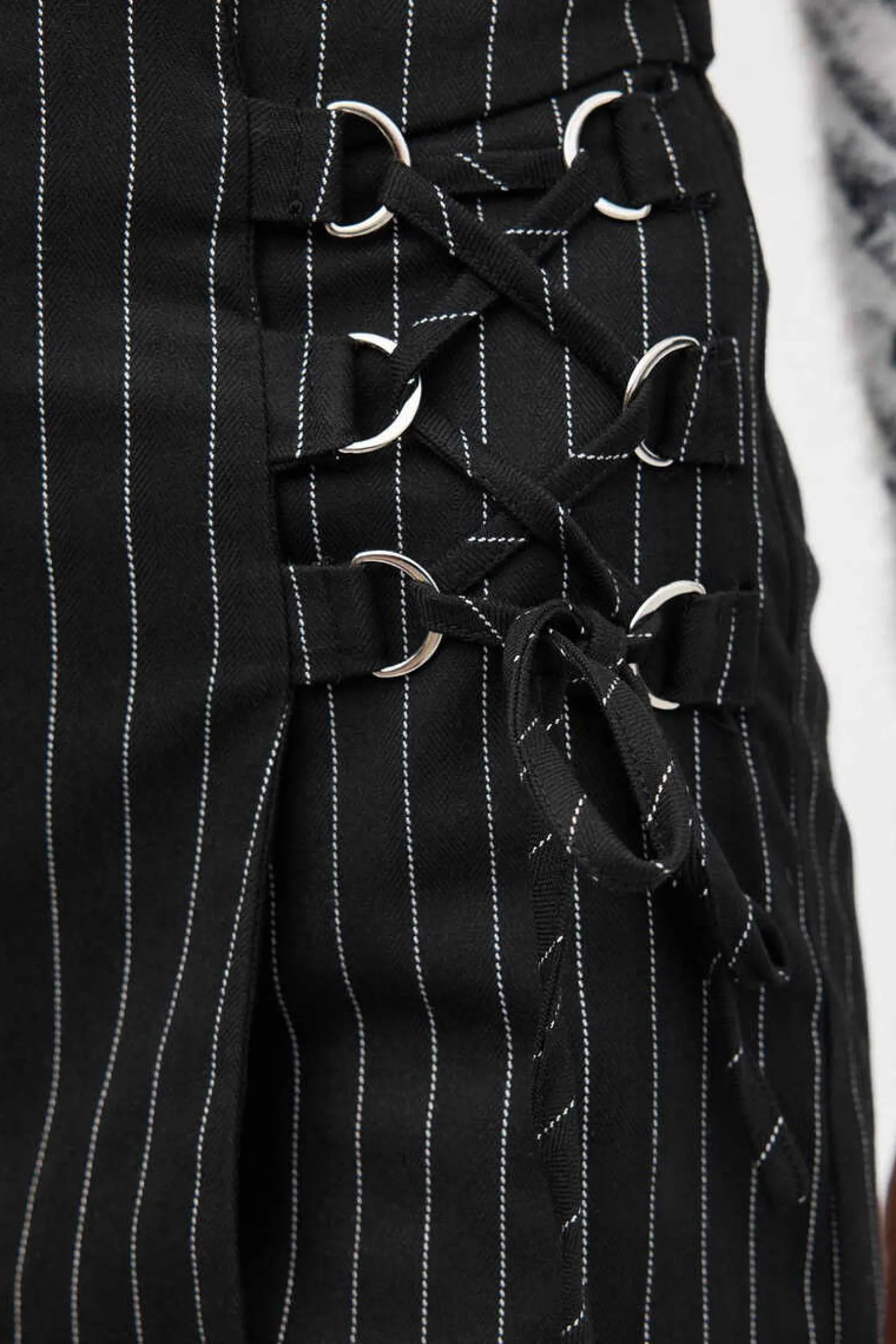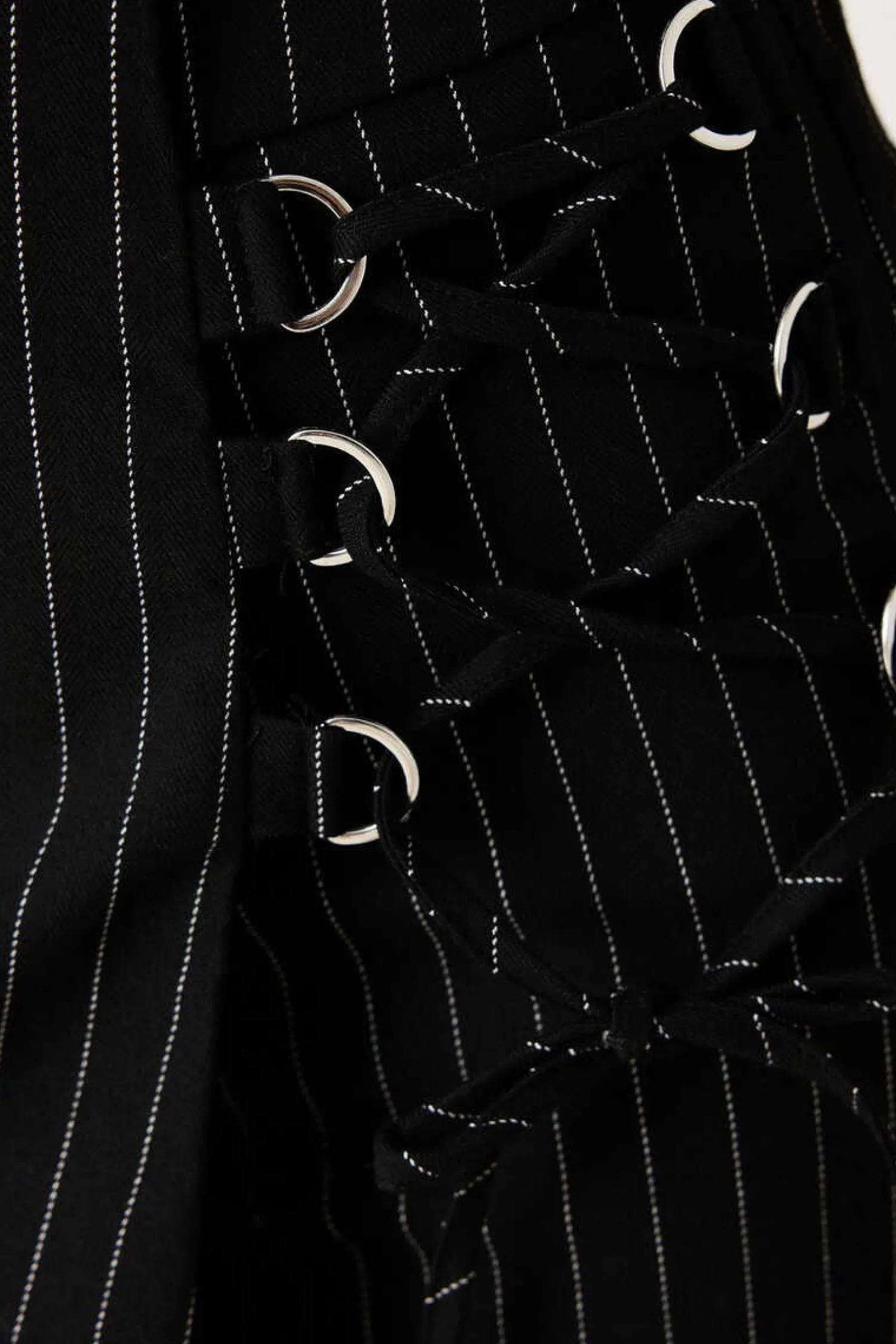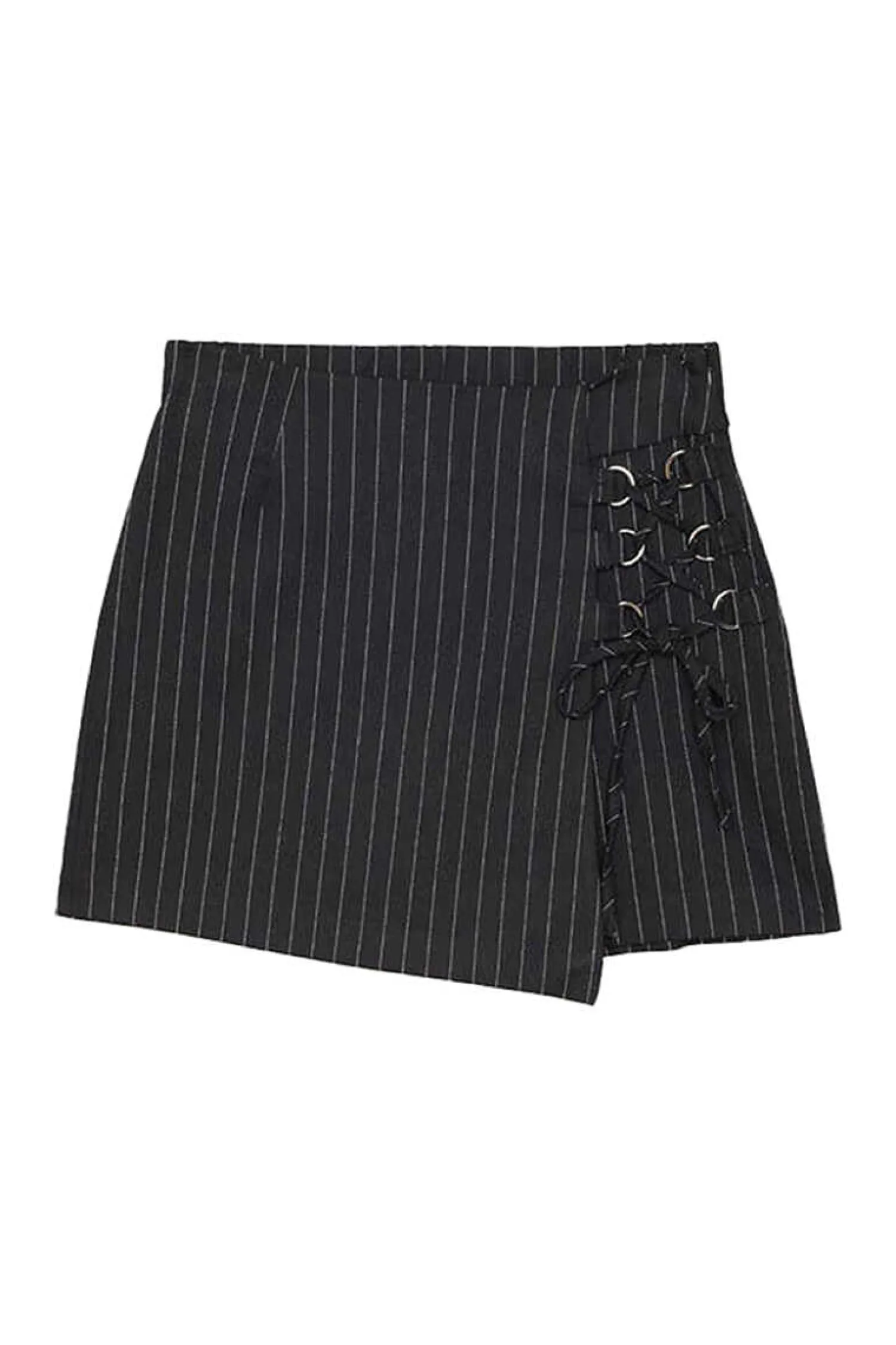 Saia-Calca Ajustada Com Abertura E Lacos. Estampado As Riscas.