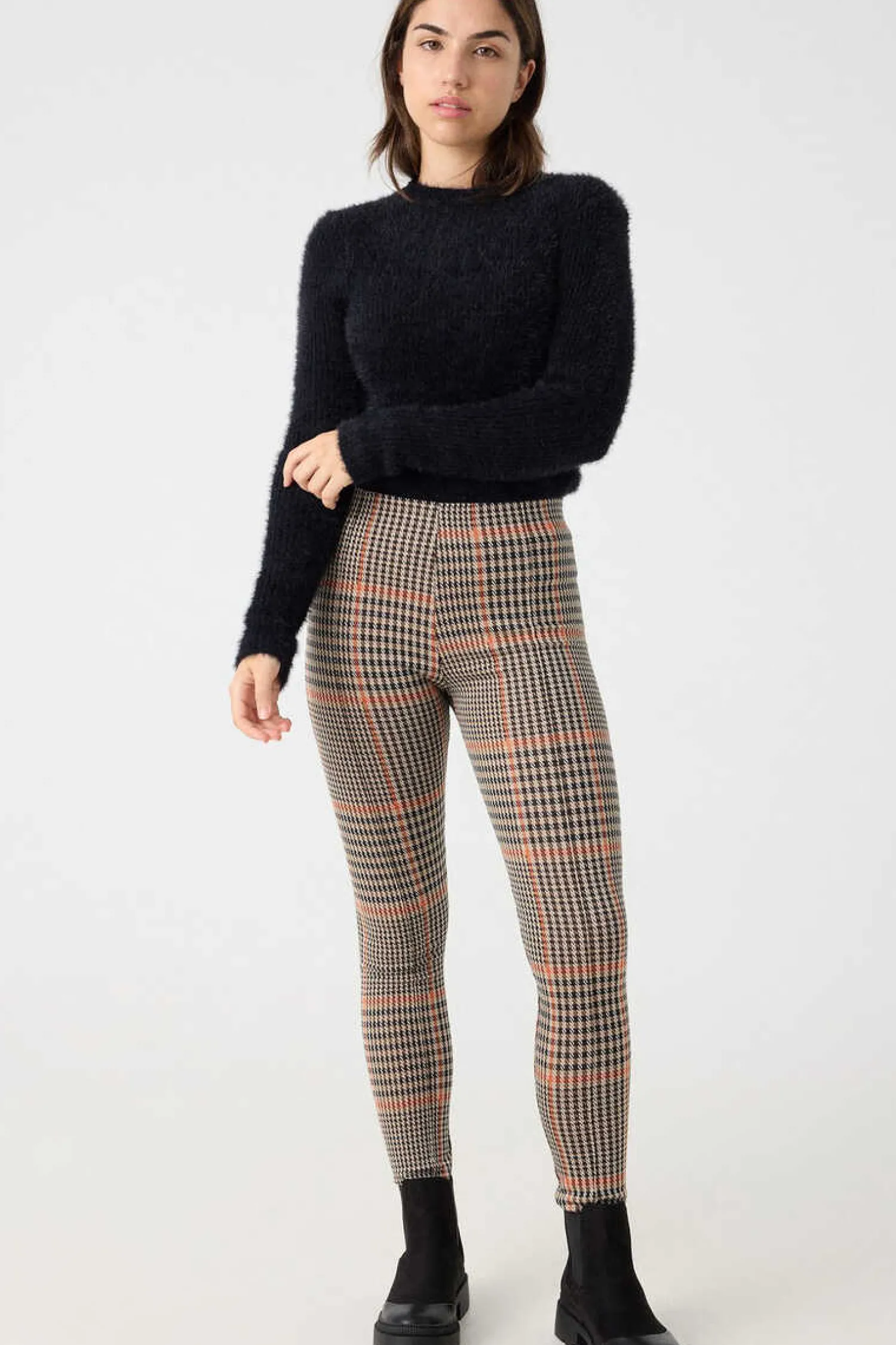 Camisola Slim De Efeito Pelo De Manga Comprida E Gola Redondo Em Varias Cores.