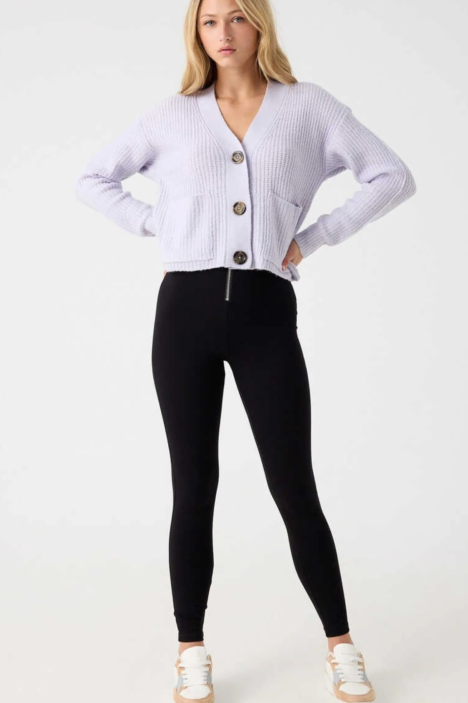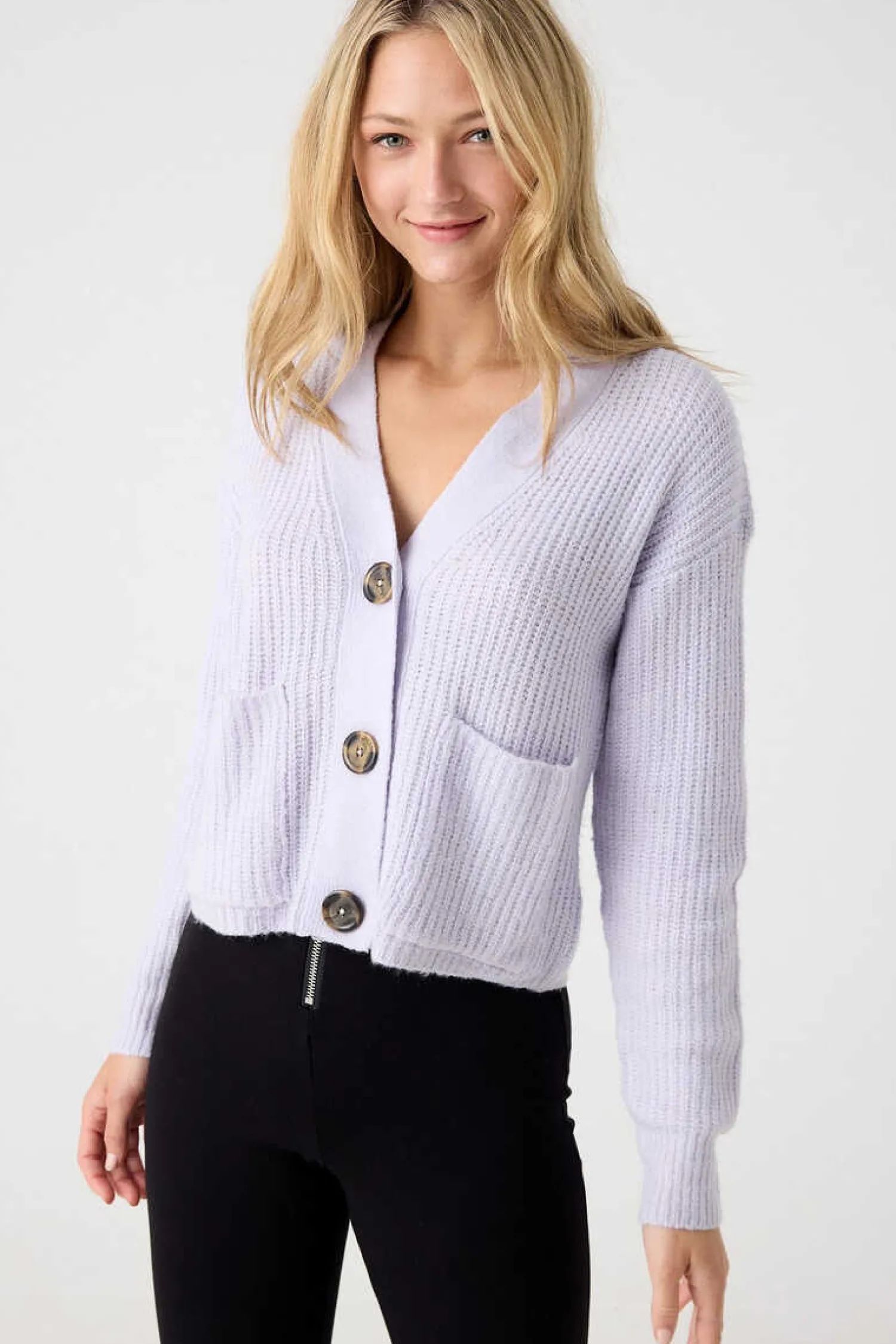 Casaco De Malha Regular De Manga Comprida E Gola Em Bico Com Fecho De Botoes Na Parte Da Frente E Bolsos.