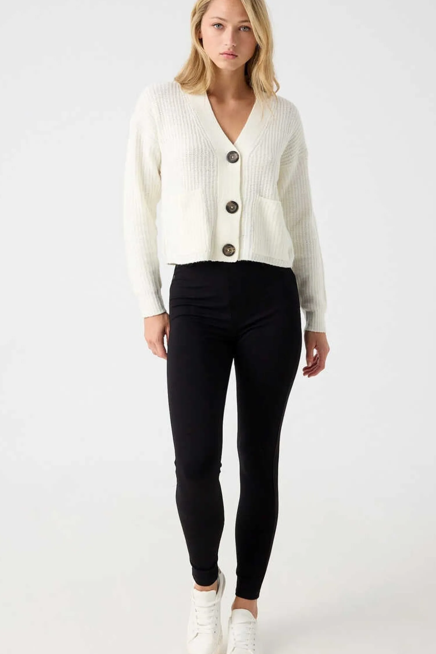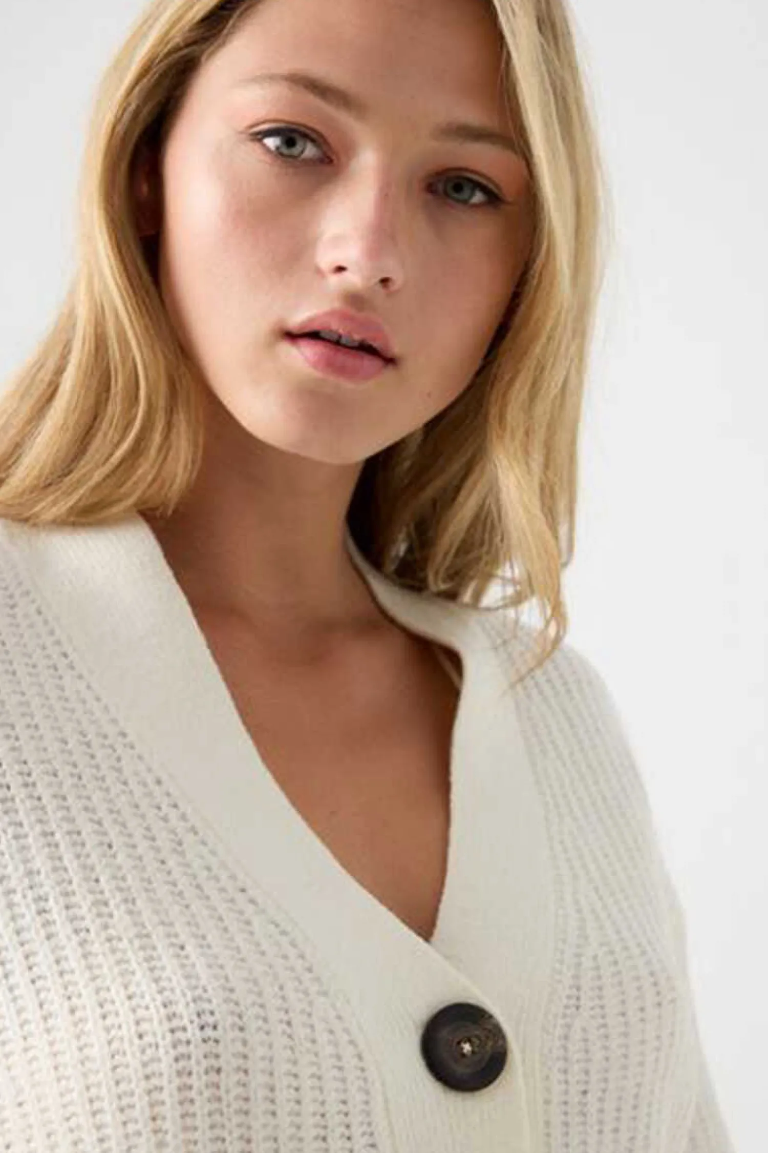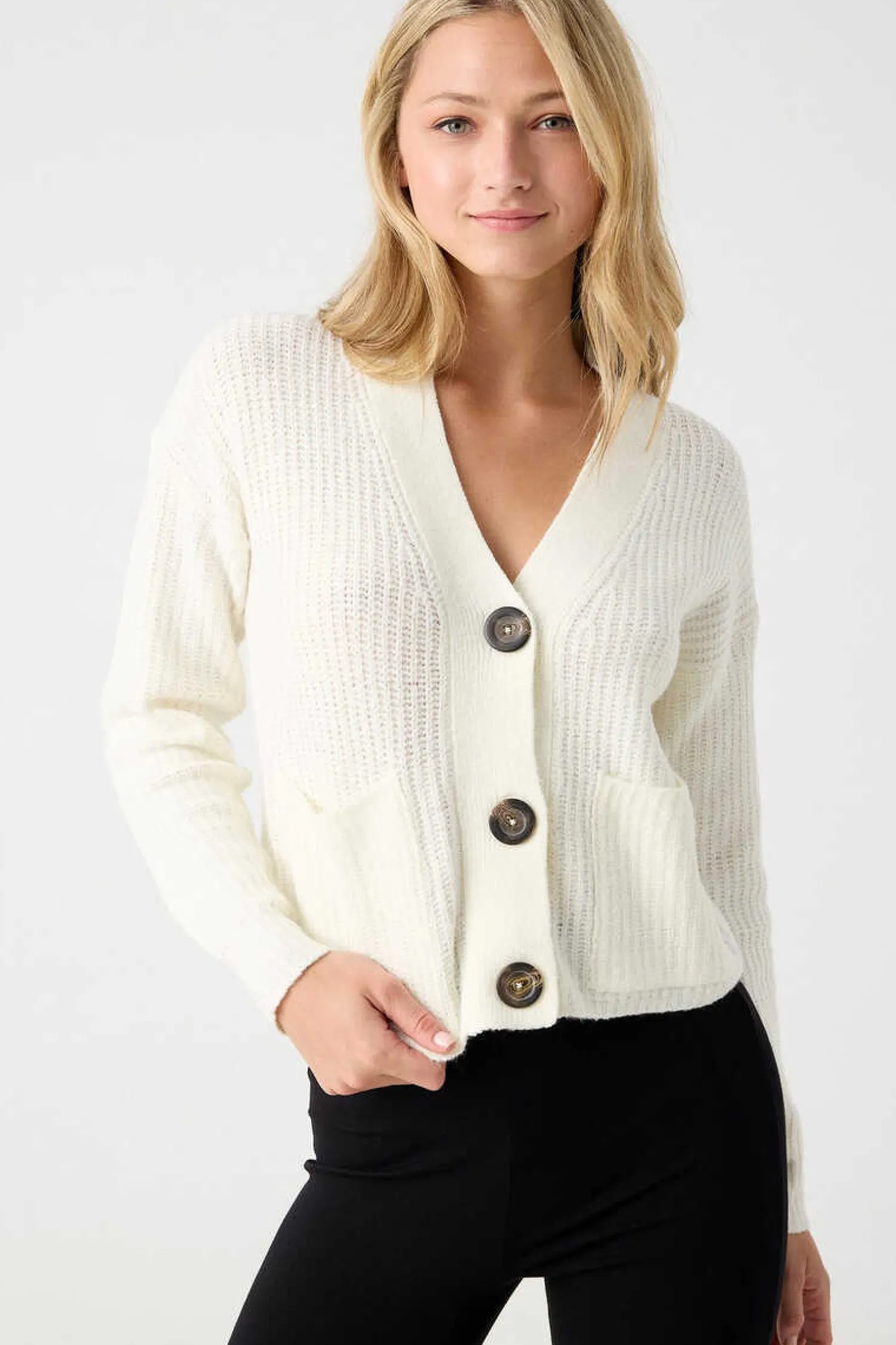 Casaco De Malha Regular De Manga Comprida E Gola Em Bico Com Fecho De Botoes Na Parte Da Frente E Bolsos.
