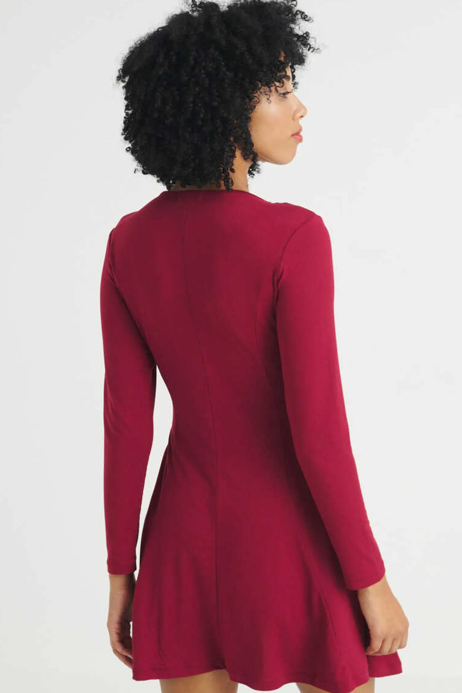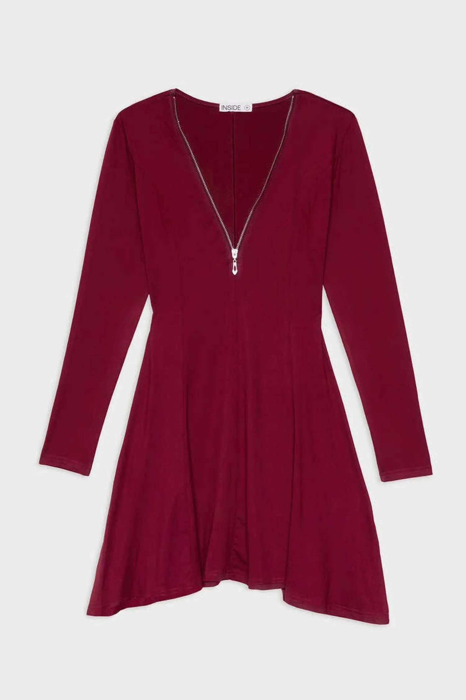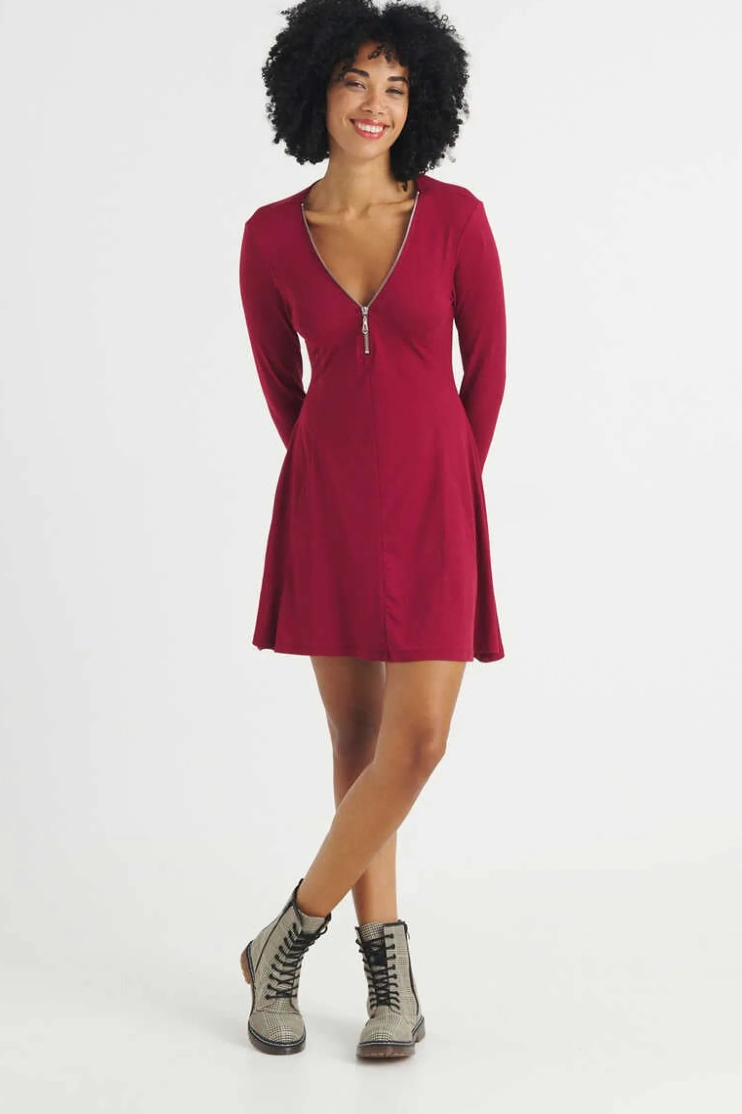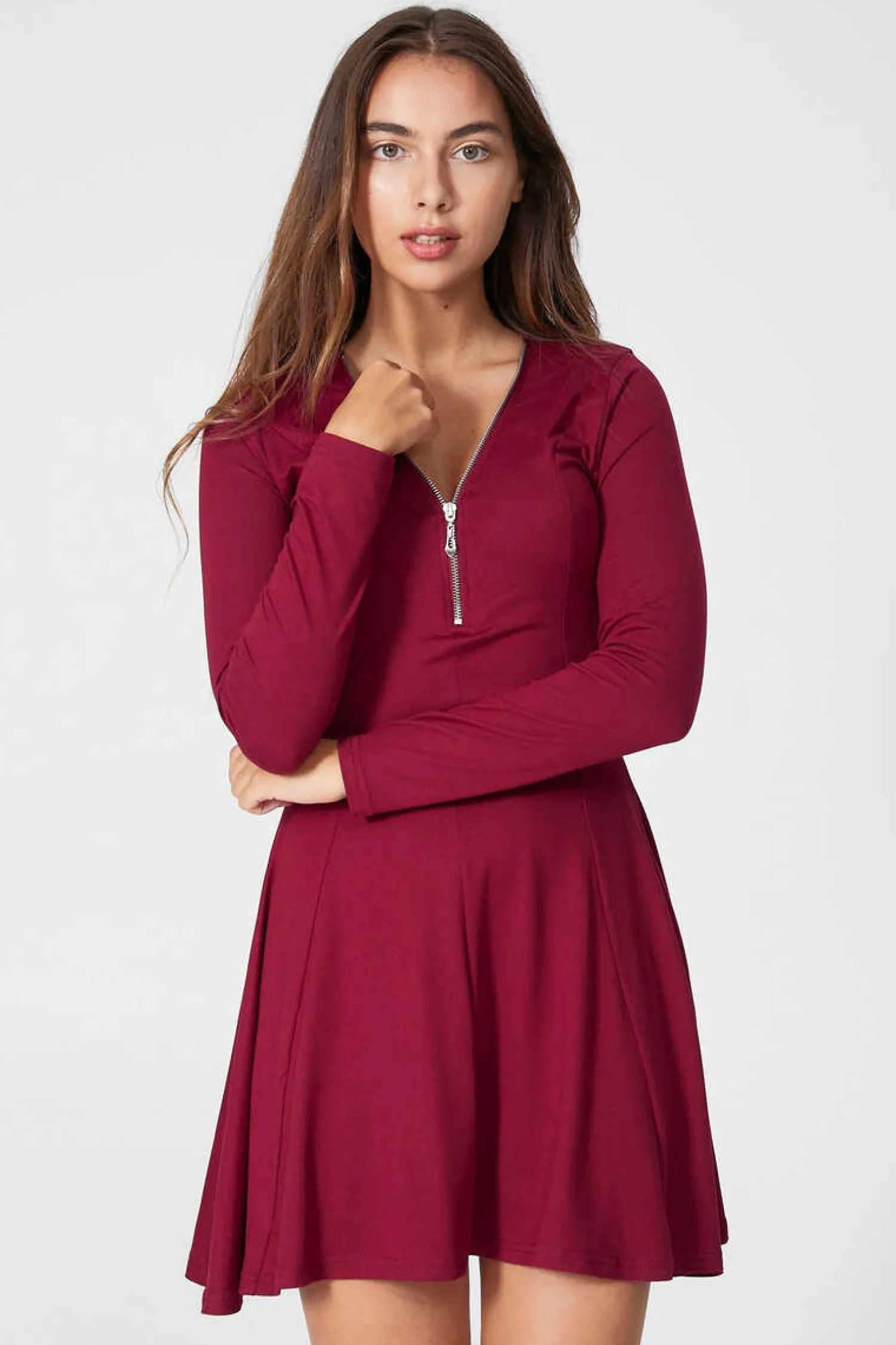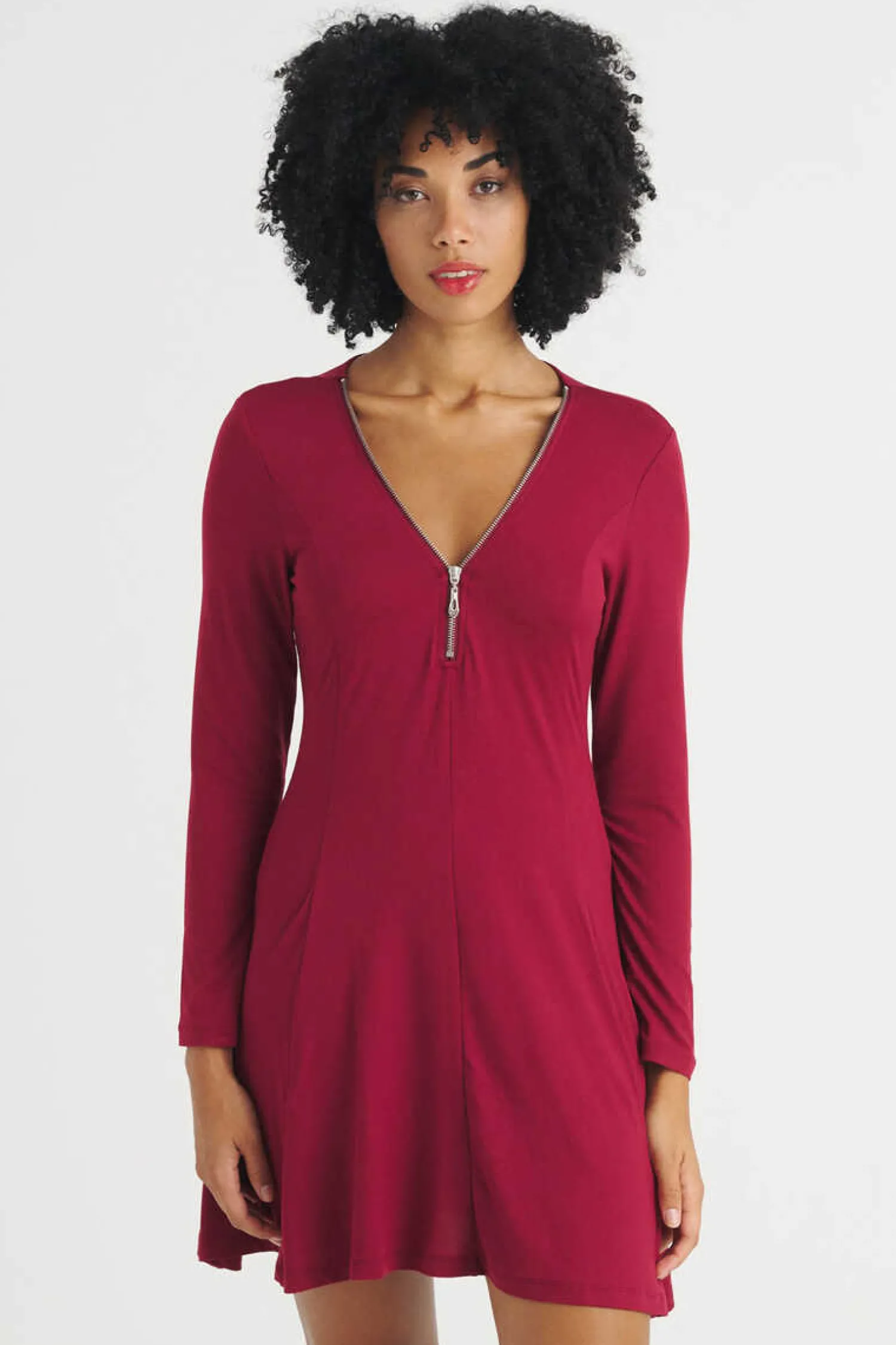 Vestido De Manga Comprida Em Tecido De Algodao. Detalhe De Fecho-Eclair Na Gola E Decote Em Bico. Disponivel Em Varias Cores.