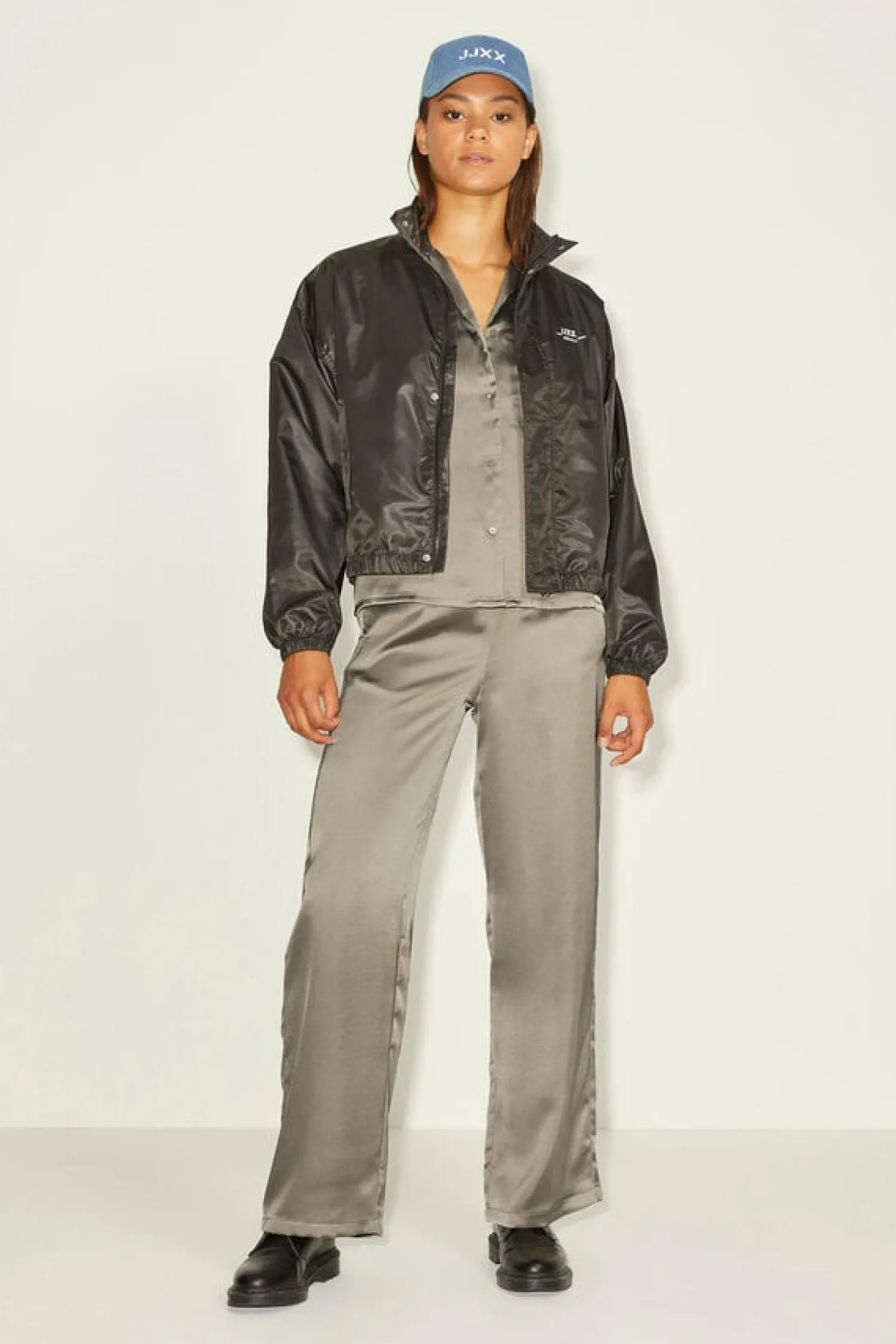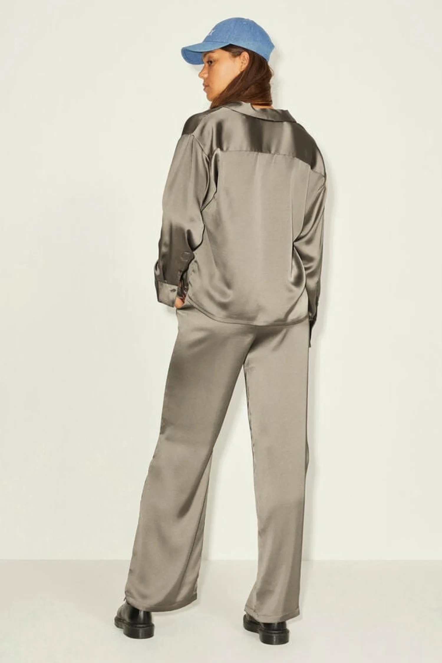 Camisa Acetinada. Fecho Com Botoes. Bolso Dianteiro. Ajuste Descontraido. Detalhe Gole De Camisa Em Bico.
