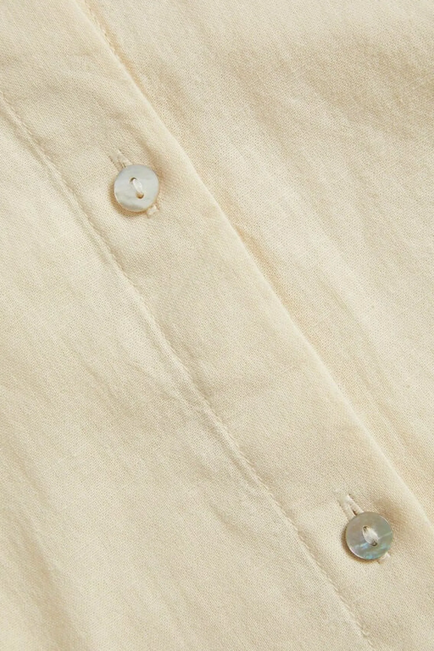 Camisa Crop Confeccionada Con Tejido En Mezcla De Lino. Cuello Solapa Y Manga Corta. Cierre Frontal Con Botones. La Modelo Lleva La Talla S