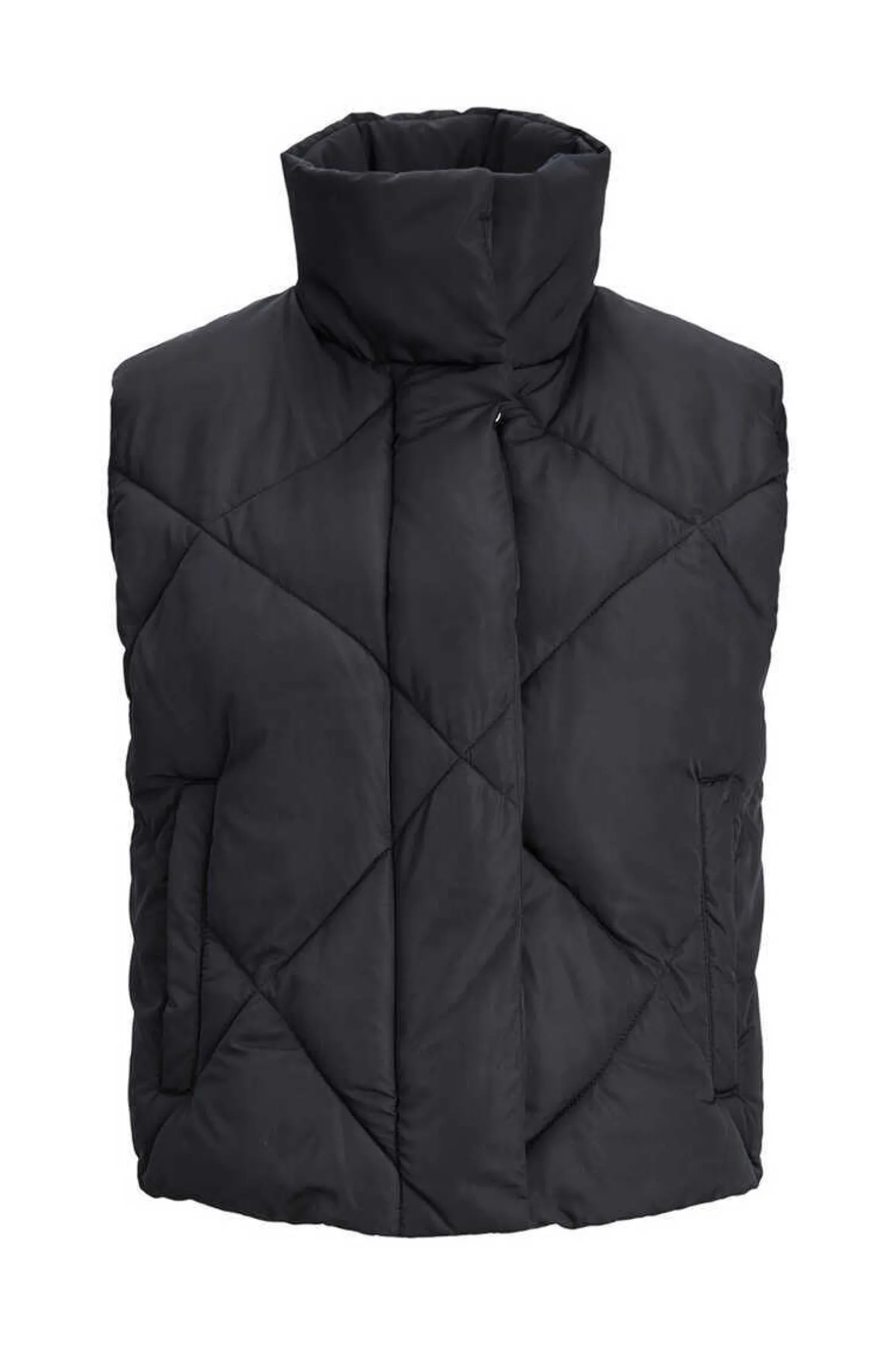 Colete Curto Acolchoadotipo Casaco De Penas, Com Gola Alta E Fecho-Eclair E Botoes De Pressao. Bolsos Comodos Laterais E Botoes De Pressao.