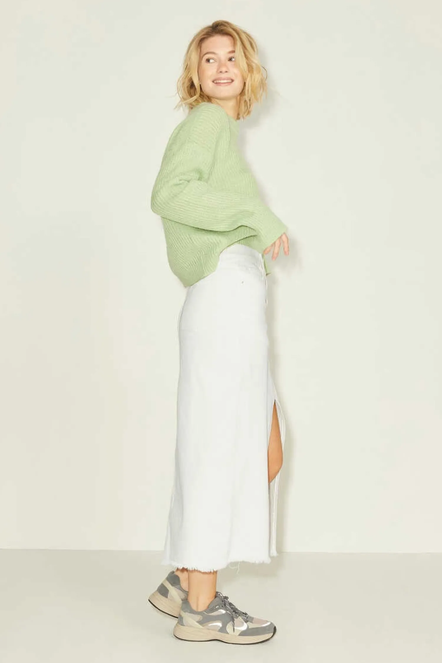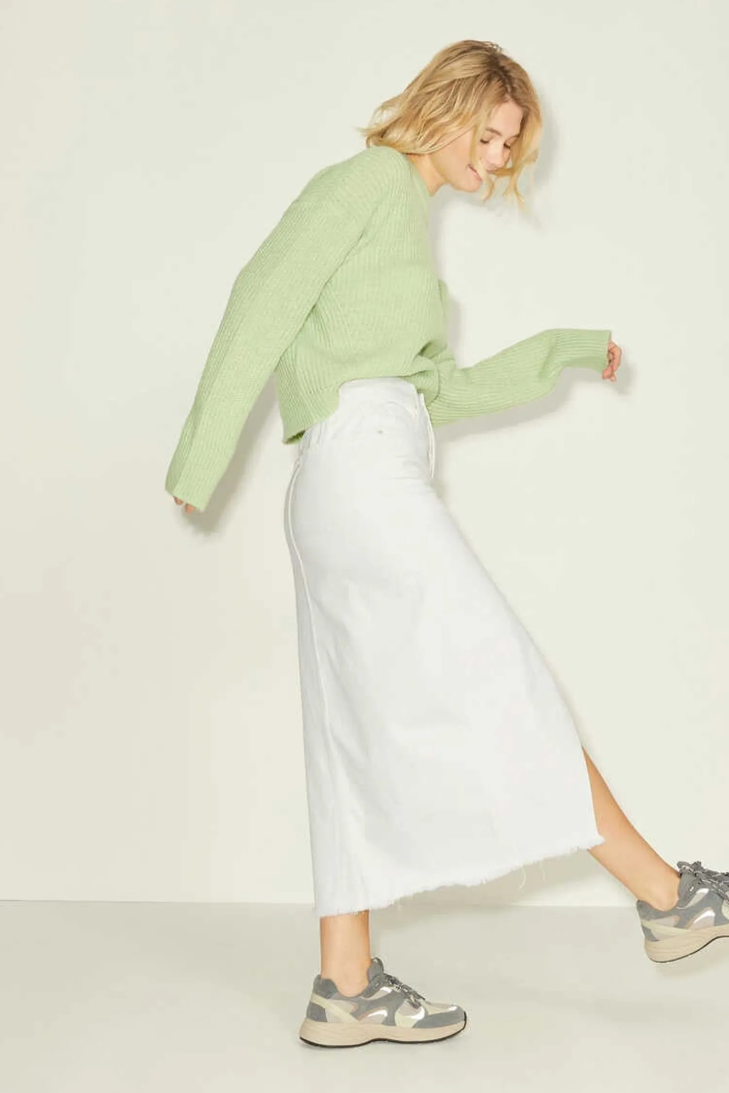 Saia Jeans Longa Com Bolsos Nas Costas.