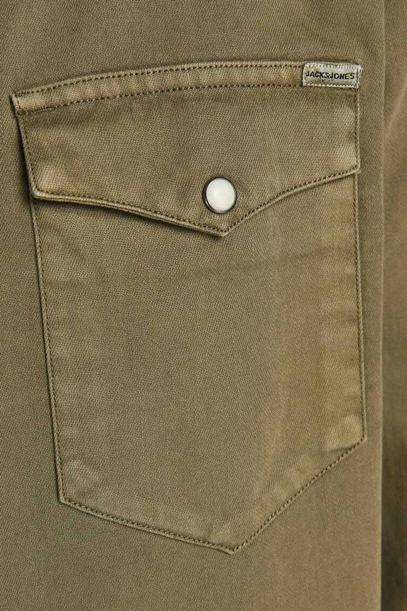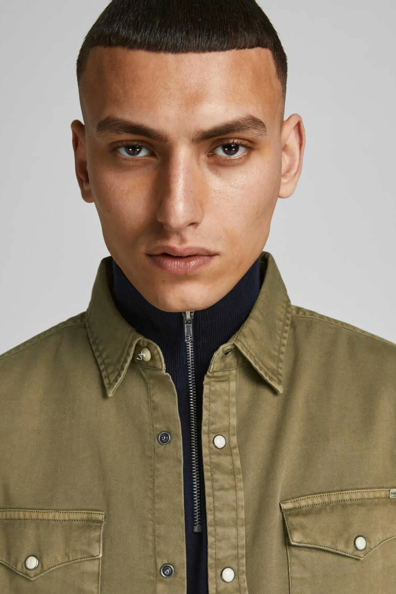 Sobrecamisa De Ganga De Manga Comprida, Bolsos No Peito E Fecho De Botoes.