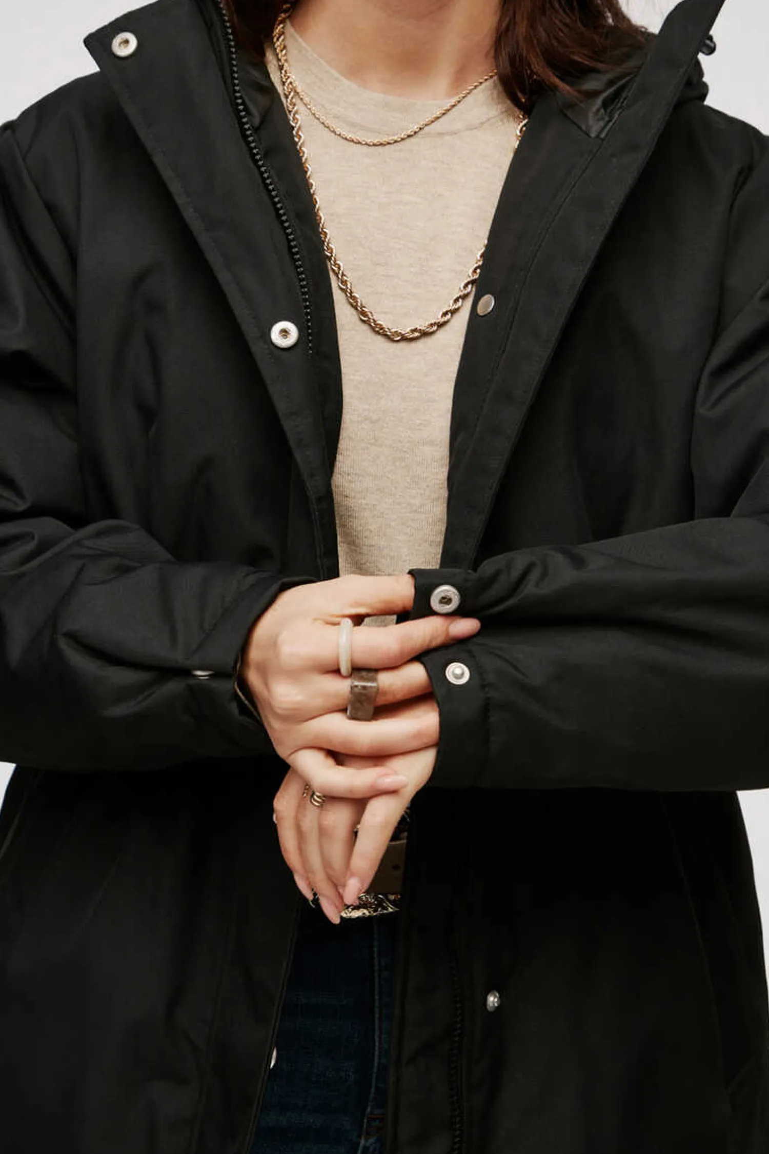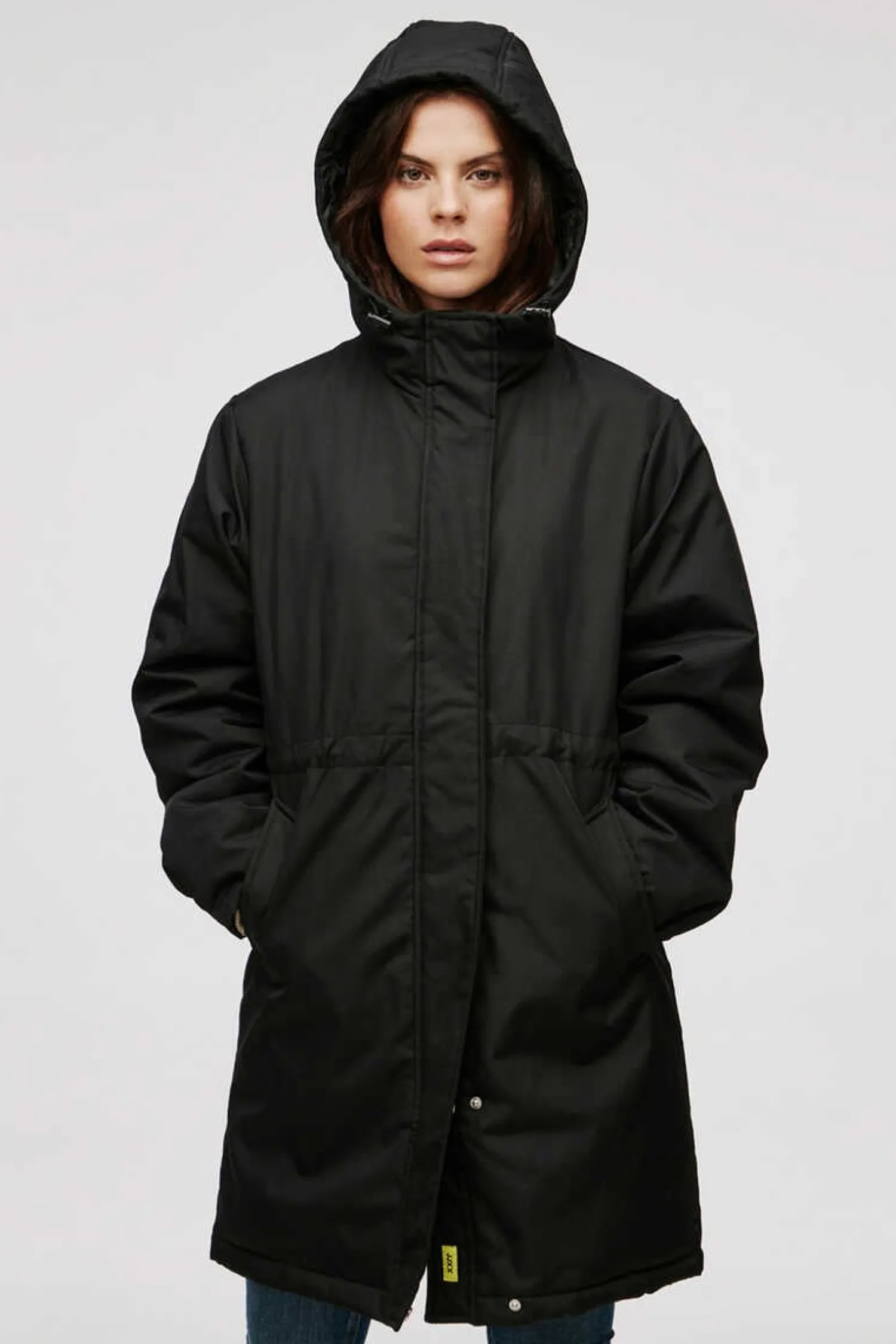 Parka Preta De Mulher Com Gola Alta, Capuz Comodo E Cintura Ajustavel. Sobretudo Com Cores Basicas E Fundo De Armario. Bolsos Comodos E Uteis. Comprimento 3/4. … Fecho-Eclair E Botoes De Pressao Para Maior Versatilidade. Ver Mais