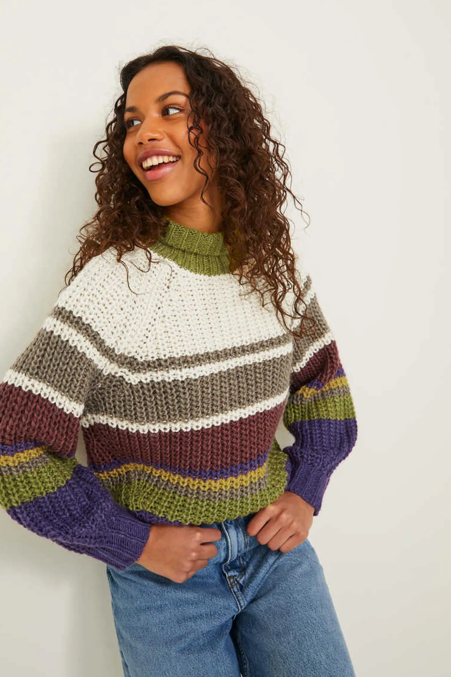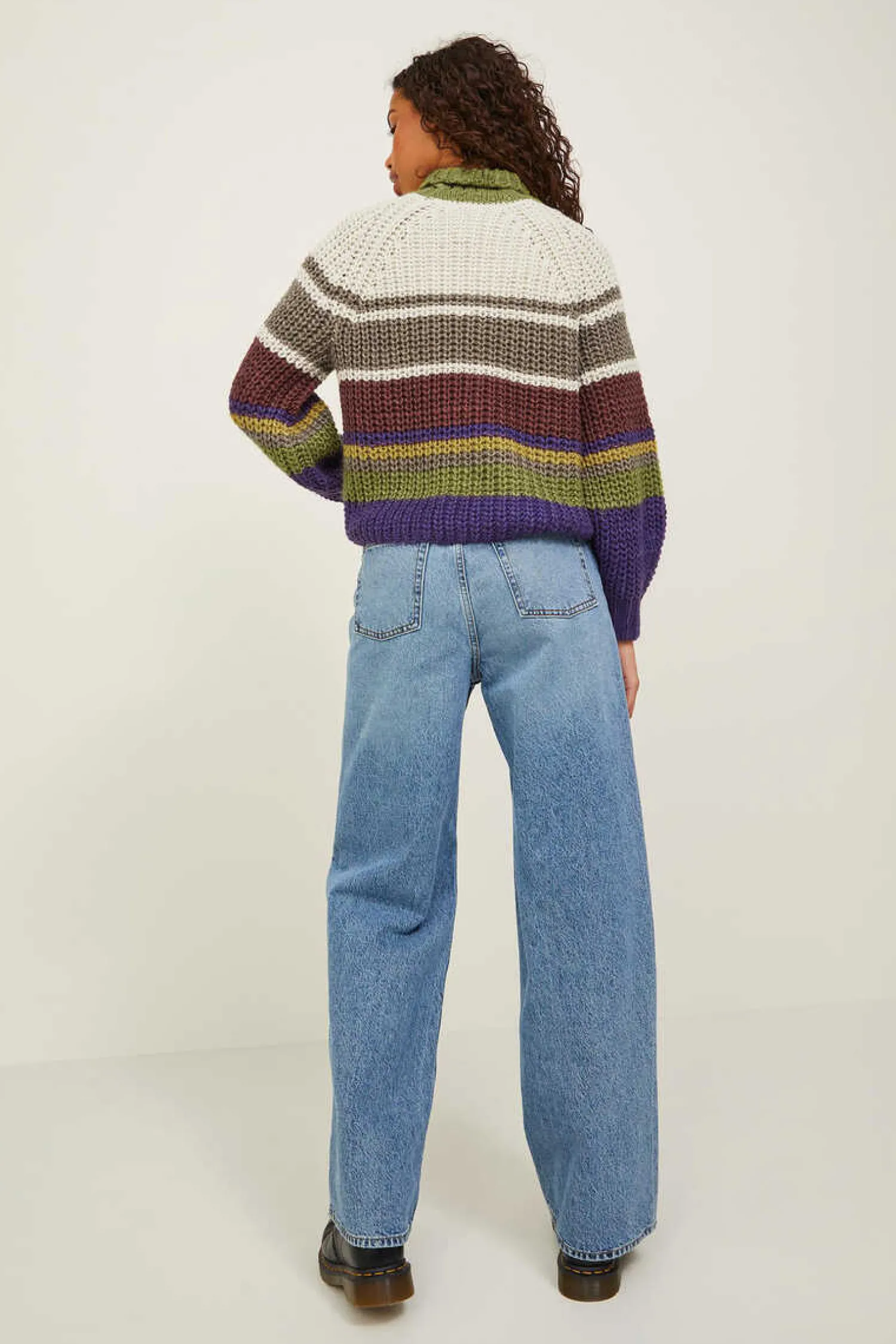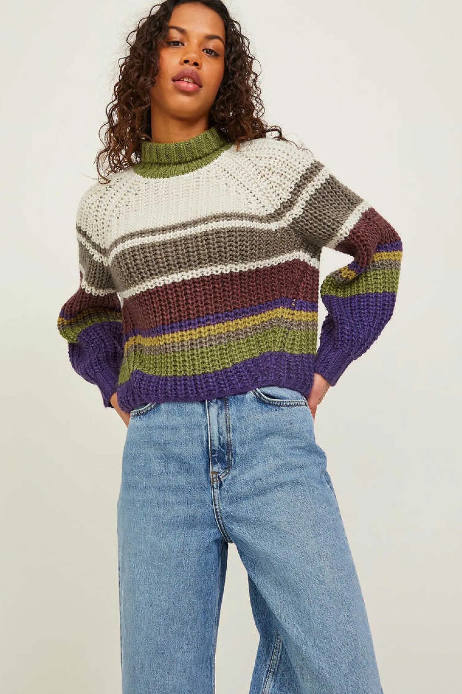 Jersey Com Estampado De Riscas. Manga Comprida E Decote Alto. Tecido De Malha Canelado Para Os Invernos Mais Frios.