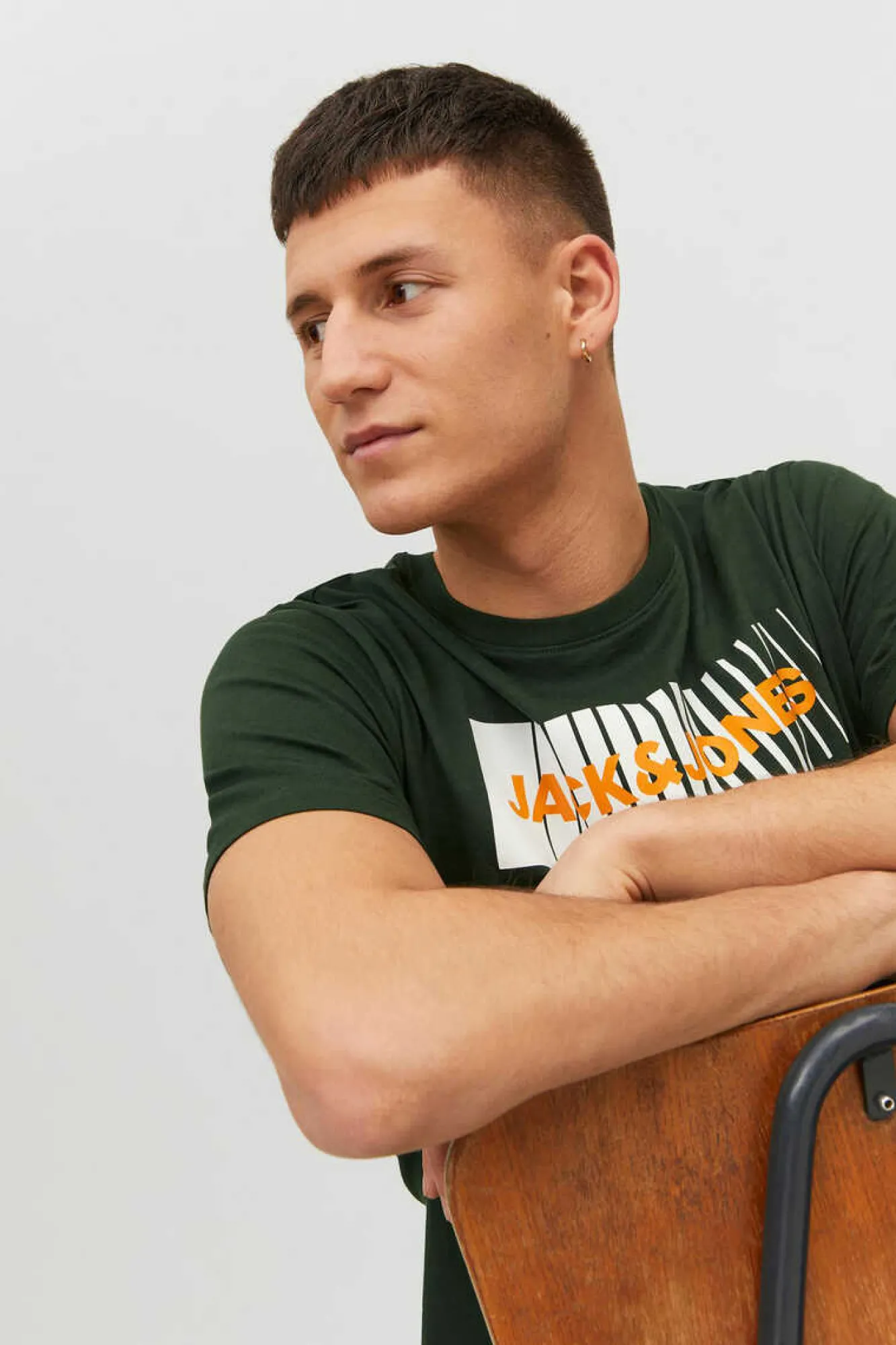 T-Shirt De Gola Redonda E Manga Curta De Algodao Organico. Estampado De Texto Com Logo Combinado Em Contraste Na Frente. Corte Padrao.