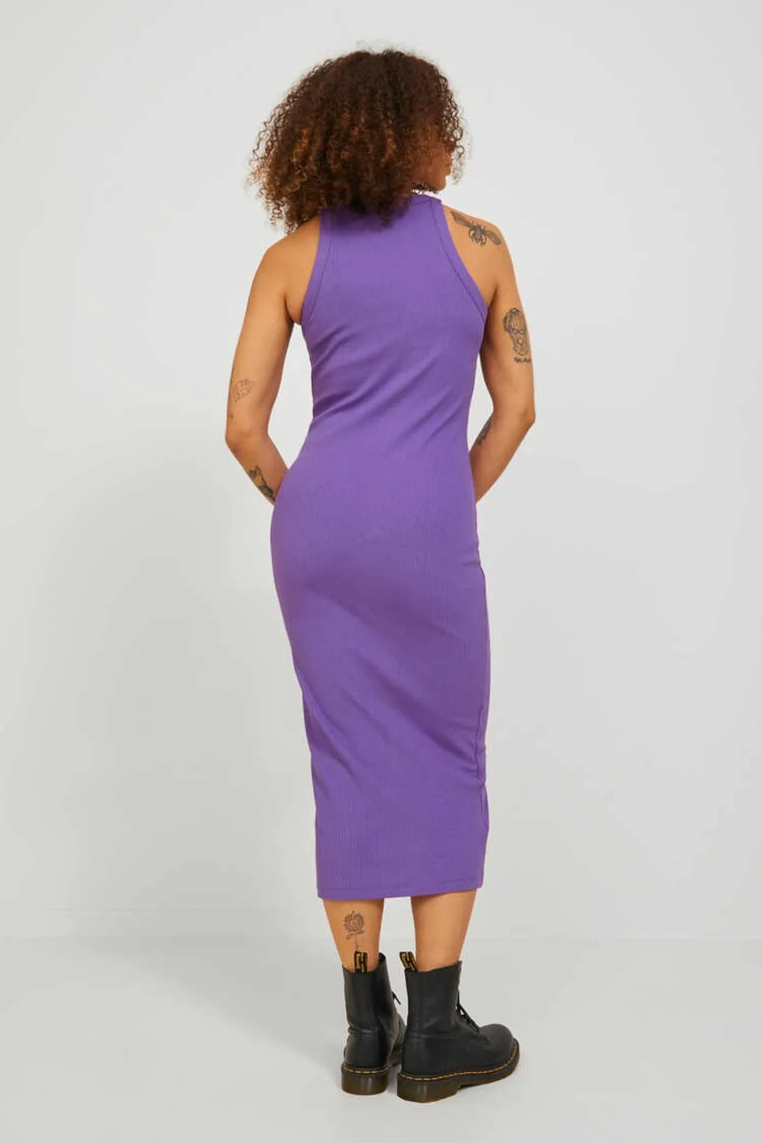 Vestido Midi De Alcas. Tecido Rib Elastico
